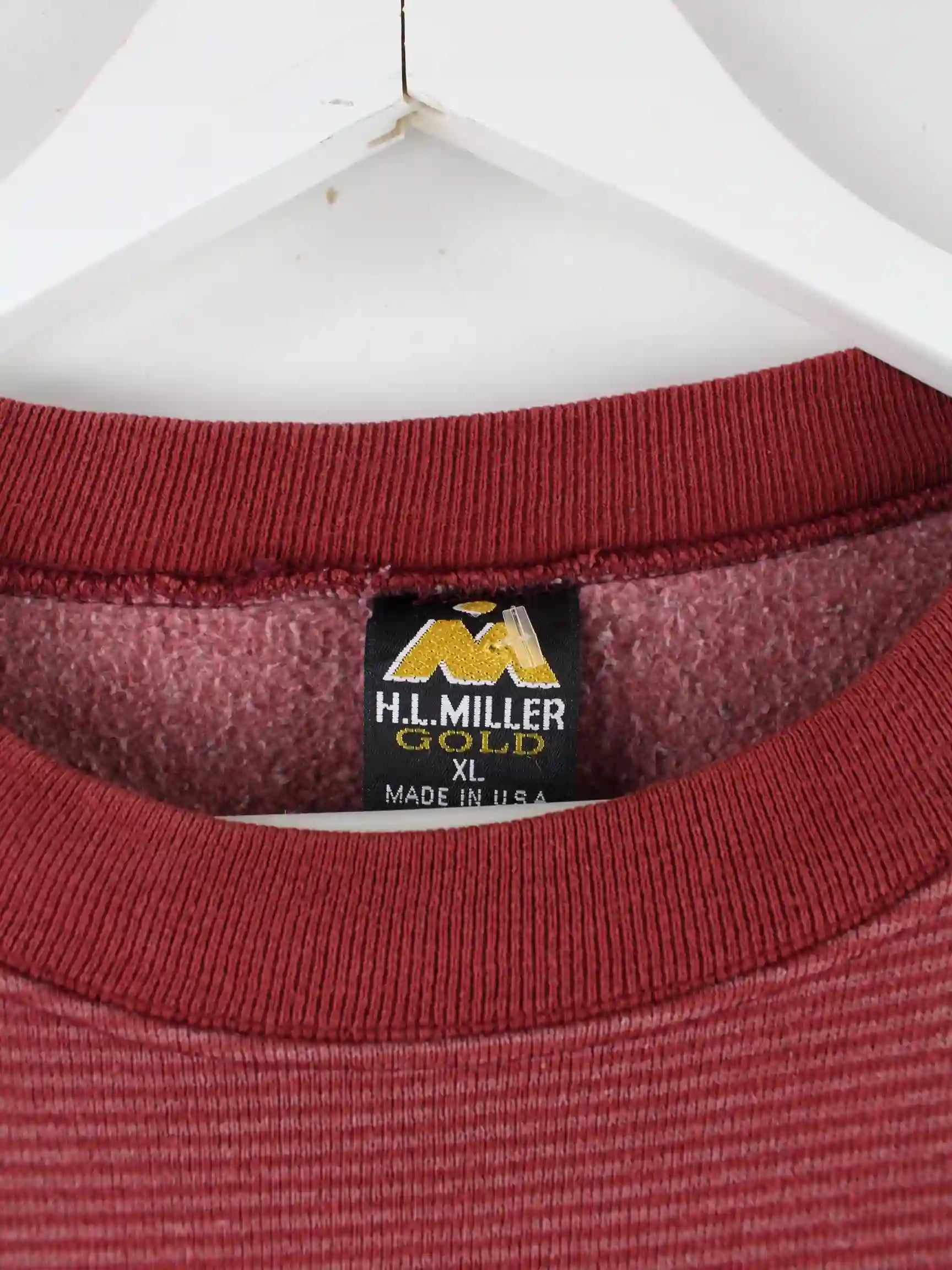 Vintage Sweater mit Stickereien in Größe XL aus den 90'ern. Er ist aus einer Baumwollmischung und in Rot zu haben.