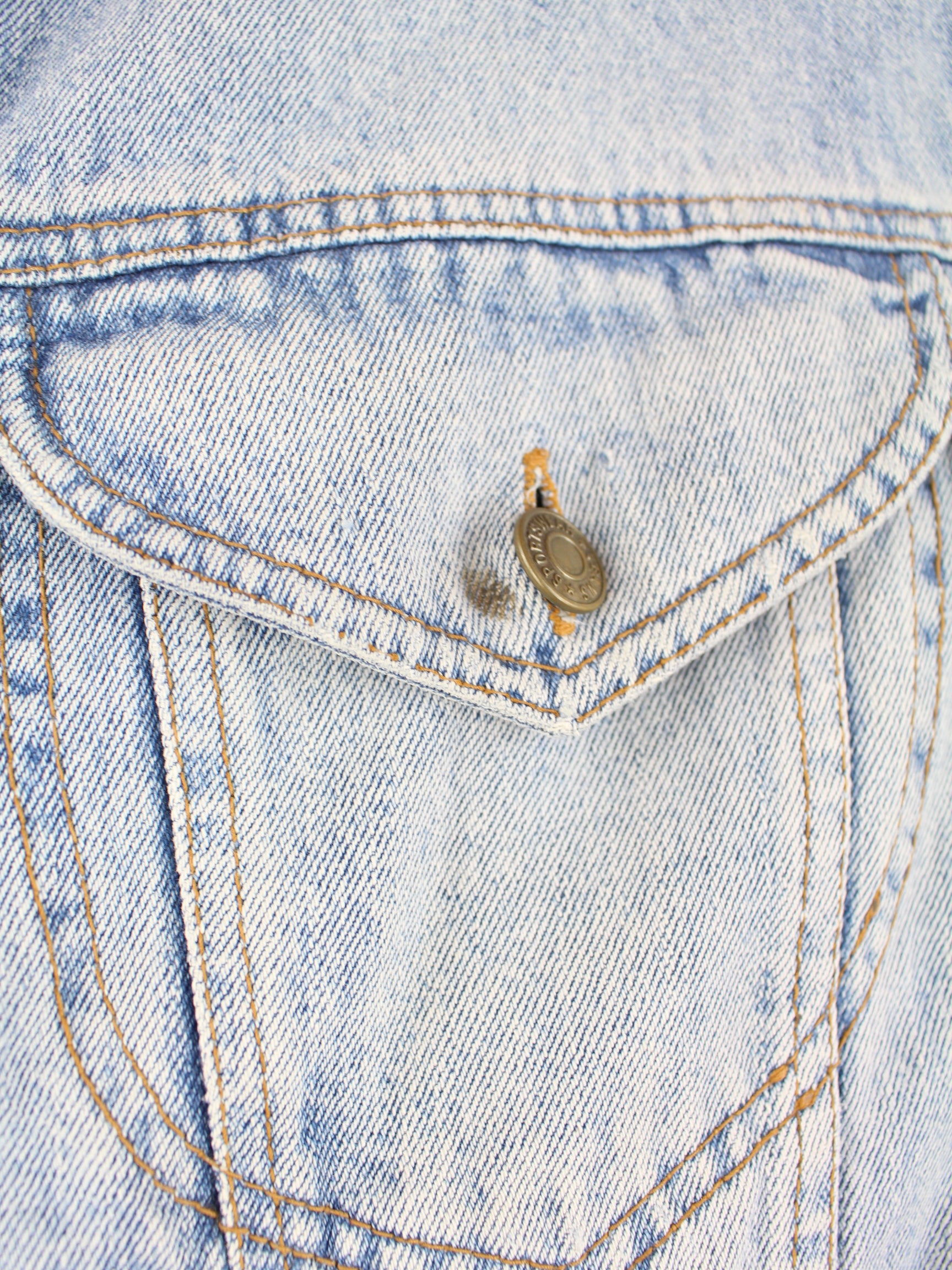 Blue vintage light jacket from the 90's in size XS. It is made of cotton and is available from us in good condition.
