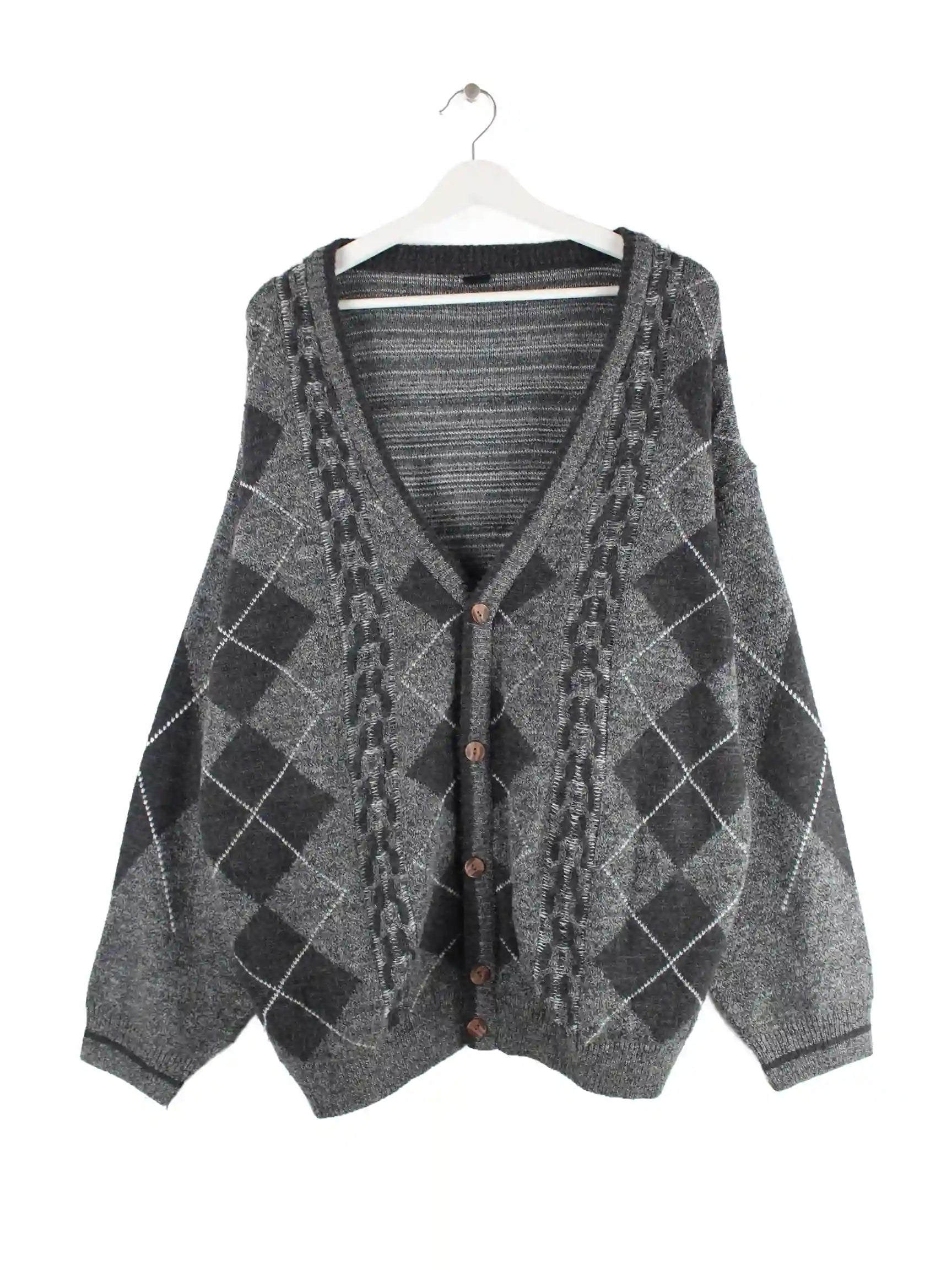 Vintage Strickjacke in Größe L aus den 90'ern. Sie ist aus Baumwolle hergestellt und in Grau auf Lager.