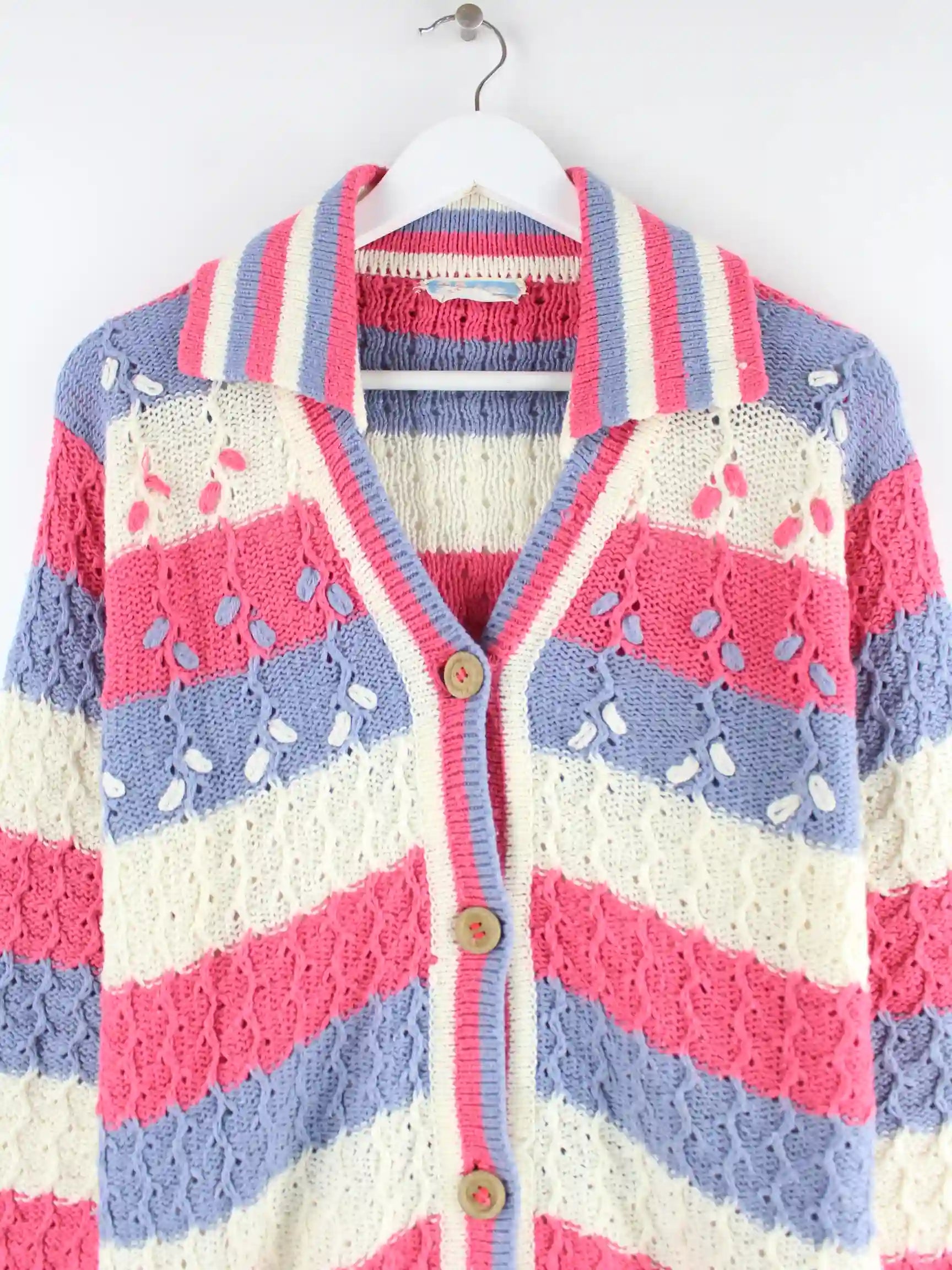 Mehrfarbige Vintage Strickjacke aus den 90'ern in Größe M. Sie ist aus Baumwolle hergestellt und in sehr gutem Zustand zu haben.
