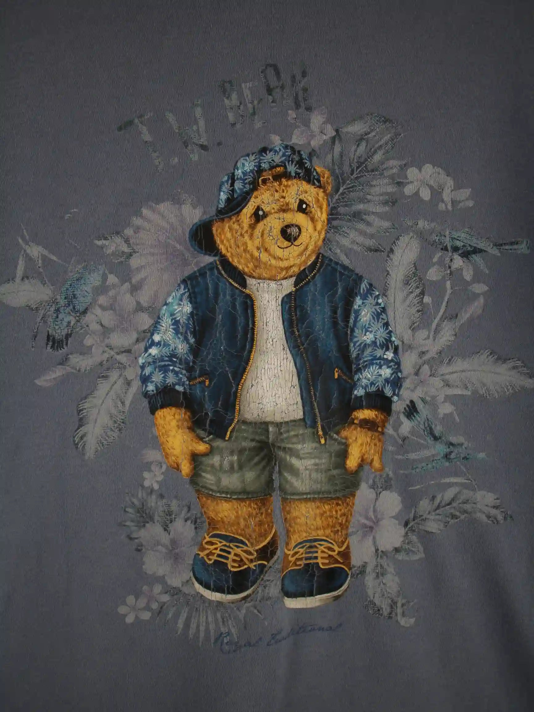 Vintage Damen Bear Print T-Shirt Blau M