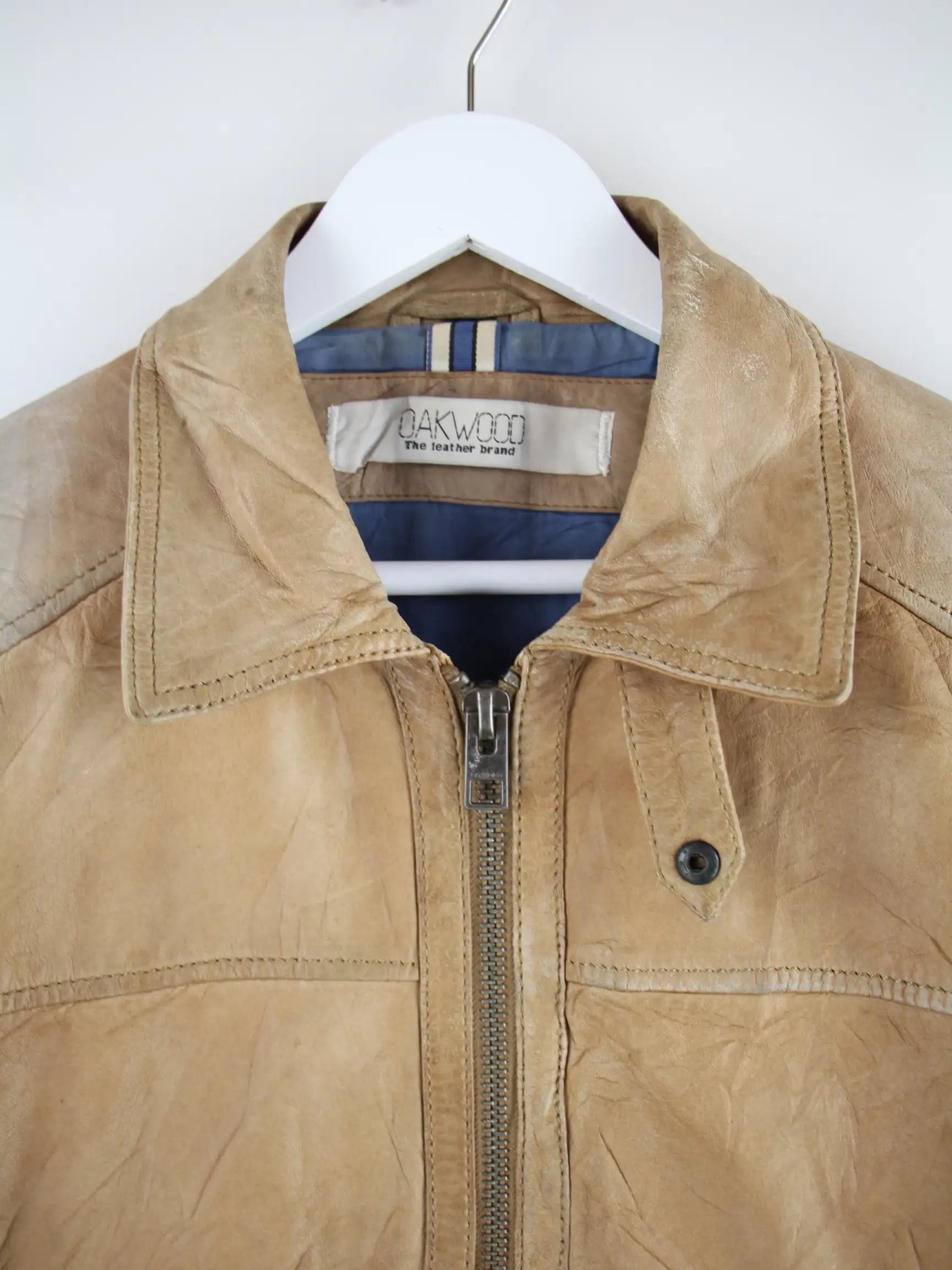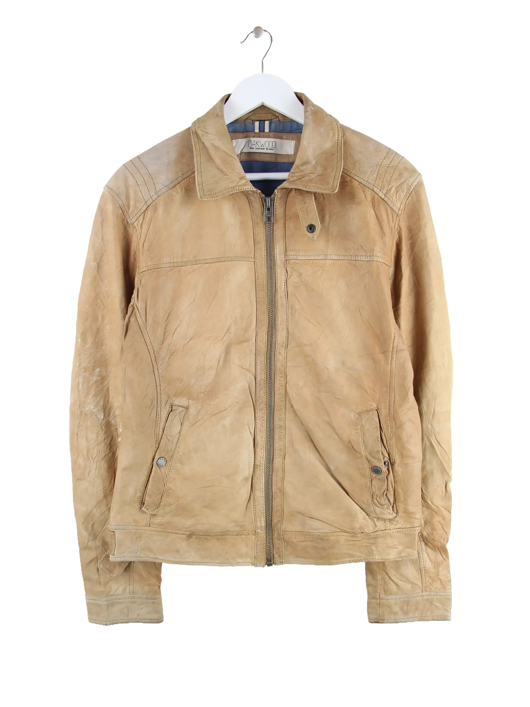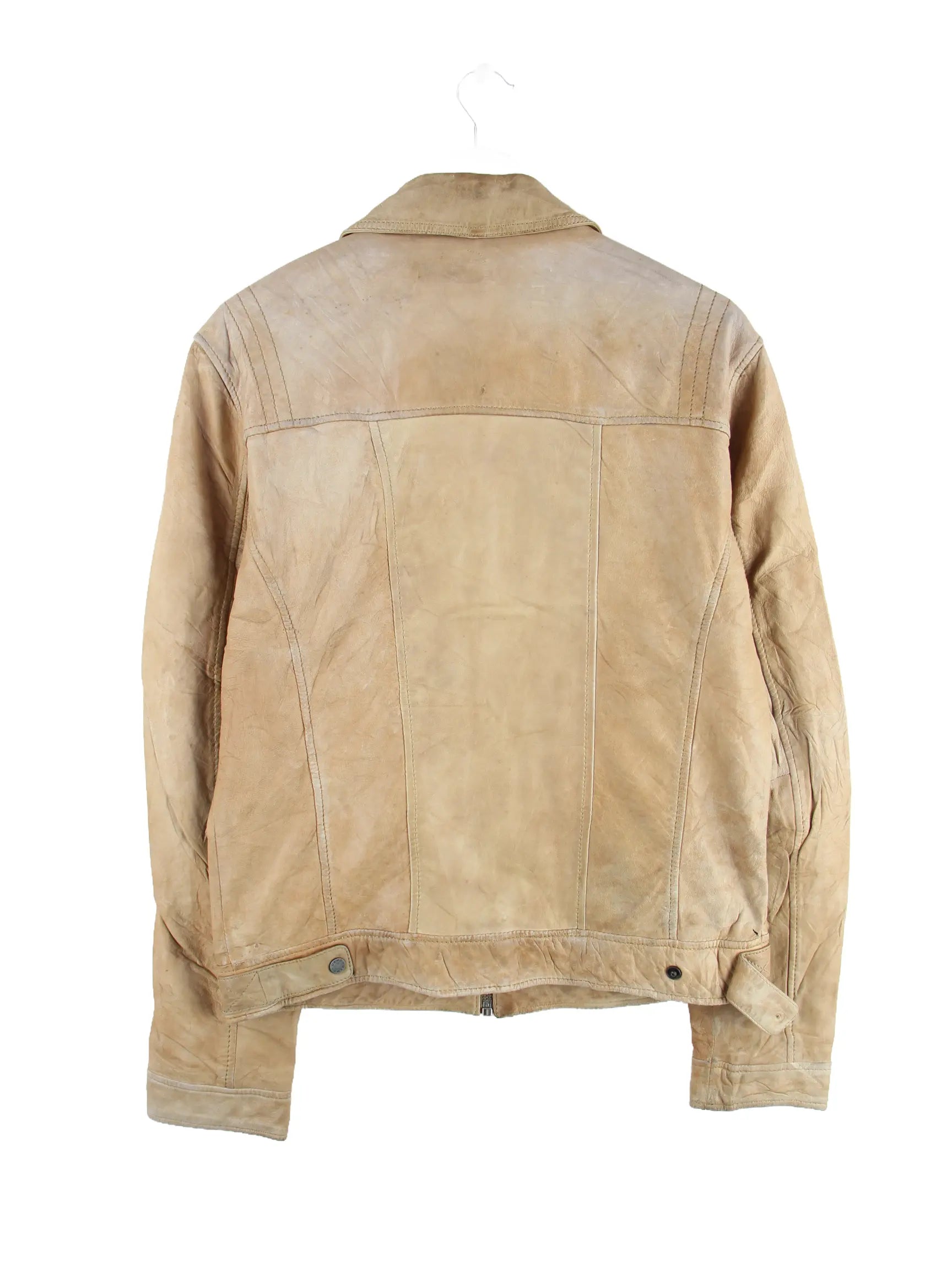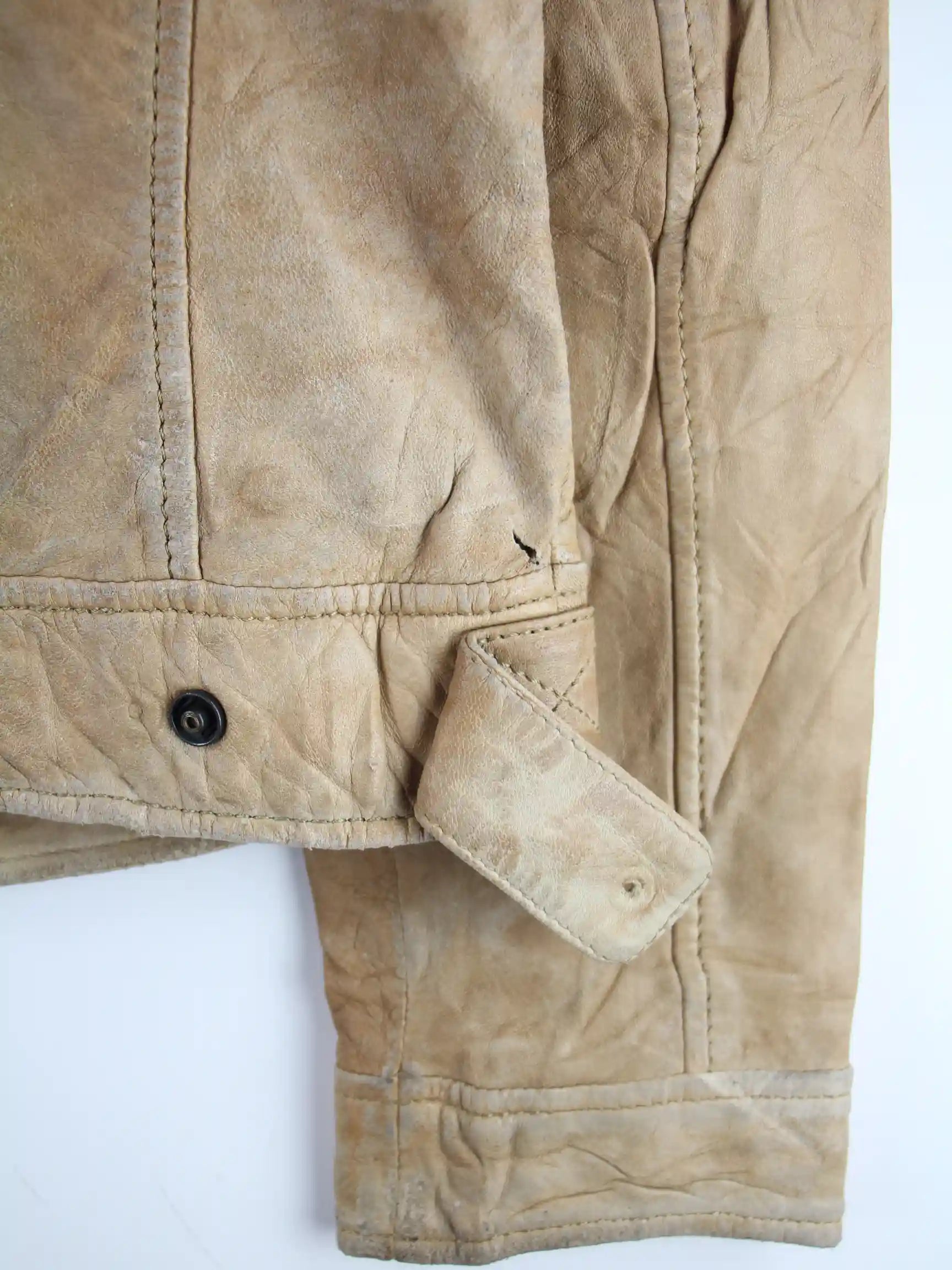Vintage Jacke in Größe L. Sie ist aus Leder gefertigt und in Braun lieferbar.