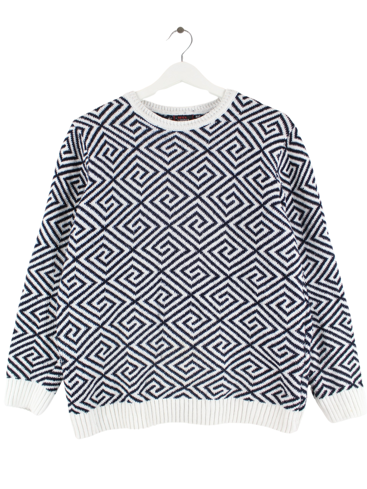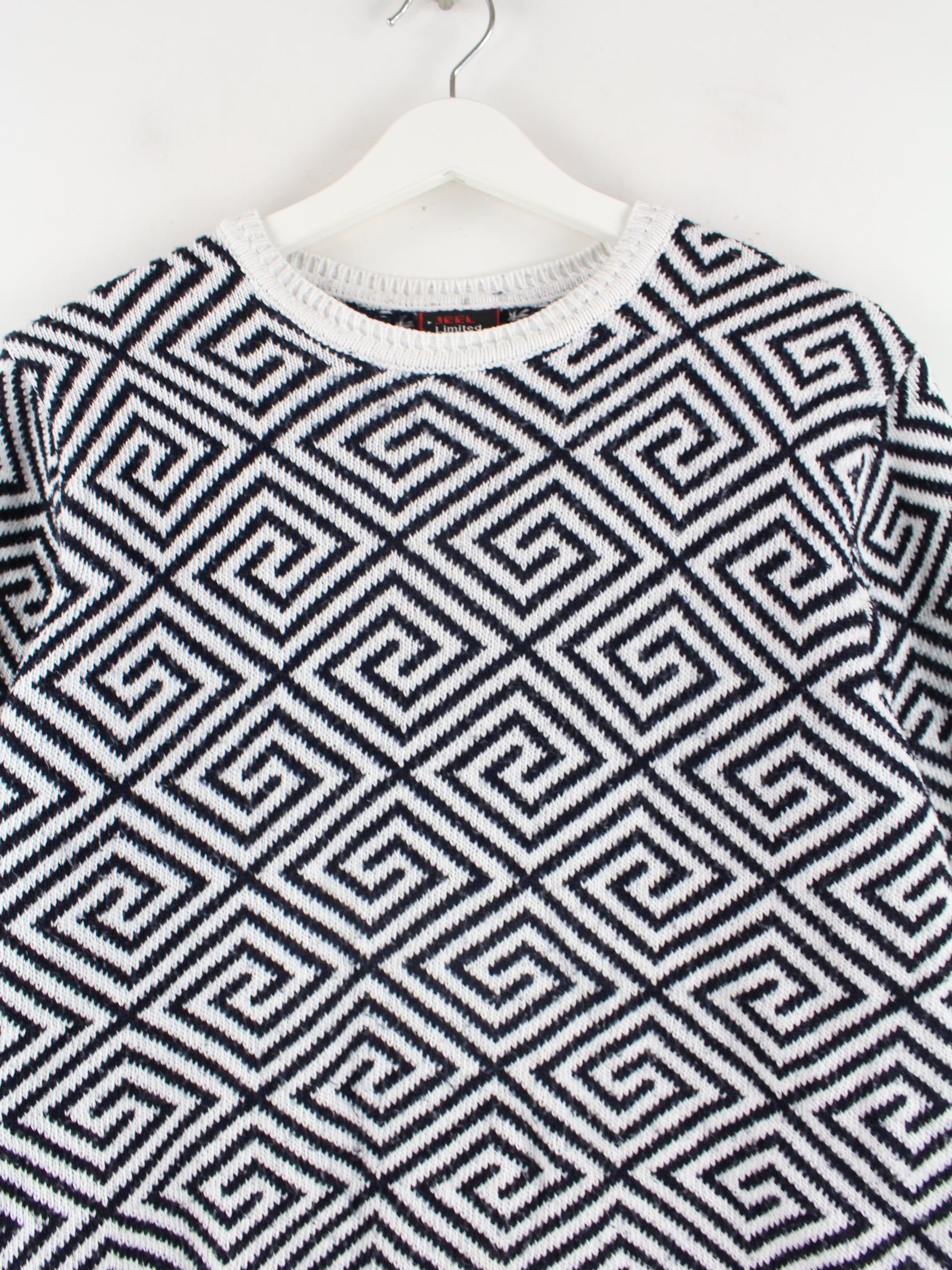 Vintage Damen Pattern Pullover Schwarz/Weiß L
