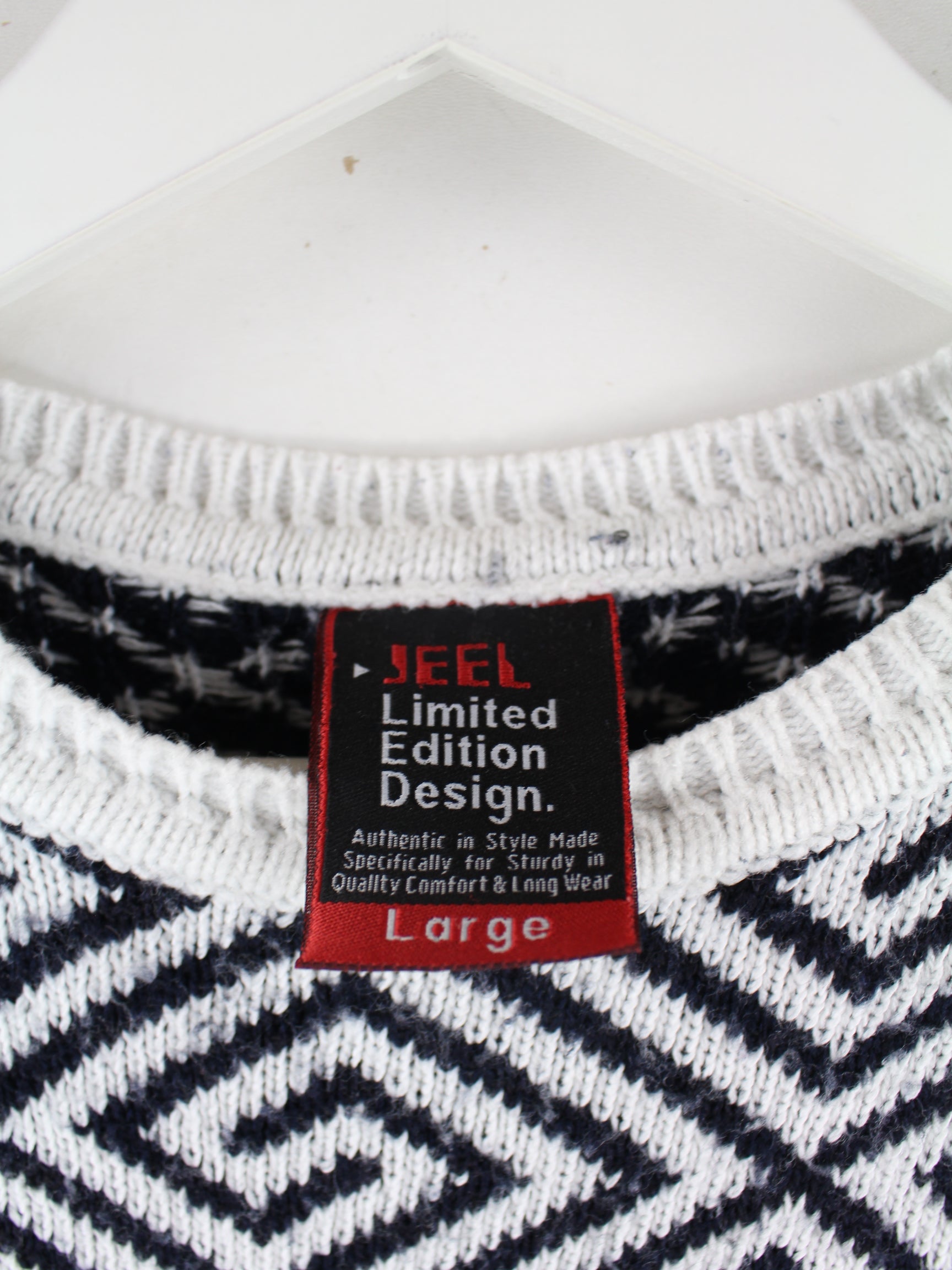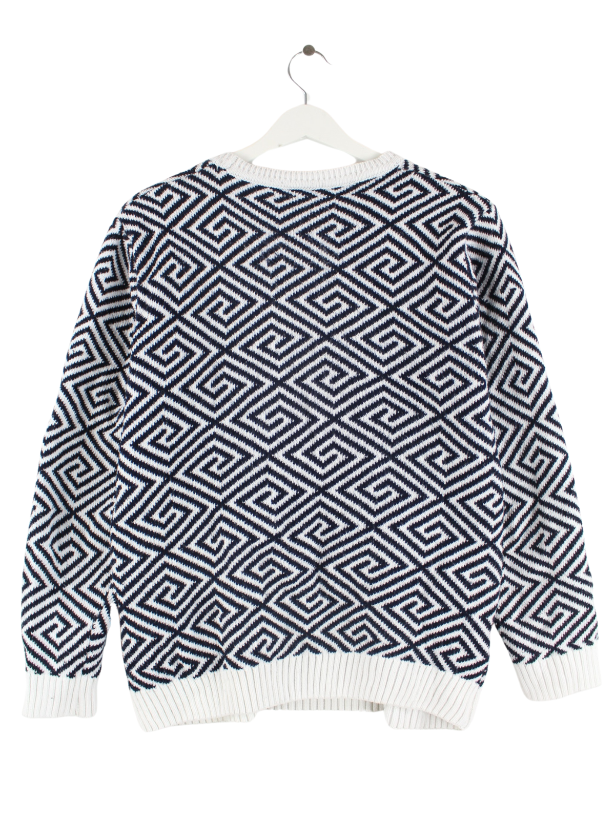 Weiß-schwarzer Vintage Pullover in Größe L. Er ist aus Baumwolle angefertigt und in sehr gutem Zustand im Bestand.
