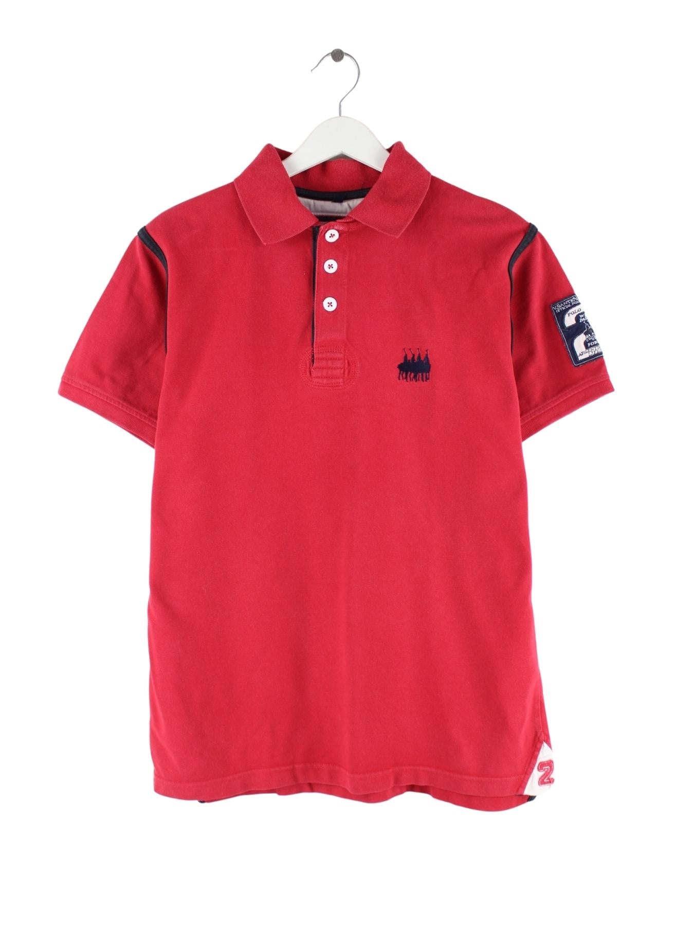 Vintage Poloshirt mit Stickereien in Größe M. Es ist aus Baumwolle angefertigt und in Rot zu bekommen.