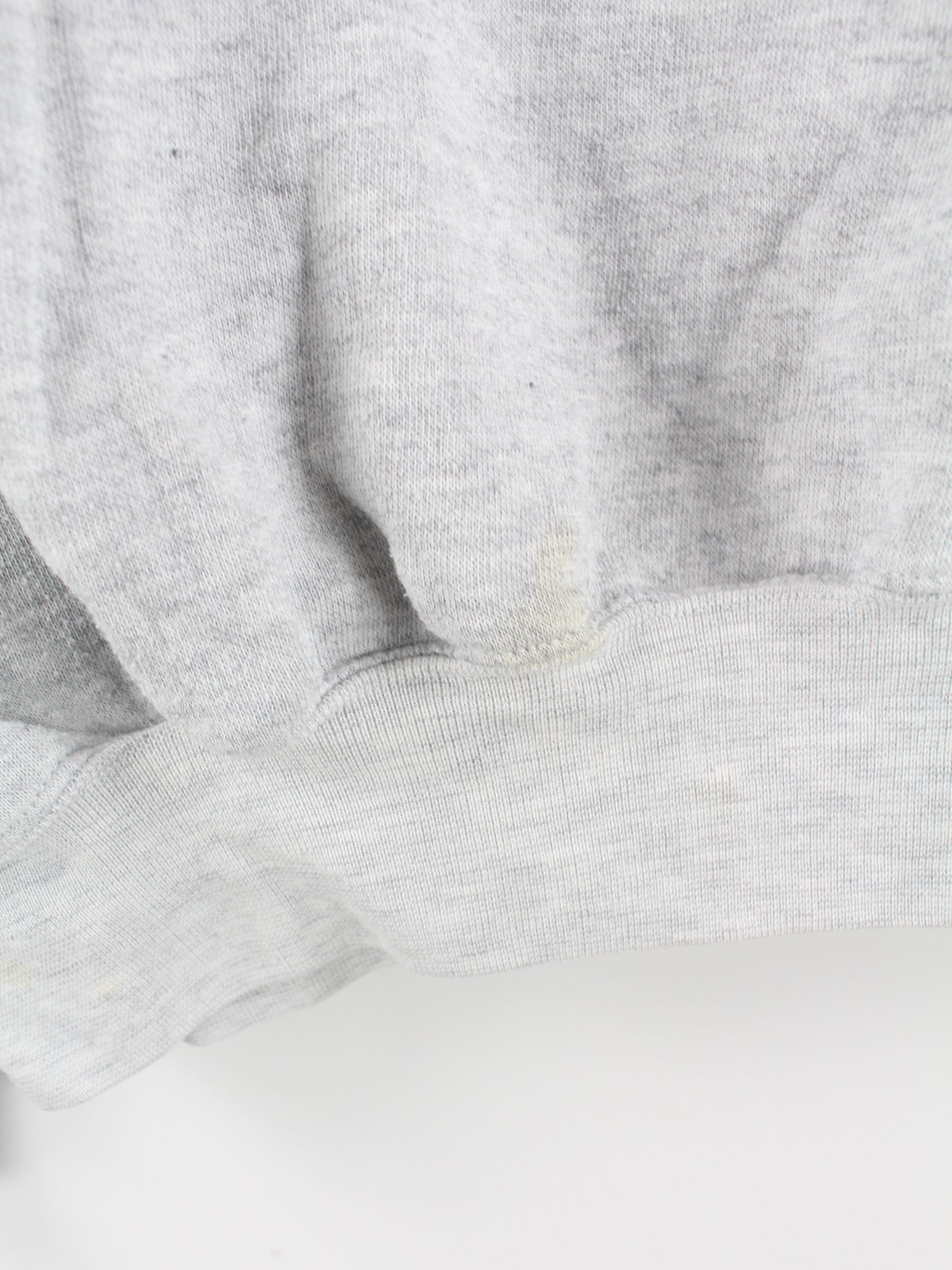 Nice gray vintage sweater with embroidered logo in size XL. It is made of a cotton blend and is in good condition.