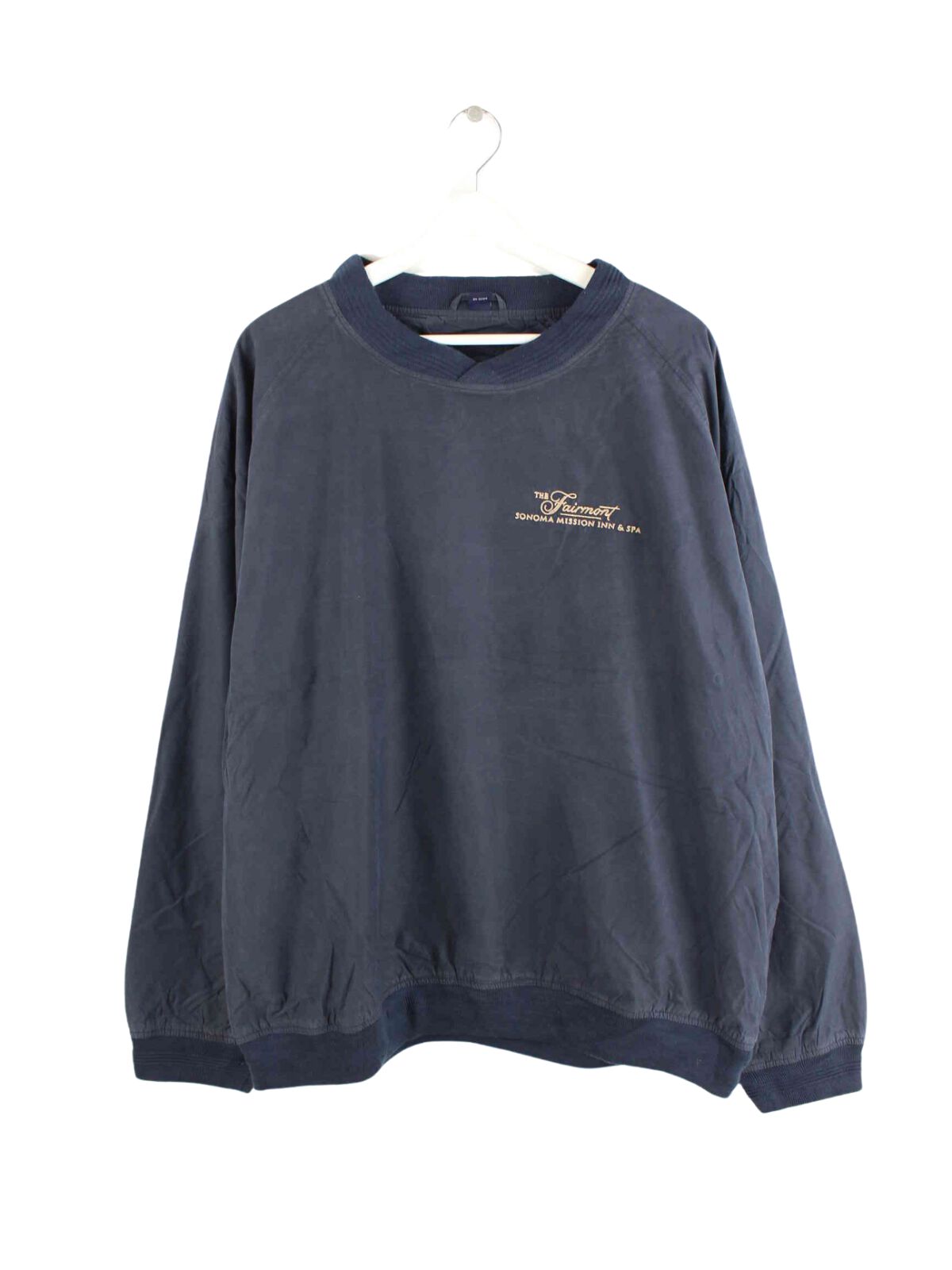 Vintage sweater with embroidered motifs in size XL. It is made of synthetic material and is available in blue.