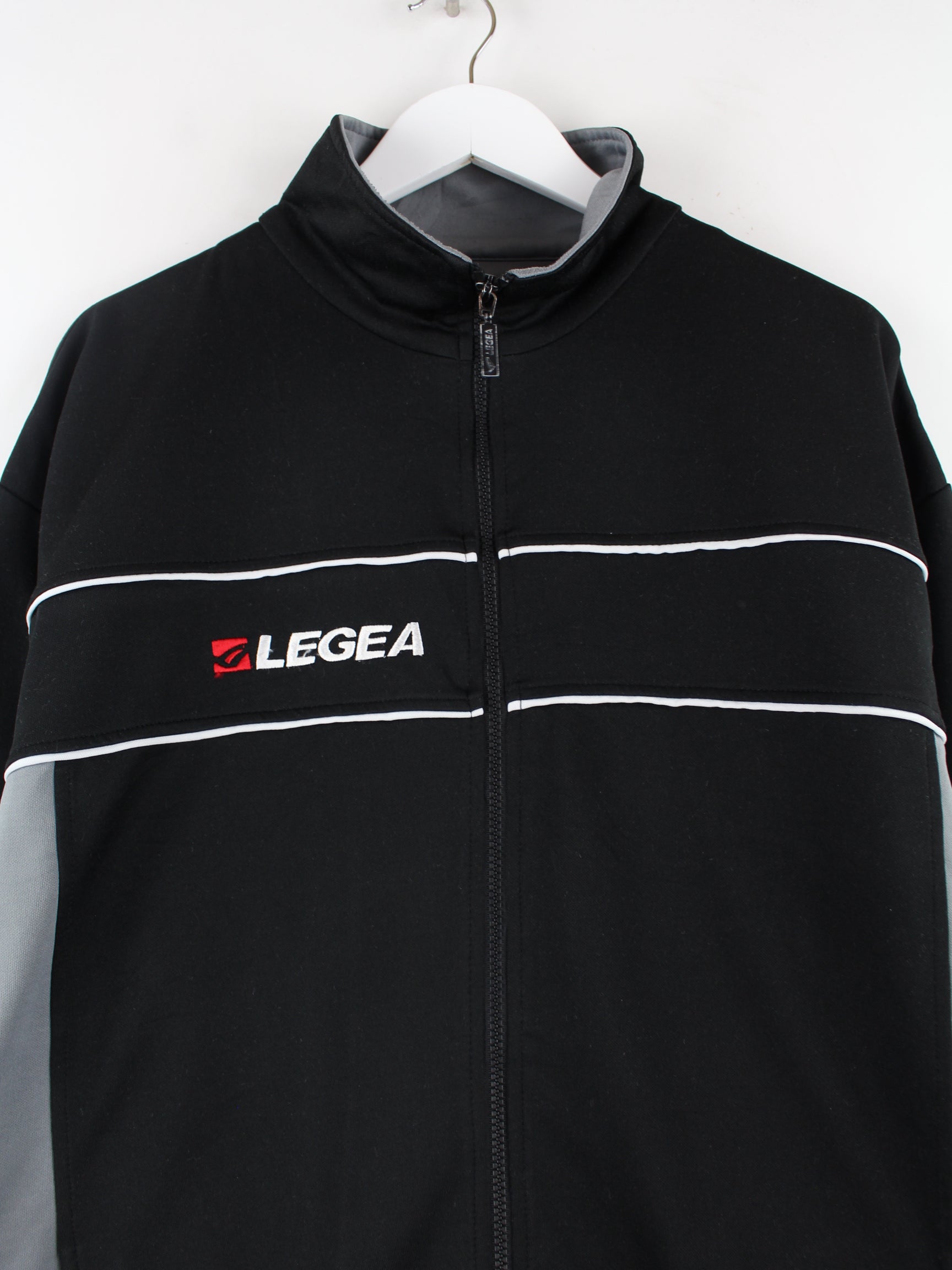 Vintage tracksuit jacket with embroidered motifs in size XL. It is made of synthetic material and is available in black.