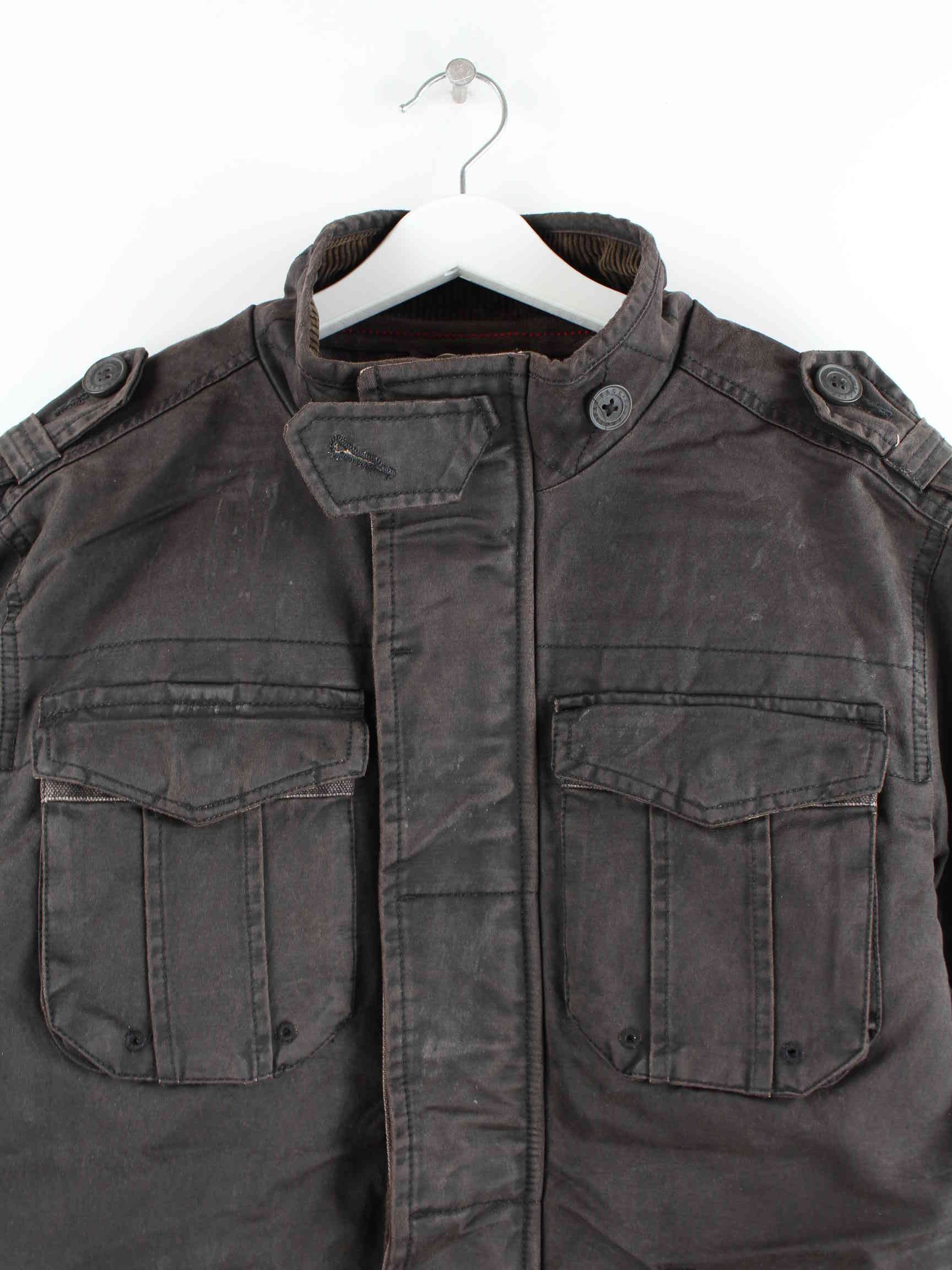 Brown vintage lightweight jacket in size M. It is made of a cotton blend. We would describe the condition as 'OK' (see pictures).