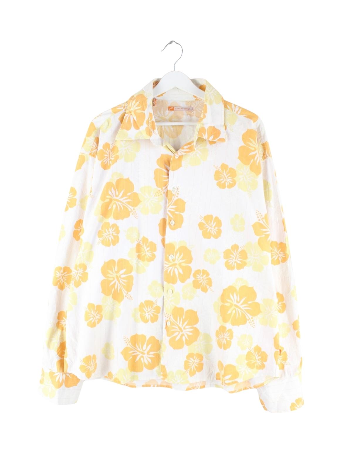 Vintage Freizeit Hemd in Größe L. Es ist aus Baumwolle angefertigt und in Gelb im Angebot.