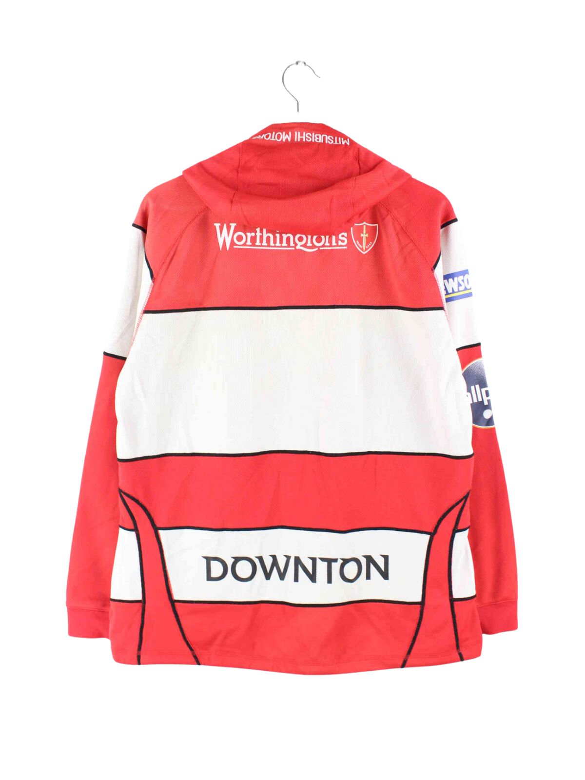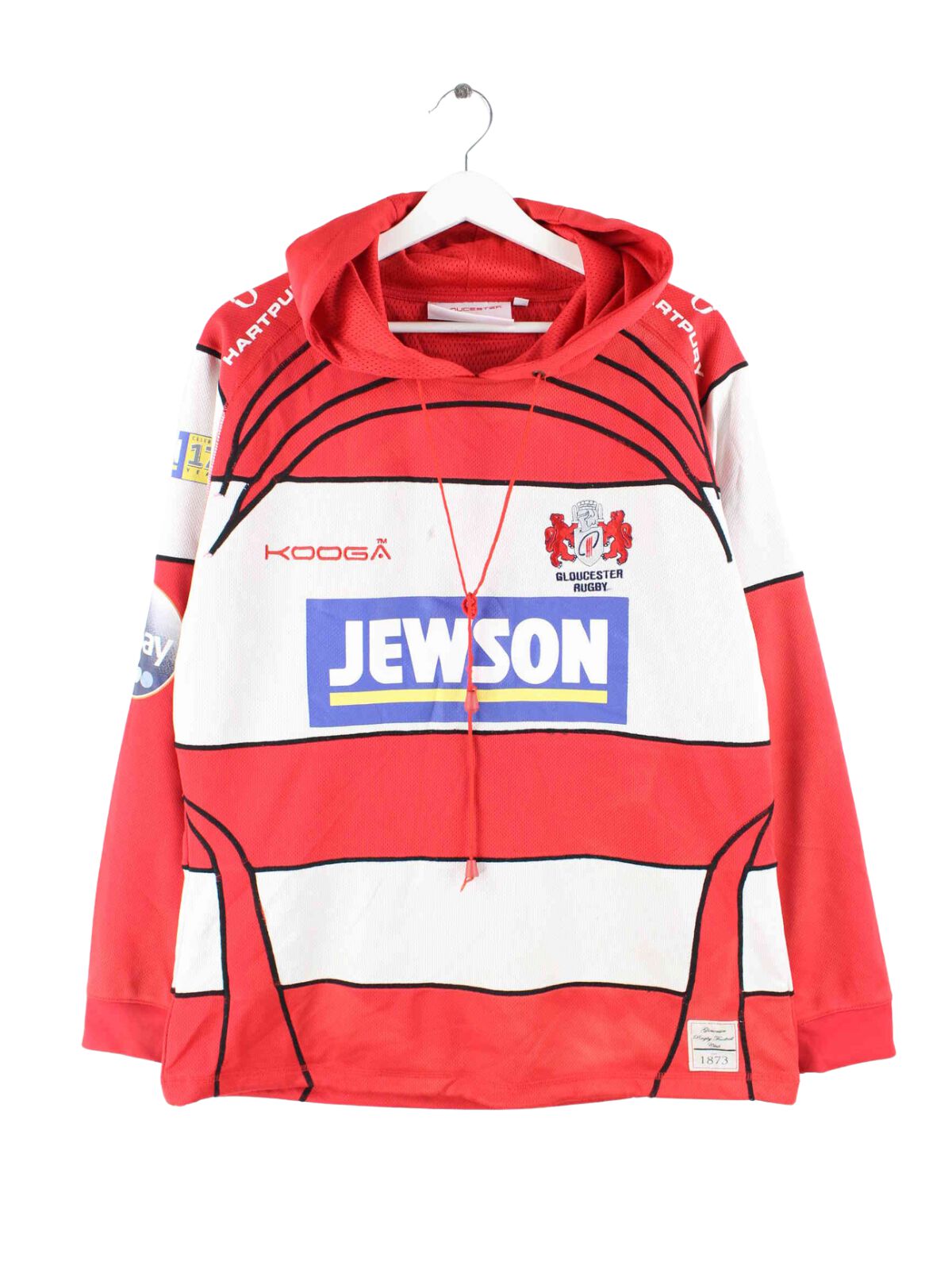 Red vintage hoodie in size M. It is made of synthetic material and is in good condition in stock.