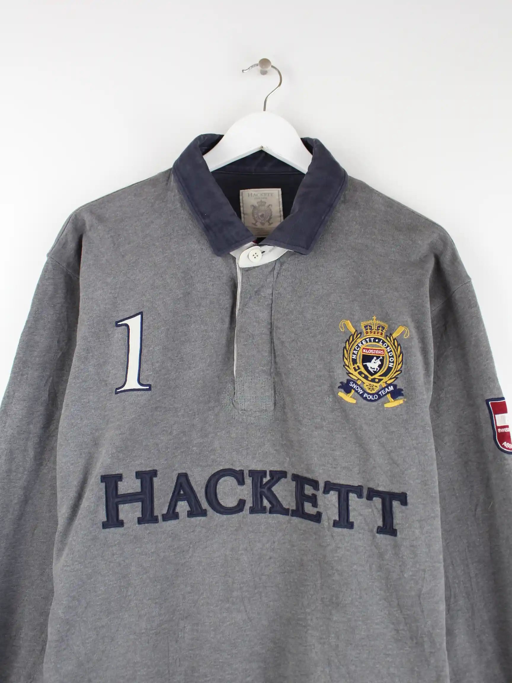 Vintage Hackett Langarm Polo Grau 3XL