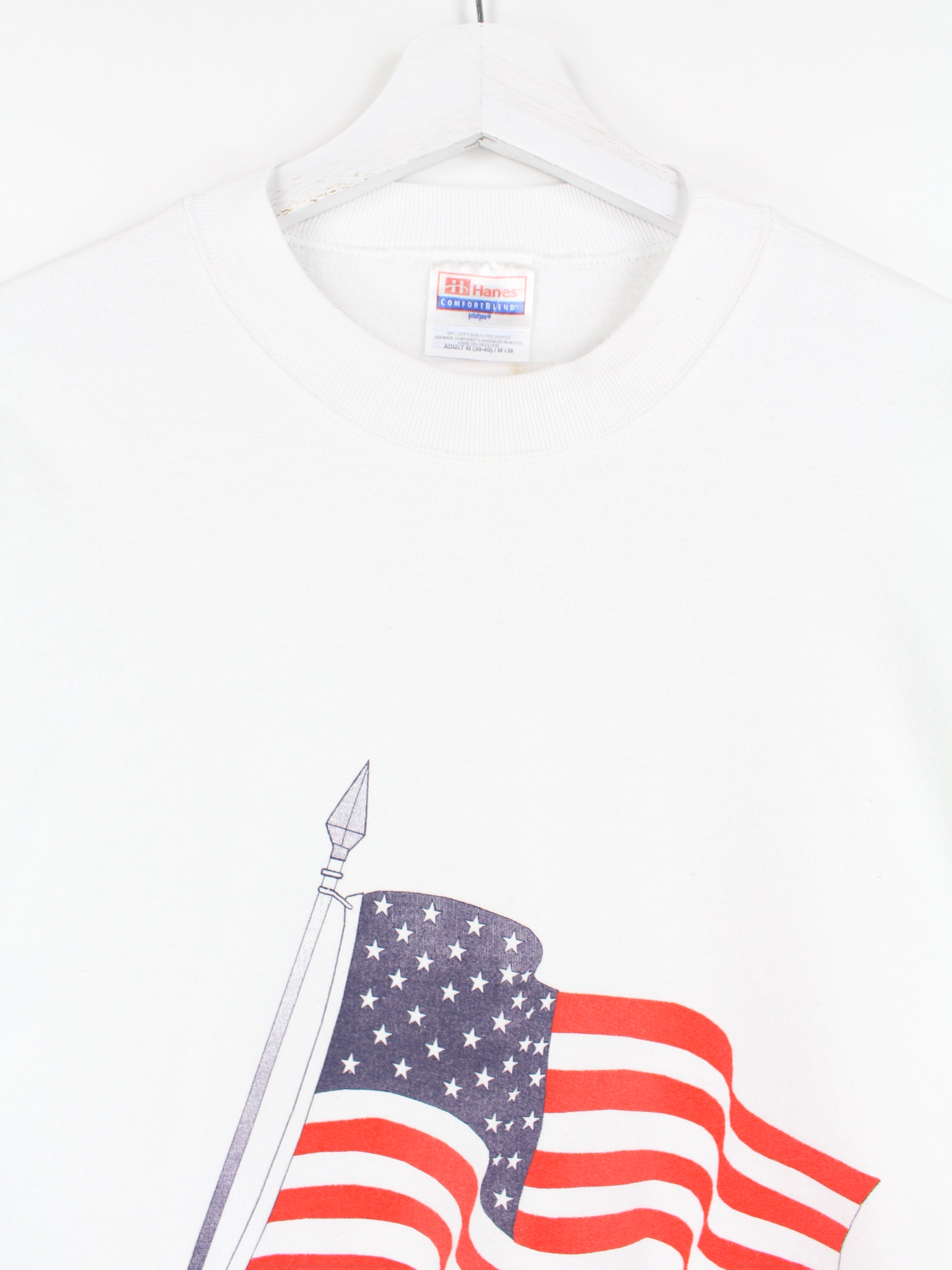 Vintage Hanes USA Flag Sweater White S