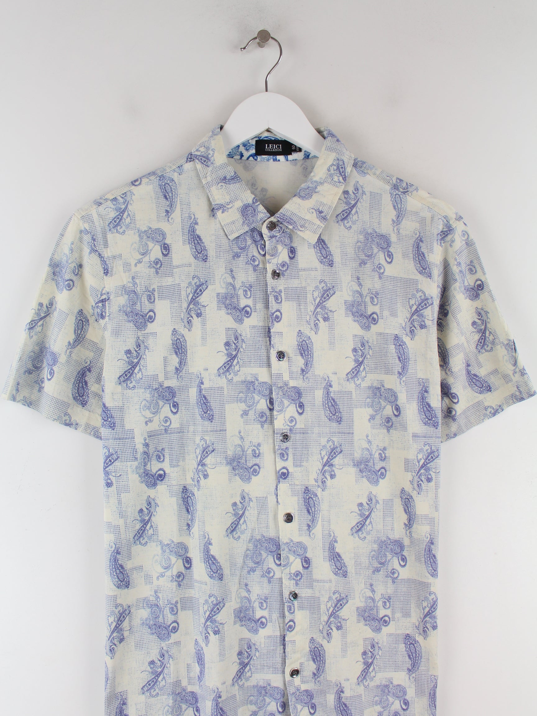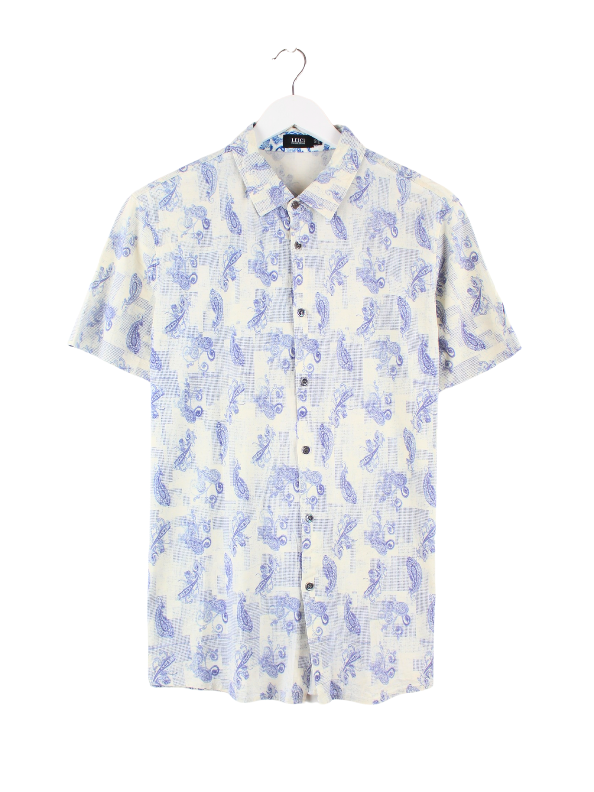 Blue vintage casual shirt in size M. It is made of cotton and in very good condition.