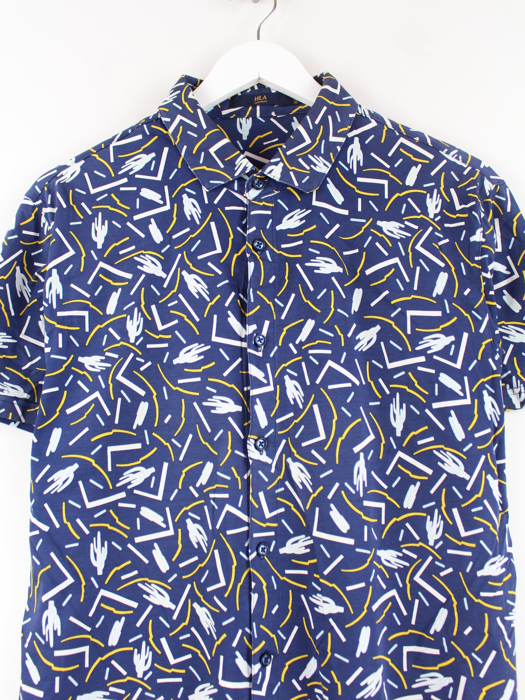 Blue vintage casual shirt in size S. It is made of cotton and is in very good condition.