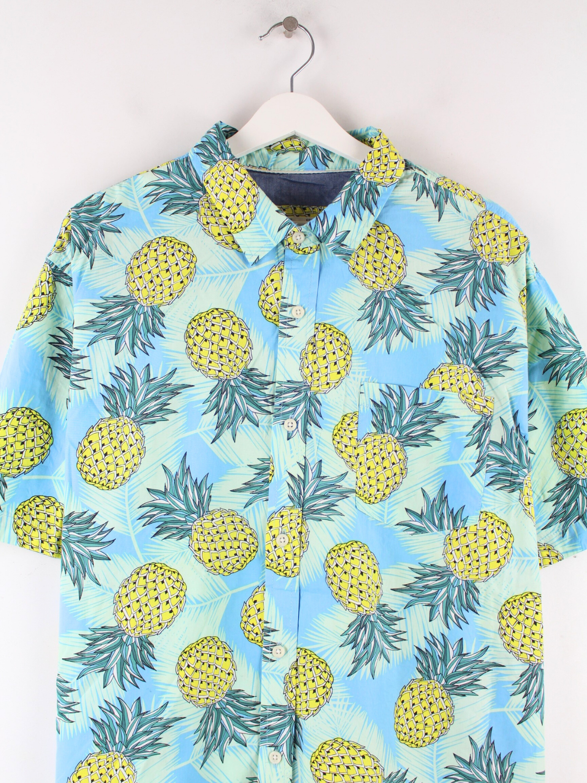 Blue vintage casual shirt in size XXL. It is made of cotton and is in good condition.