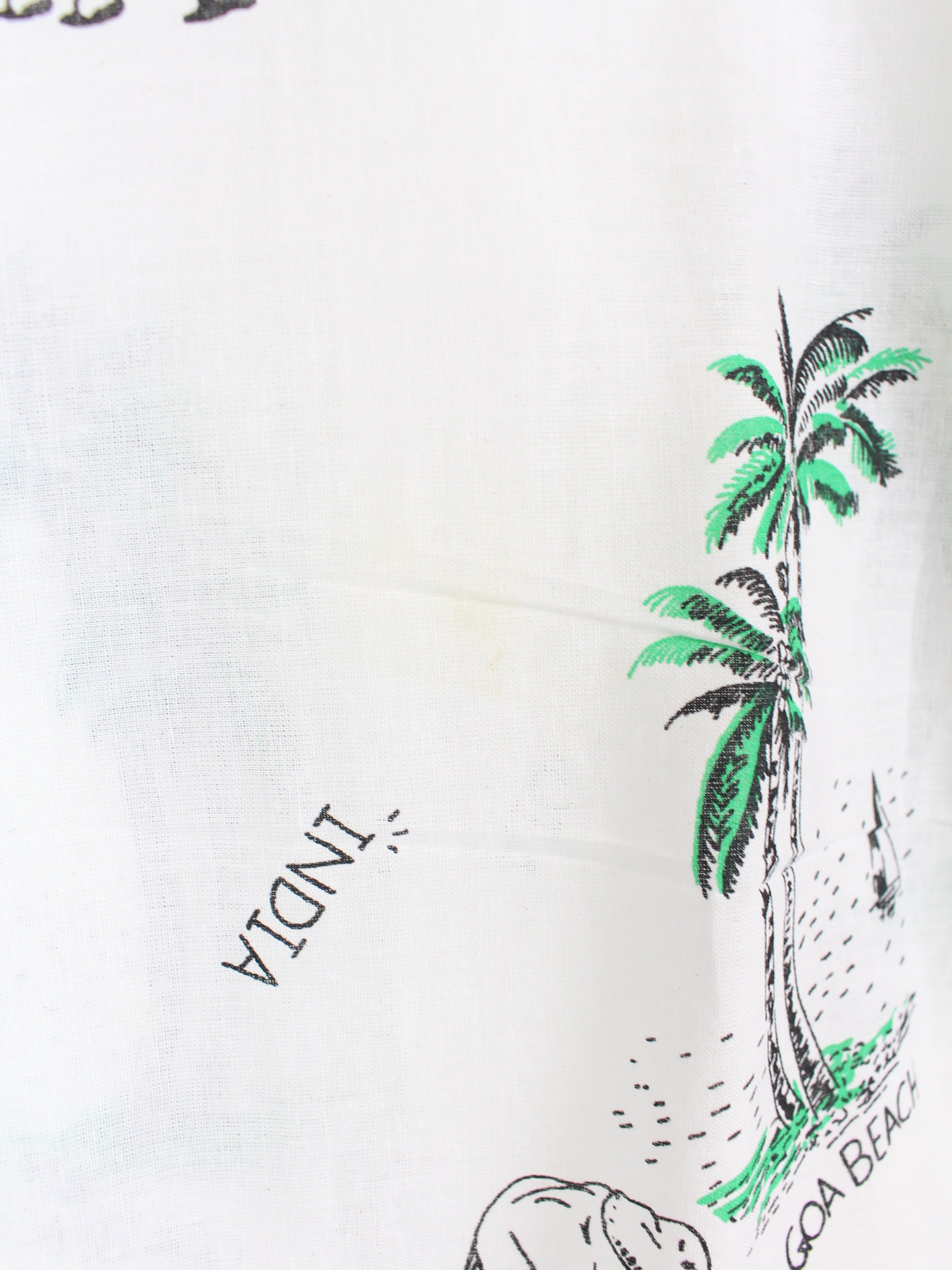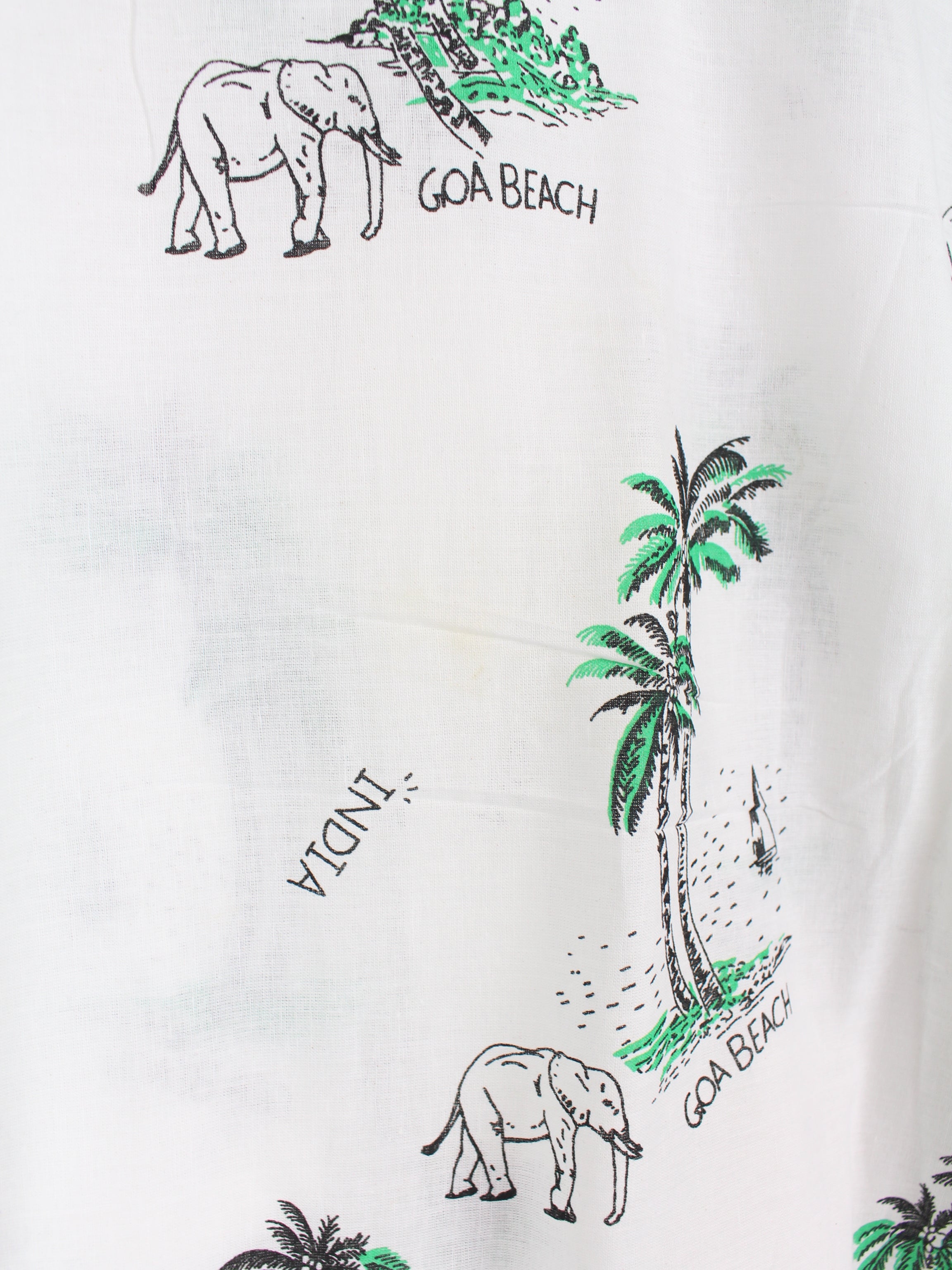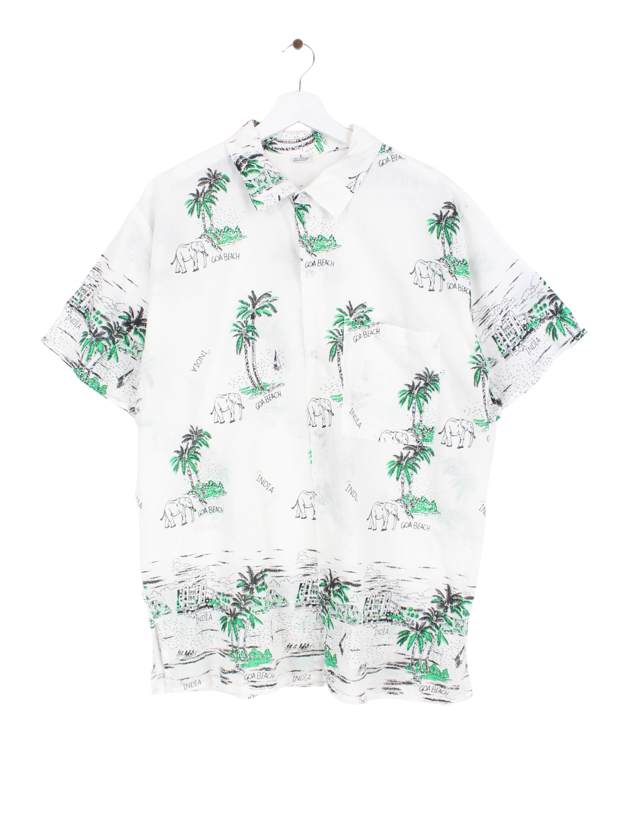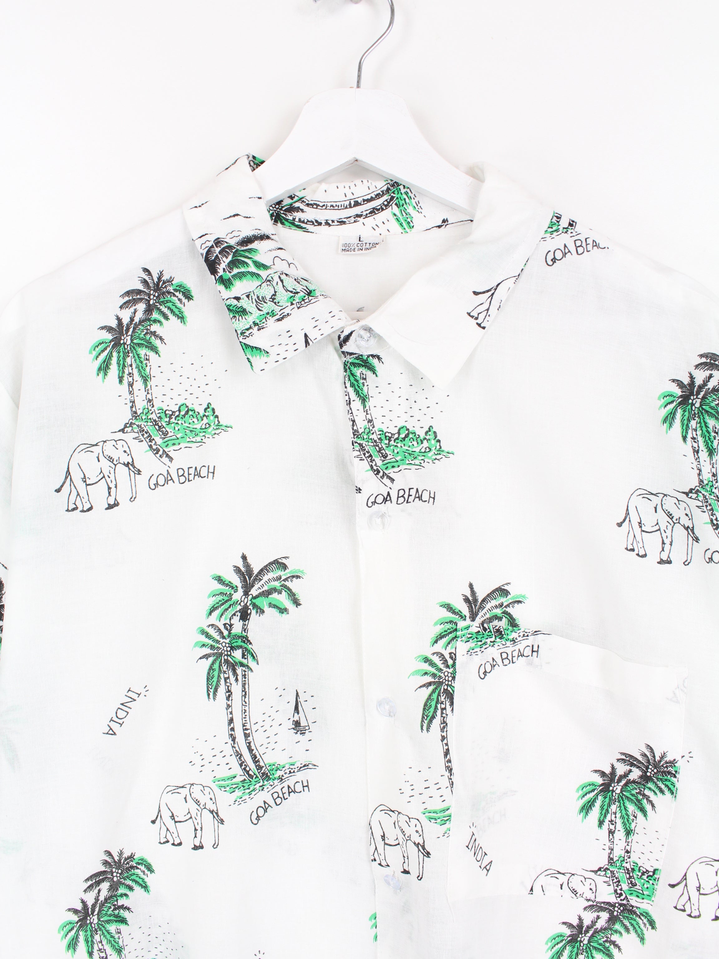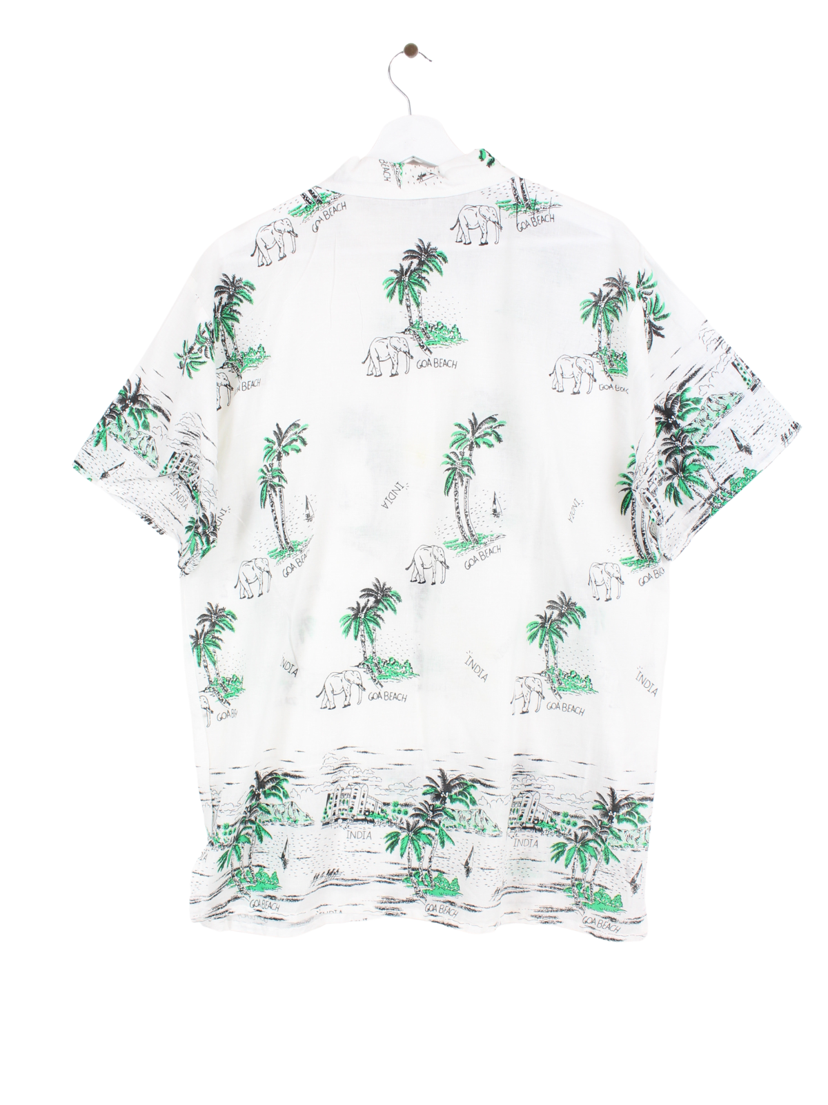 White vintage Hawaiian shirt with elephants and palm trees print.
