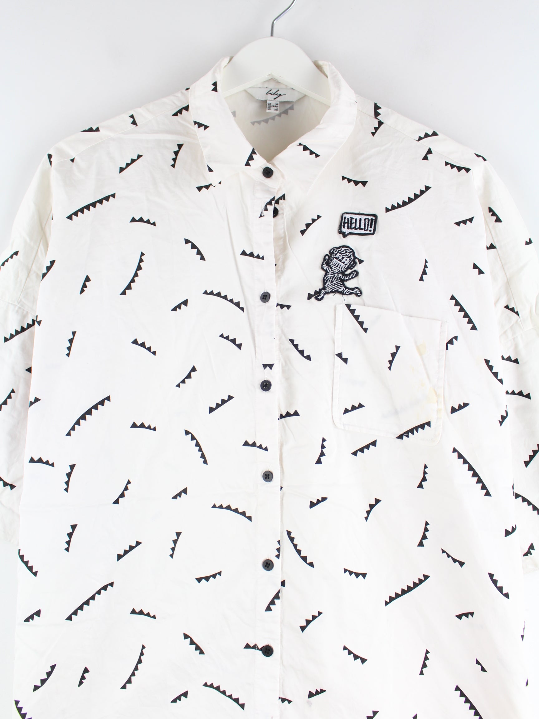 Vintage Hawaii Pattern Short Sleeve Shirt White M