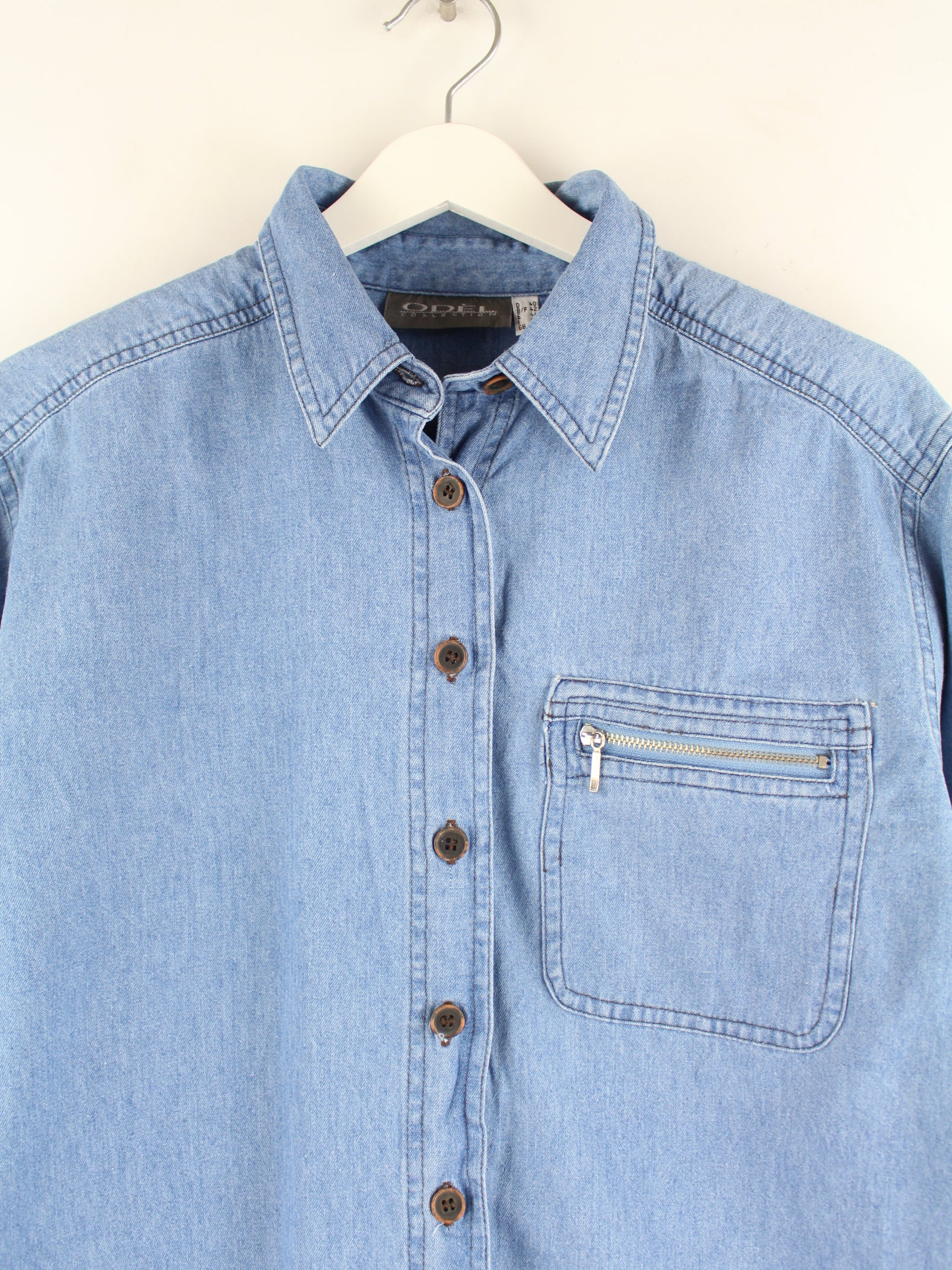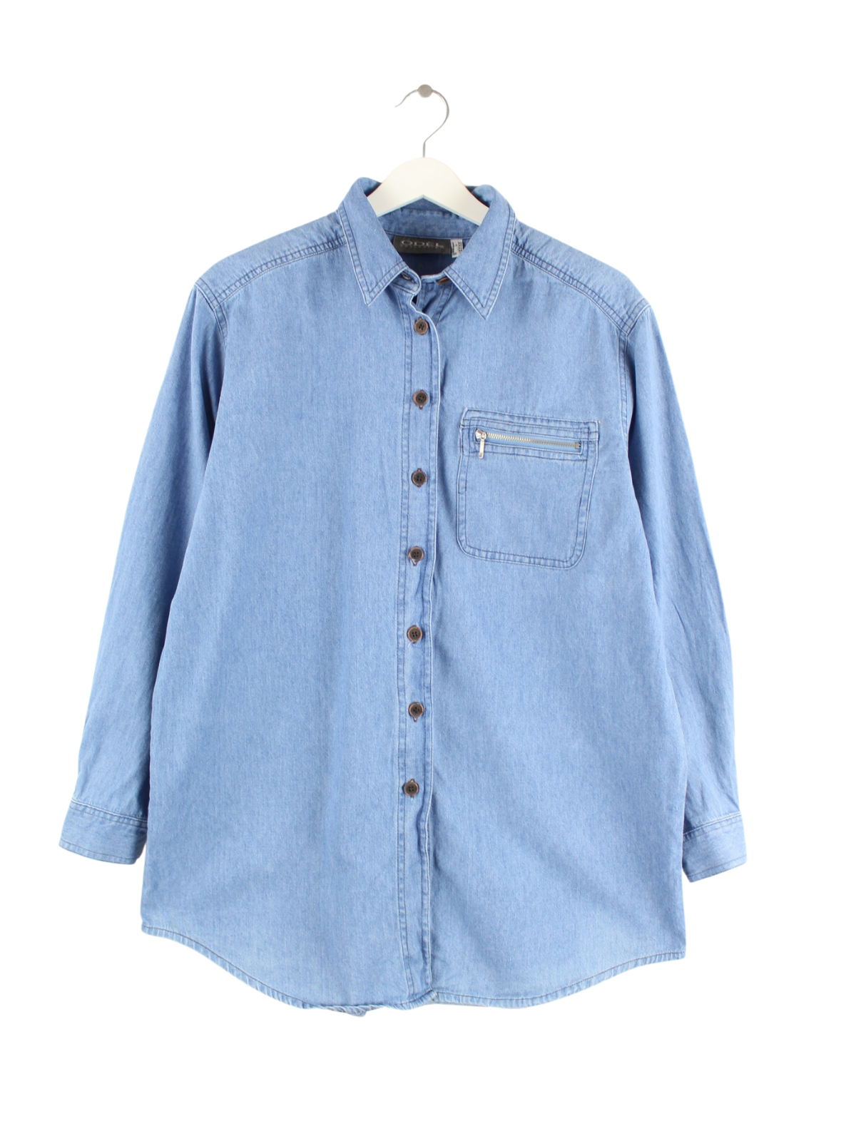 Vintage leisure shirt in size S. It is made of cotton and is available from us in blue.