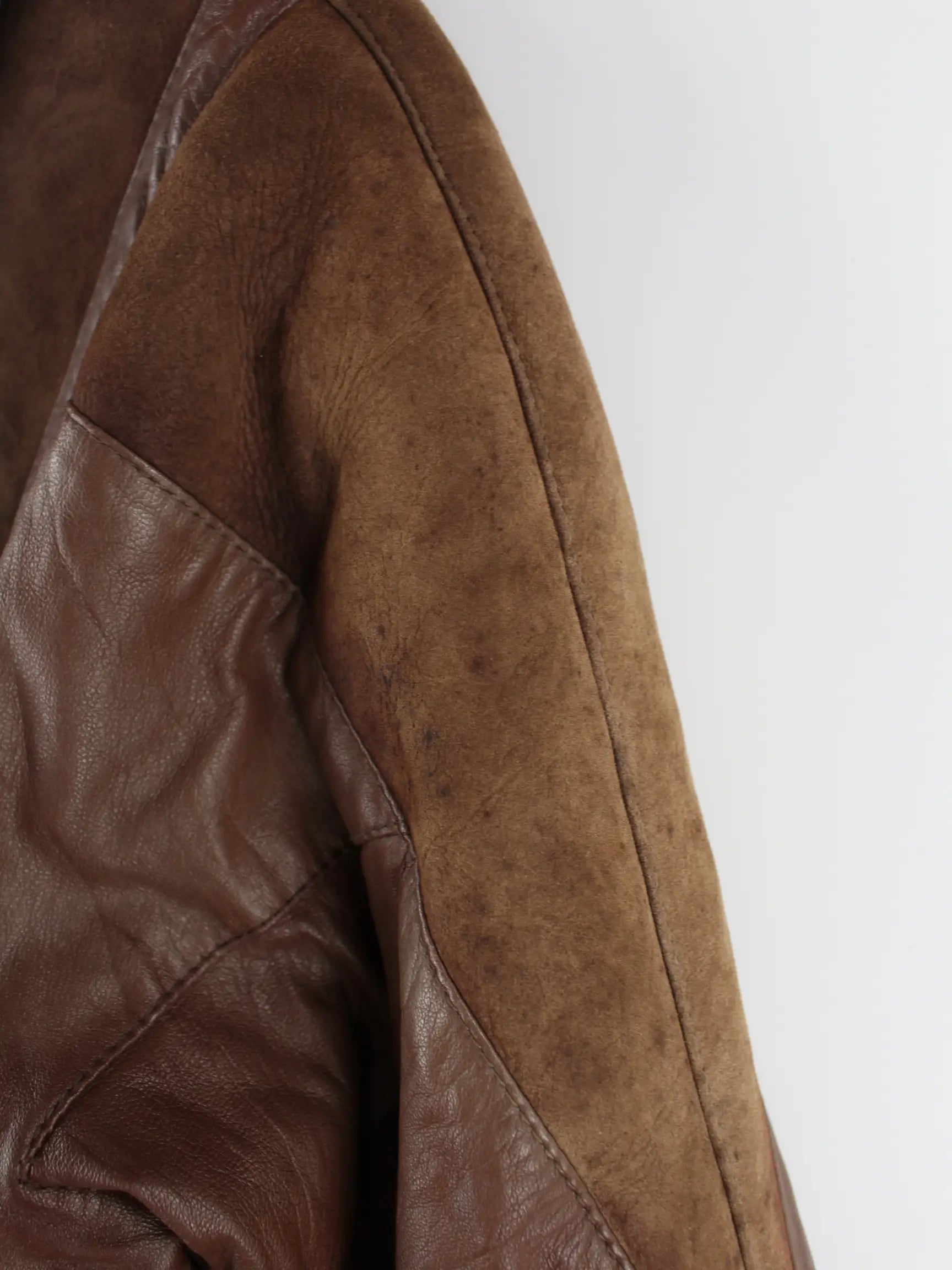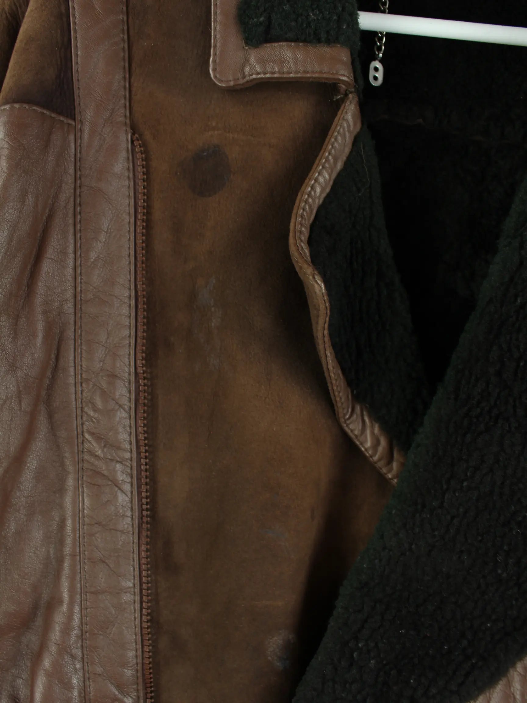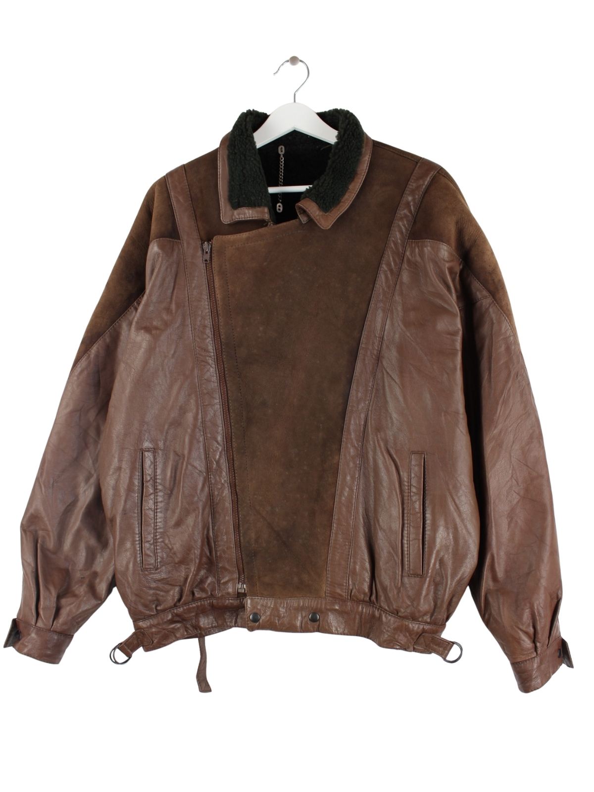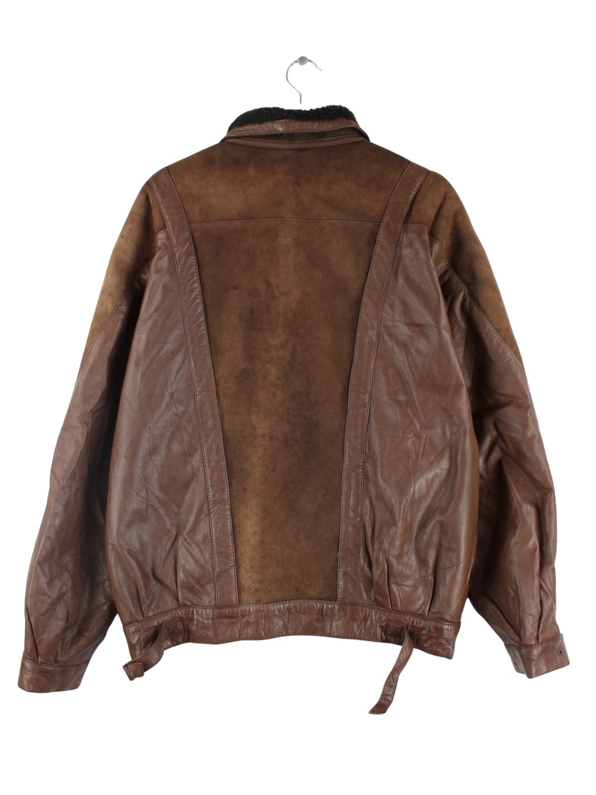 Braune Vintage Jacke in Größe XL. Sie ist aus Leder gefertigt. Den Zustand würden wir als 'In Ordnung' bezeichnen (vergl. Bilder).