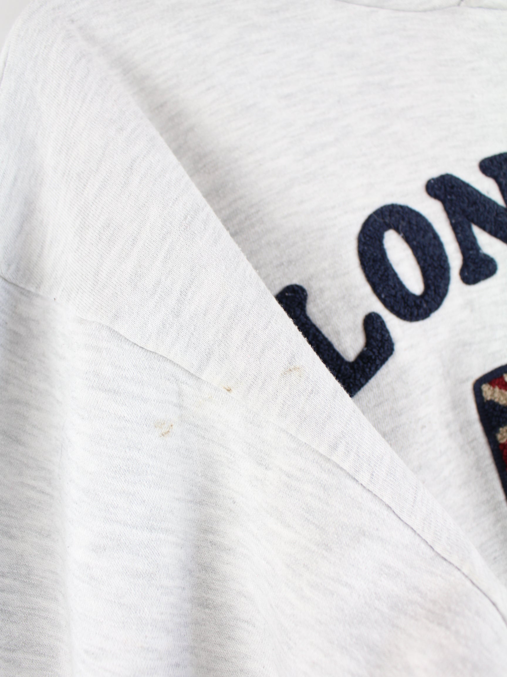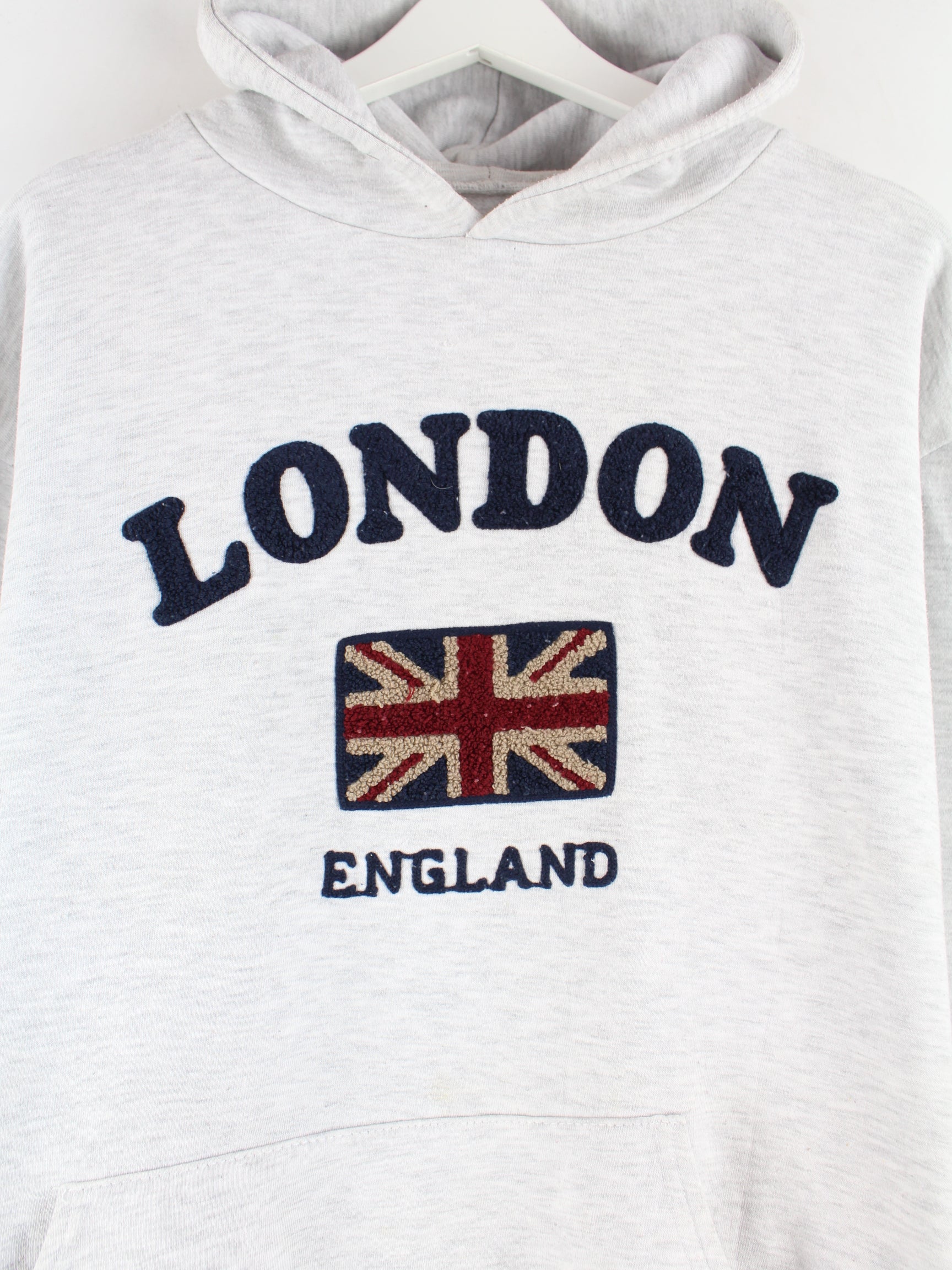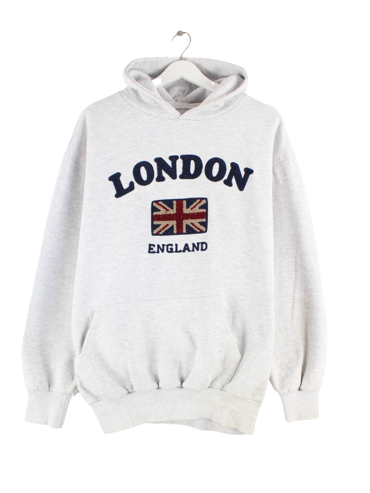 Vintage hoodie with embroidery in size M. It is made from a cotton blend and is available in grey.