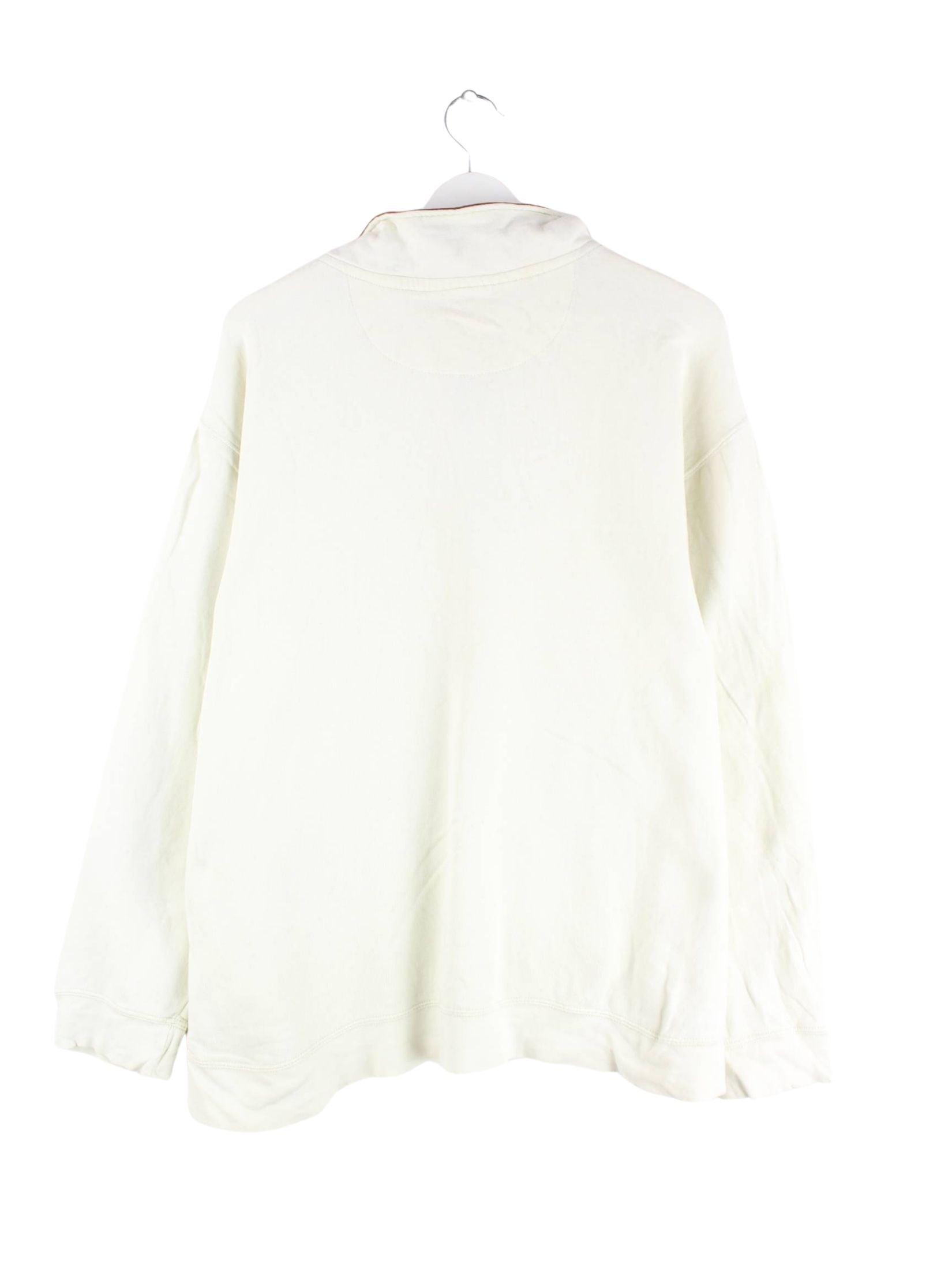 Vintage Sweater mit gesticktem Logo und halbem Reißverschluß in Größe XL. Er ist aus einer Baumwollmischung produziert und in Beige im Angebot.