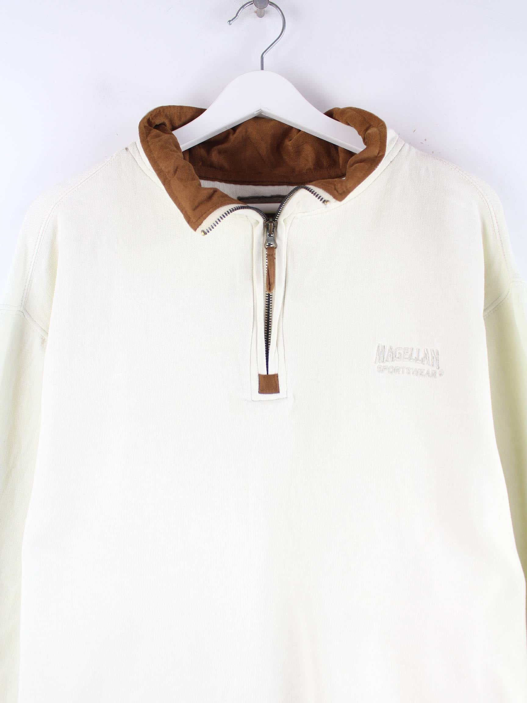 Vintage Magellan Embroidered Half Zip Sweater Beige XL