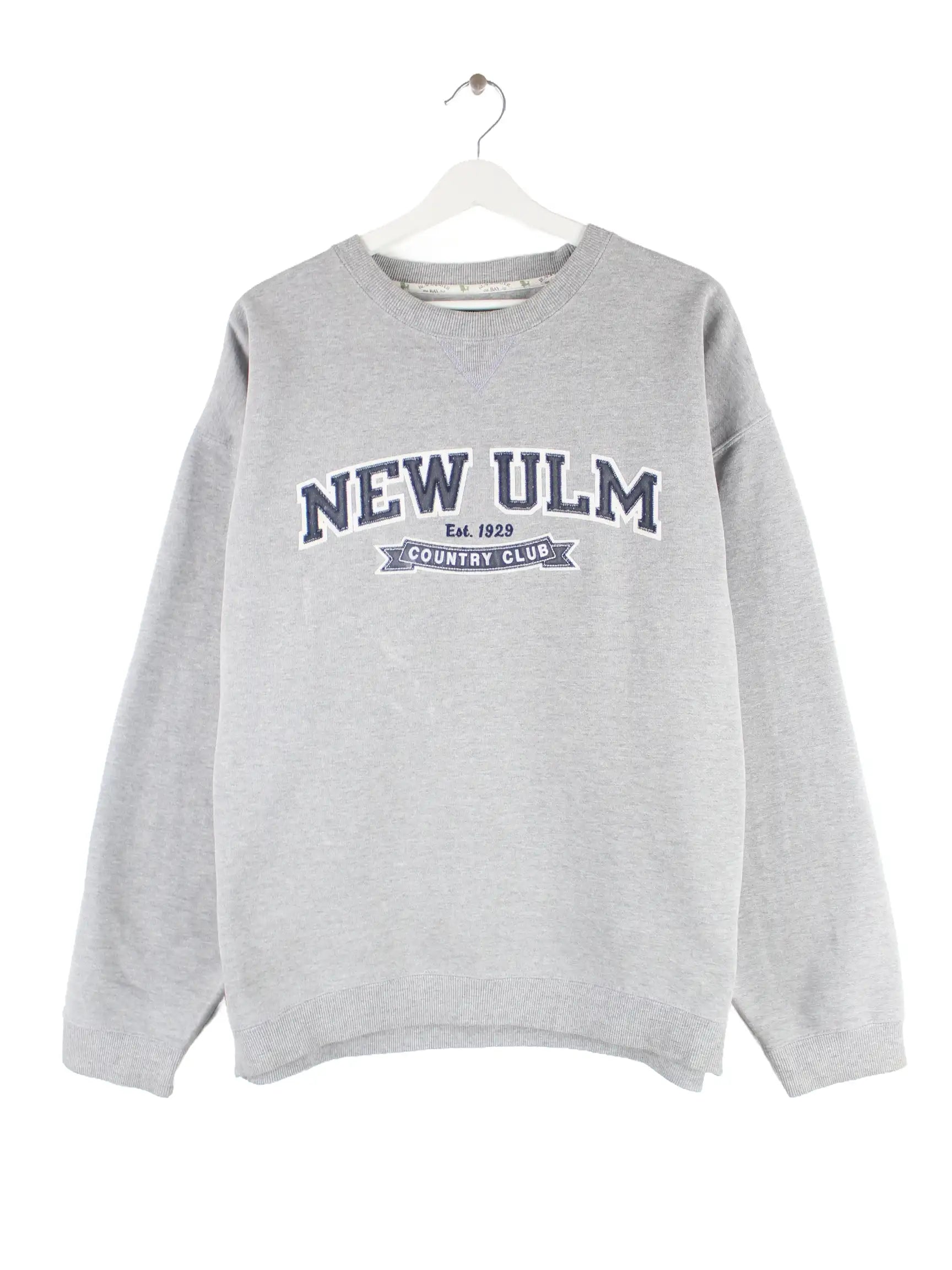 Grauer Vintage Sweater in Größe L. Er ist aus einer Baumwollmischung angefertigt und in sehr gutem Zustand zu bekommen.