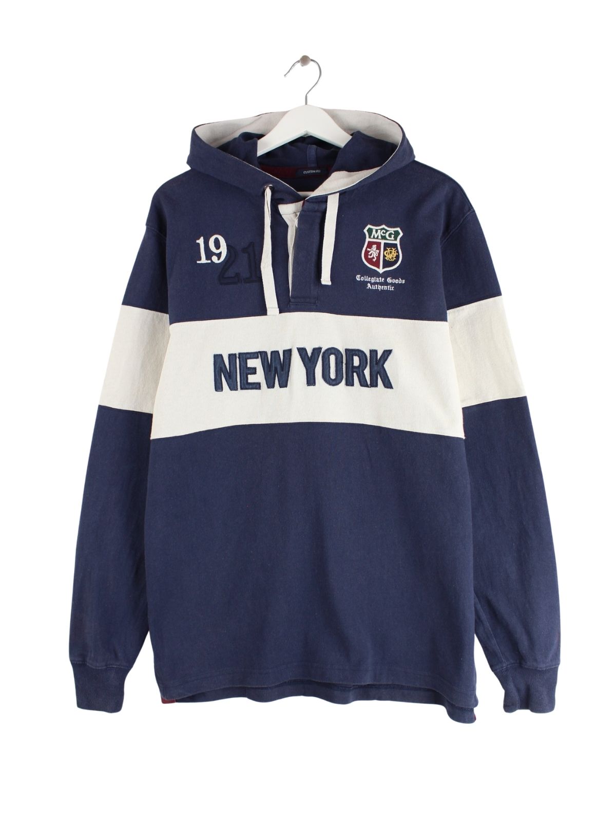 Vintage Hoodie in Größe XL. Er ist aus einer Baumwollmischung angefertigt und in Blau zu bekommen.