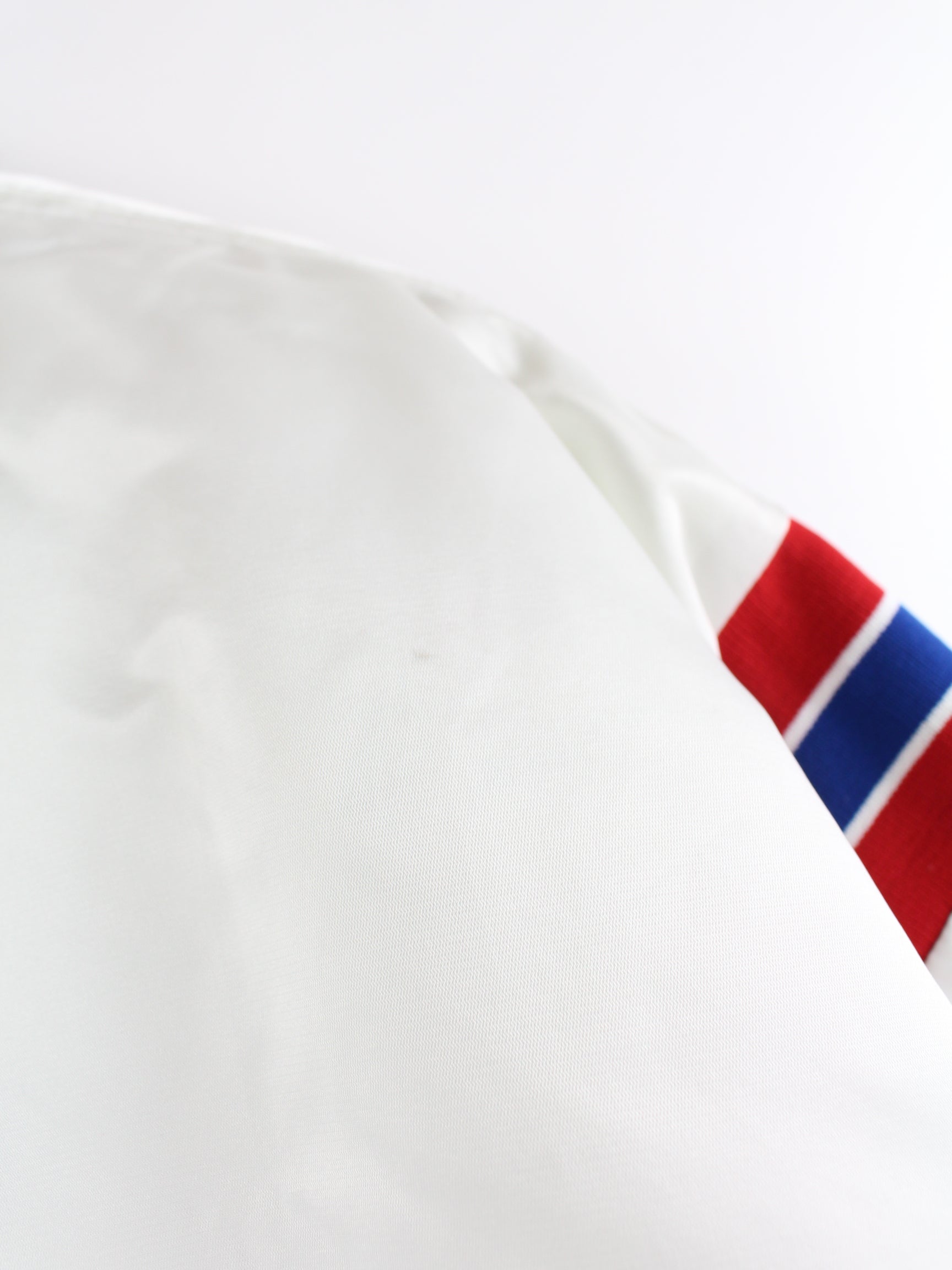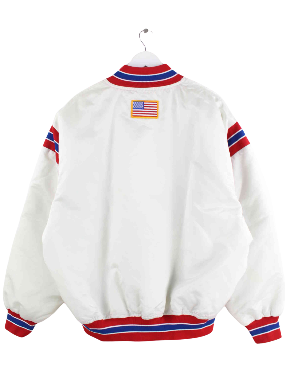 White vintage light jacket in size XL. It is made of synthetic material and is in good condition on stock.