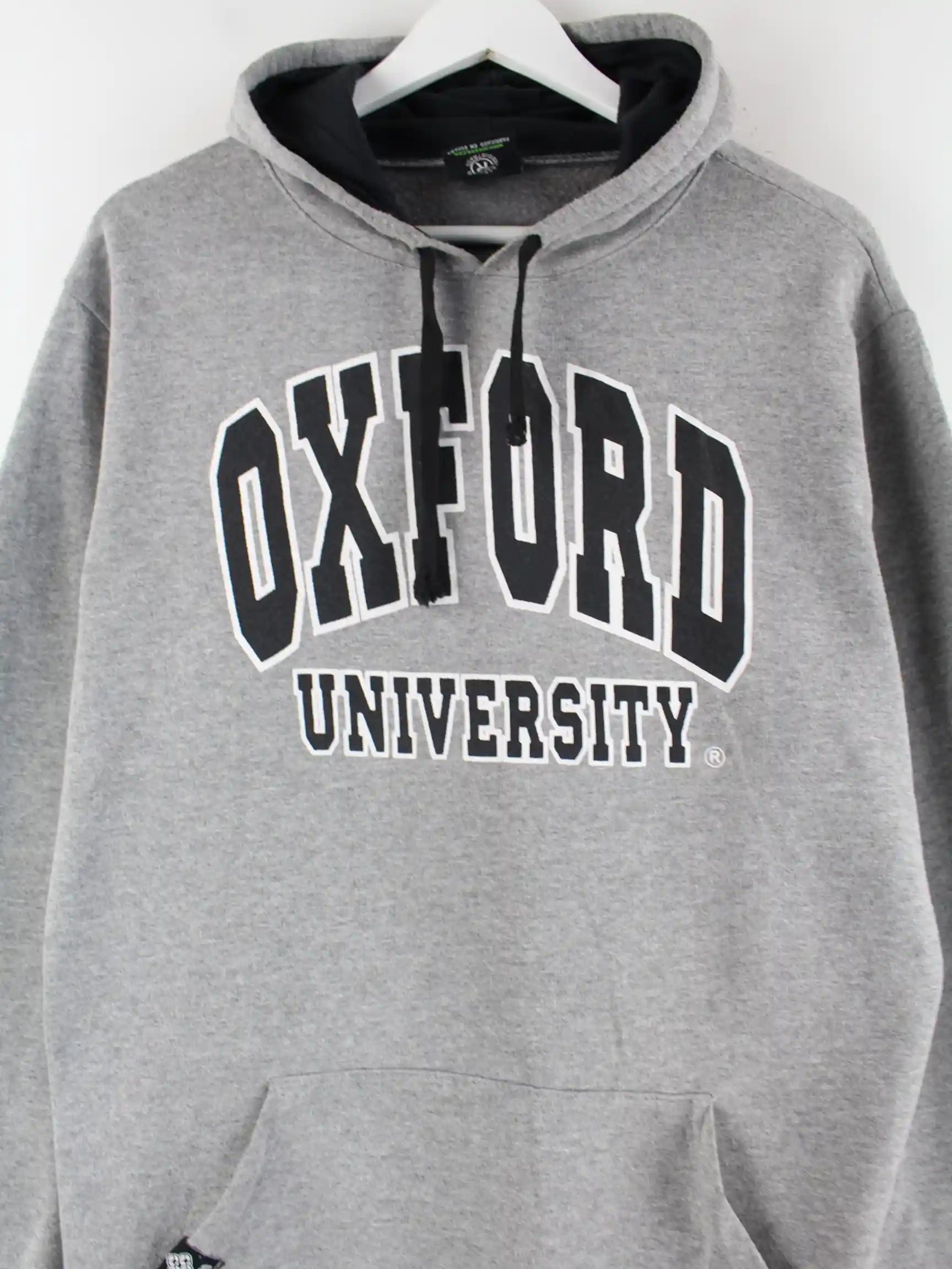 Grauer Vintage Hoodie in Größe XXL. Er ist aus einer Baumwollmischung gemacht und in sehr gutem Zustand auf Lager. Mit schönem University Print.