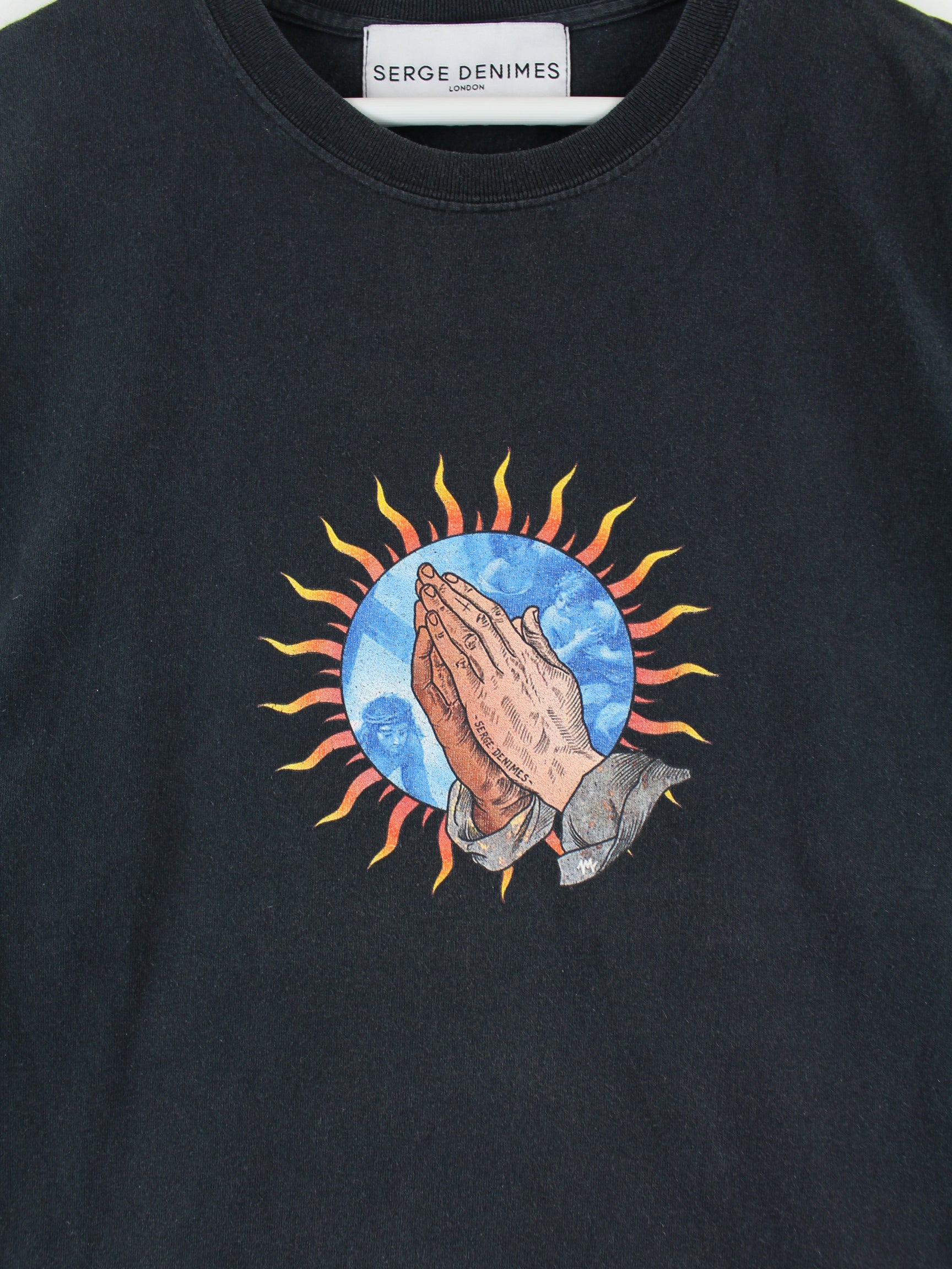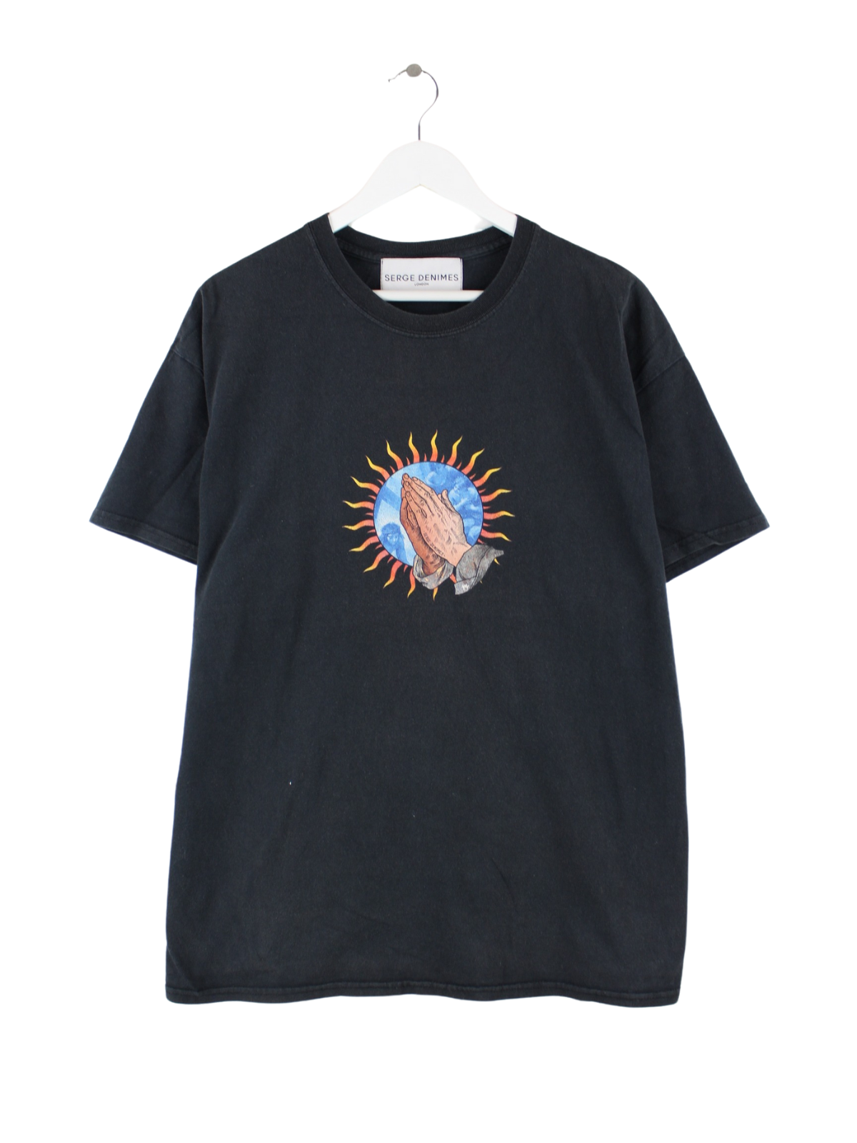 Black vintage T-shirt in size L. It is made of cotton and is in very good condition. With a beautiful prayer print.