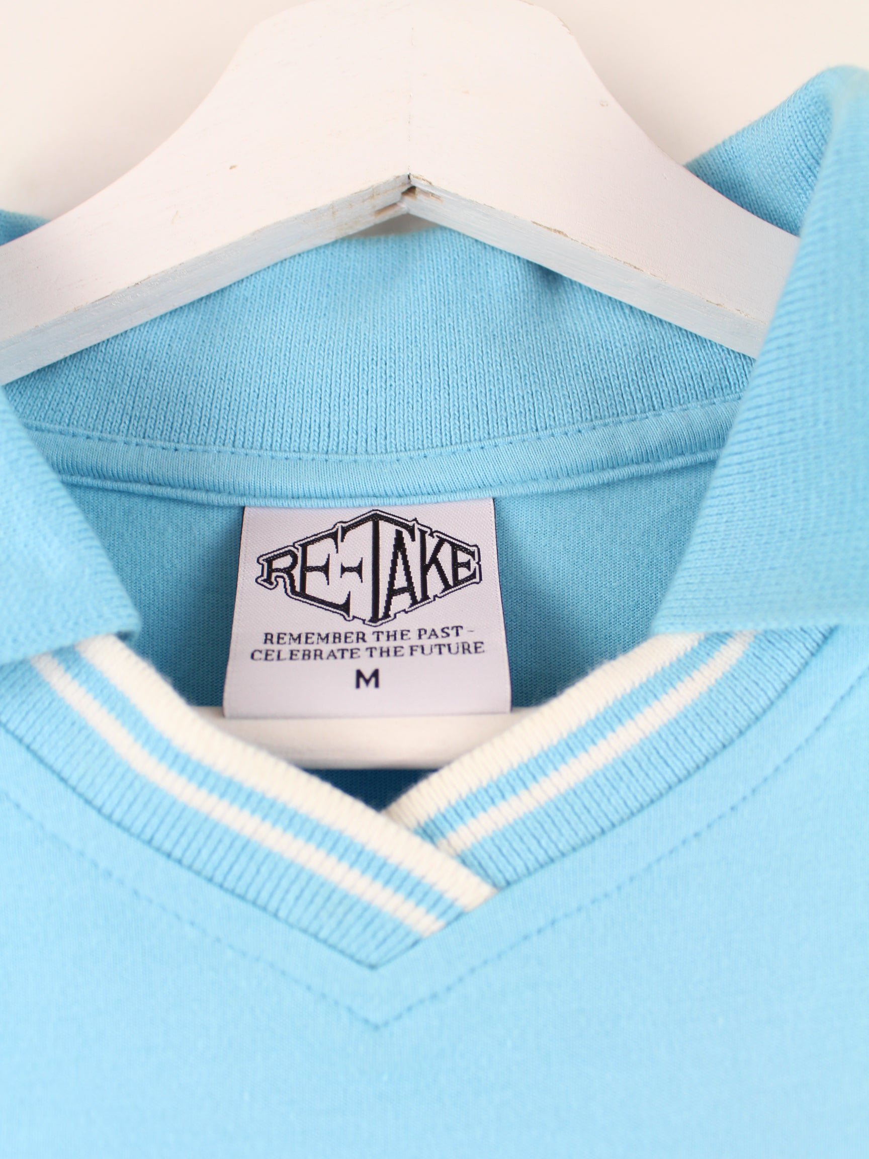 Turquoise vintage polo shirt in size M. It is made of cotton and is in very good condition. With a chic print.