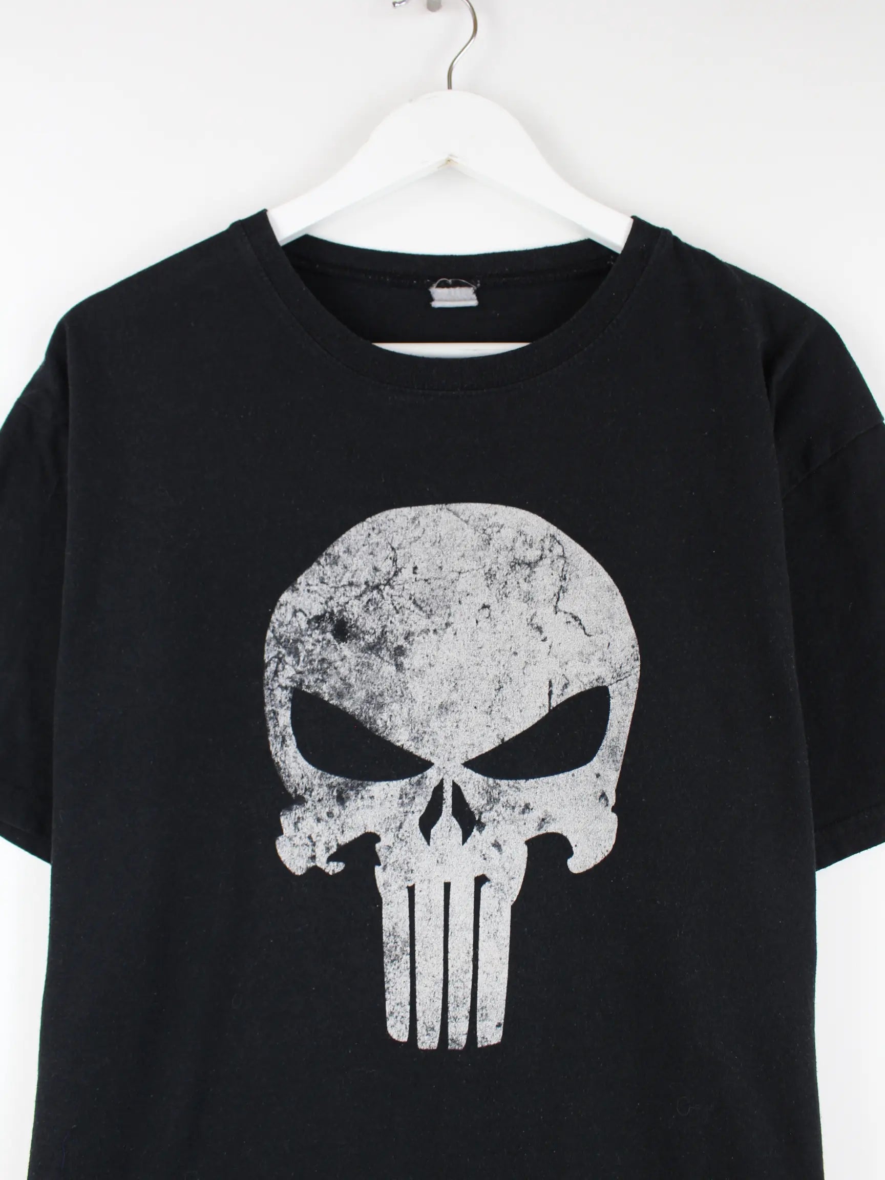 Vintage T-Shirt in Größe XL. Es ist aus Baumwolle gemacht und in Schwarz vorrätig. Mit chiquem Punisher Print.