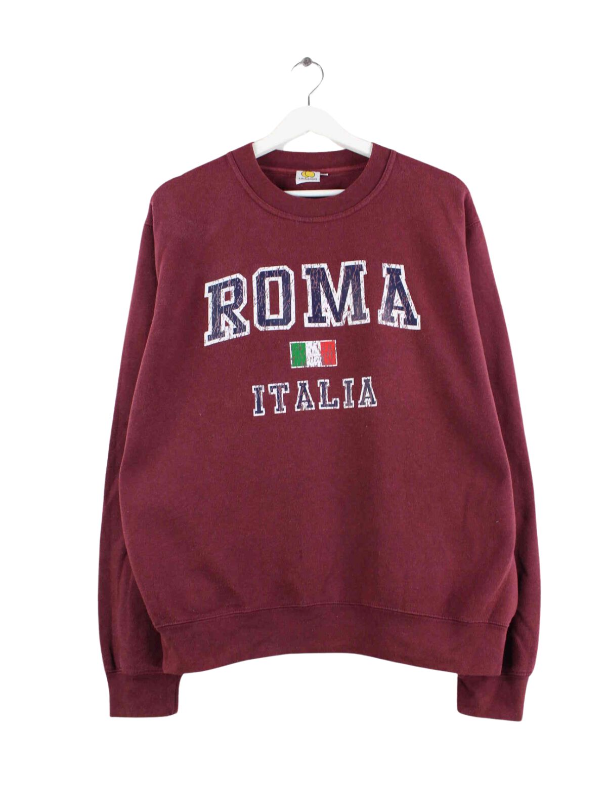 Red vintage sweater in size M. It is made of a cotton blend and is in good condition.