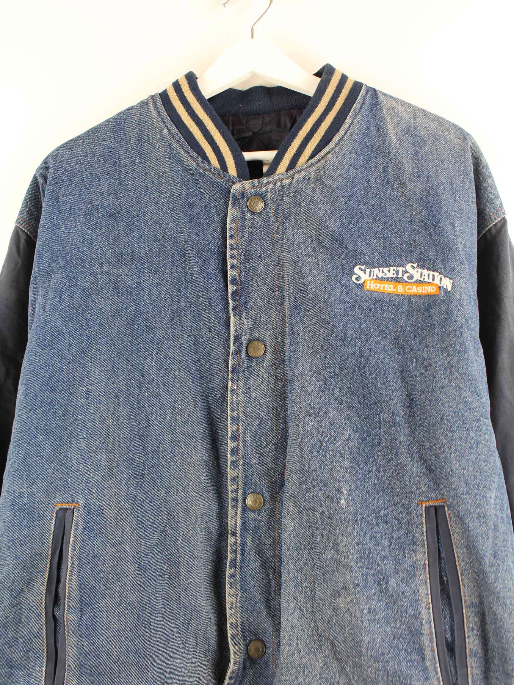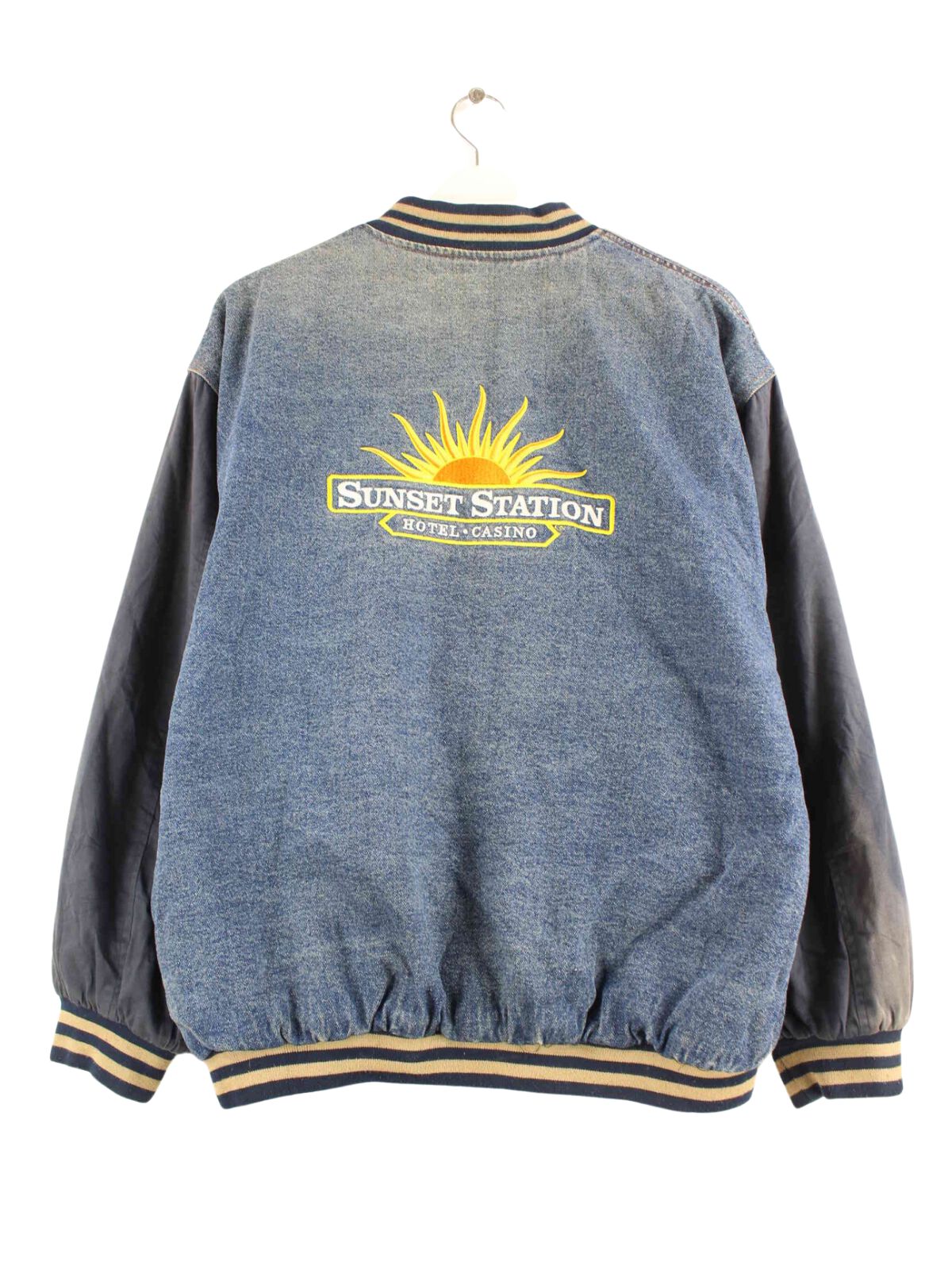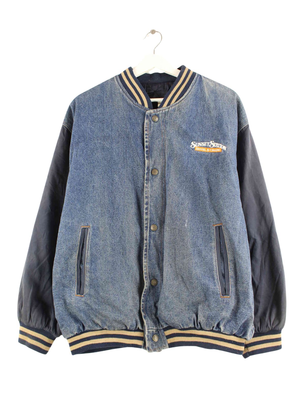 Vintage jacket in size L. It is made from a cotton blend and is available in blue.