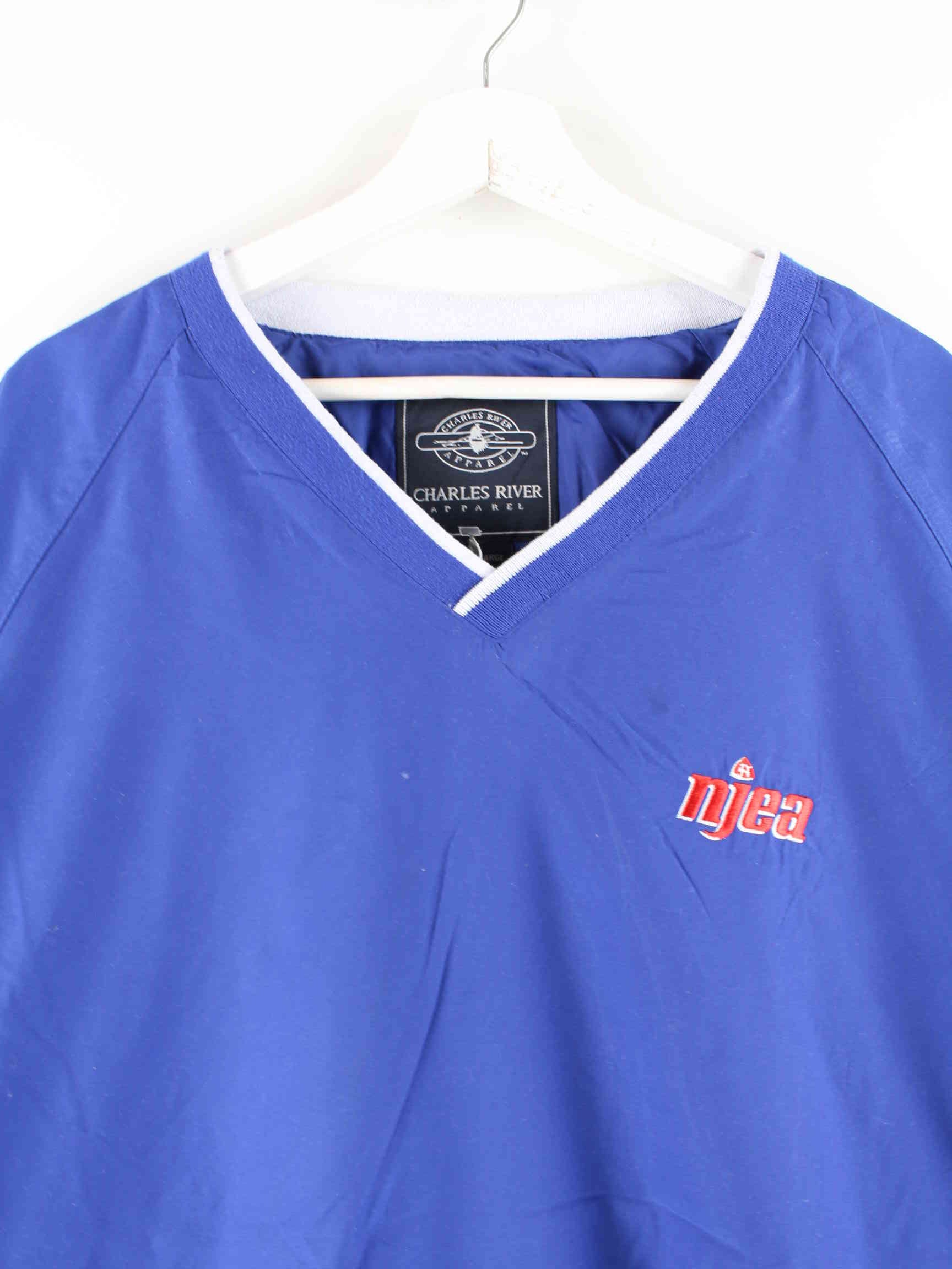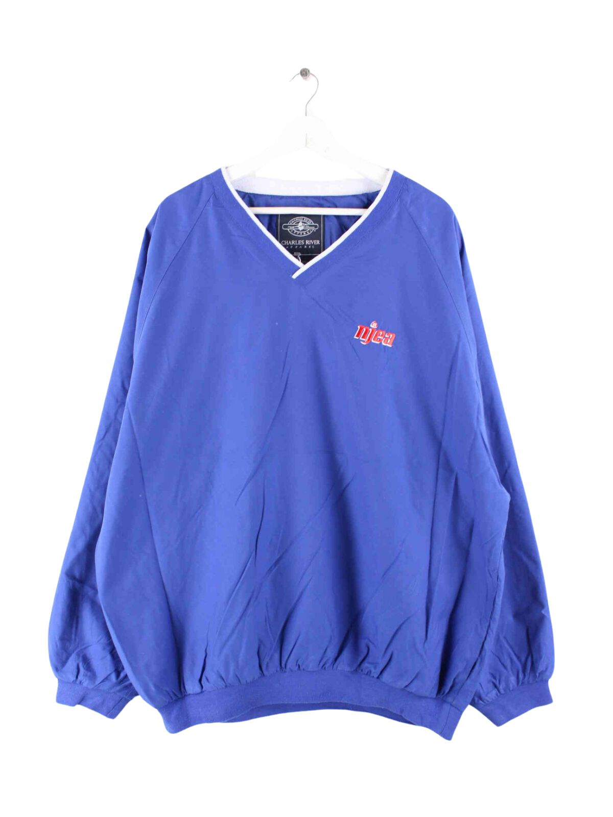 Blue vintage sweater in size XXL. It is made of synthetic material and is offered in good condition.