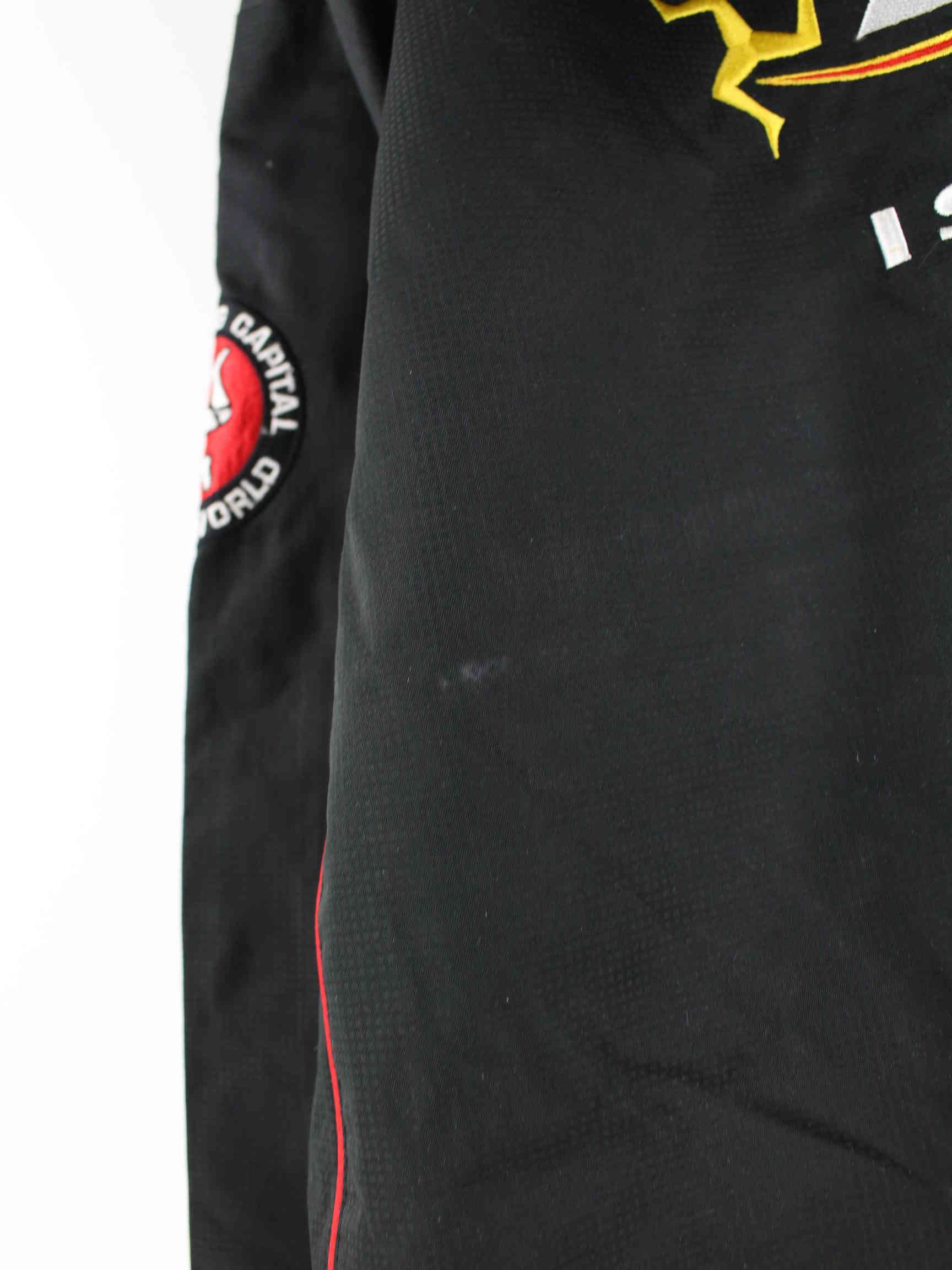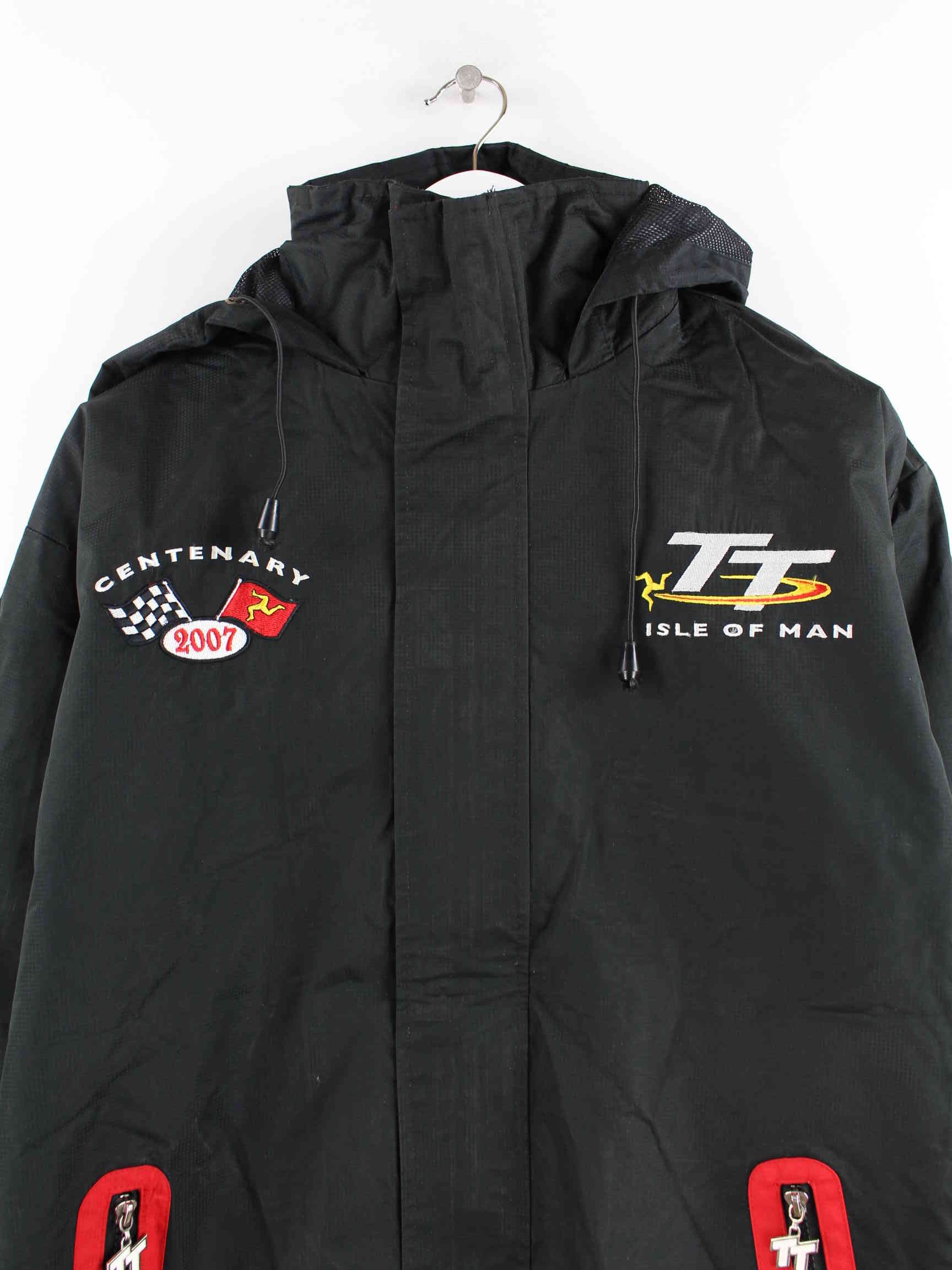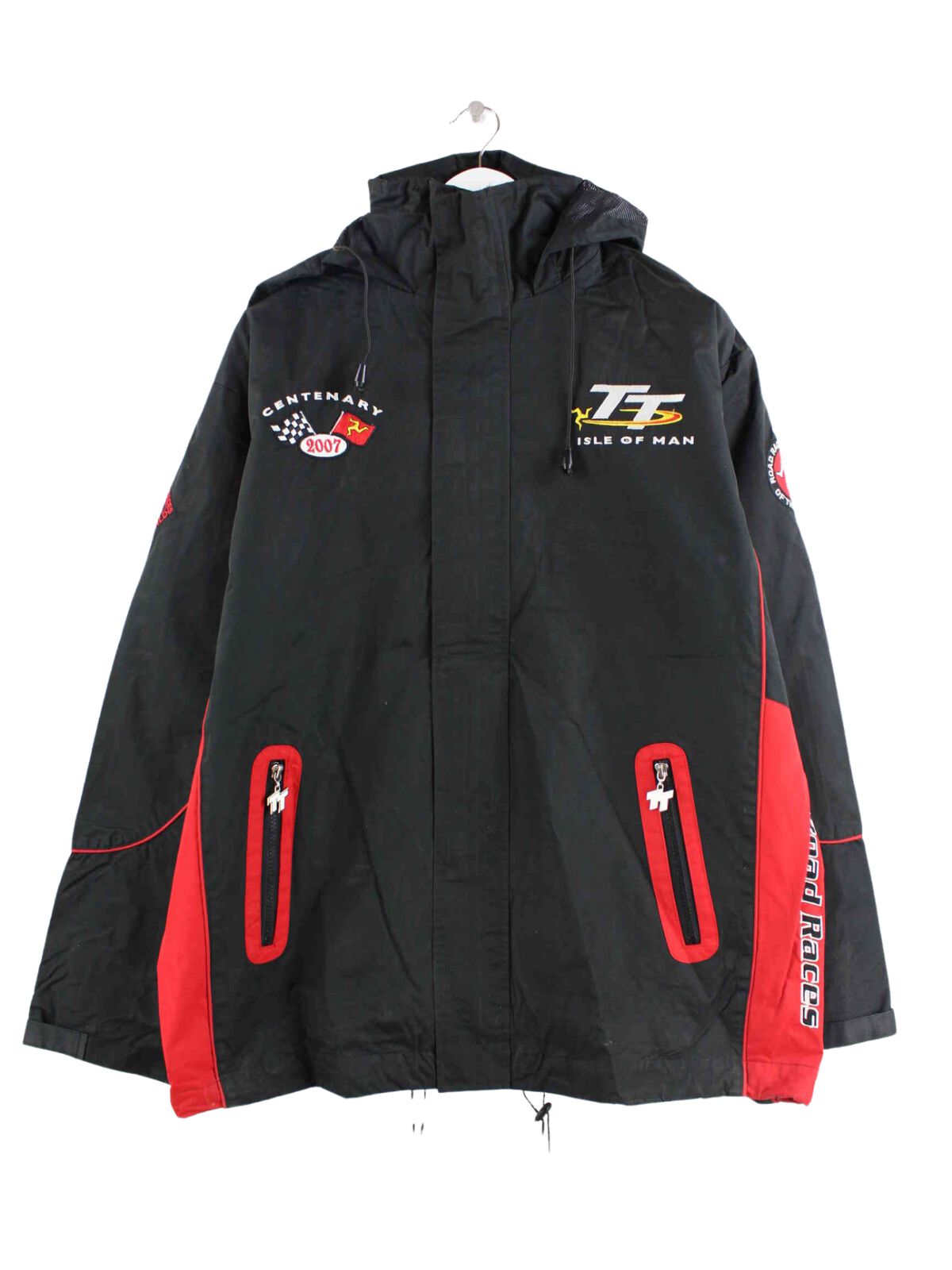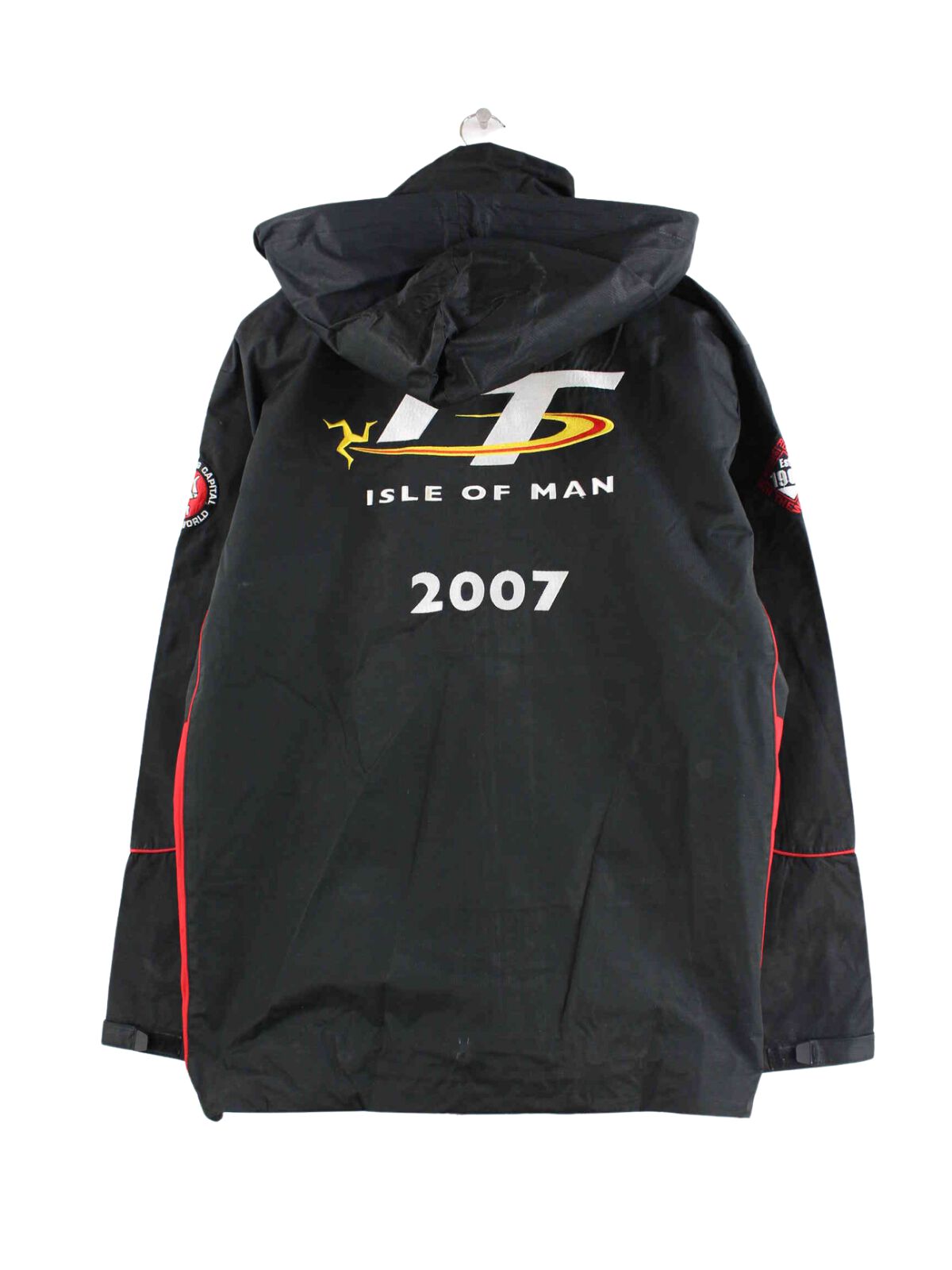 Black vintage lightweight jacket in size L. It is made of synthetic material and is available from us in good condition.