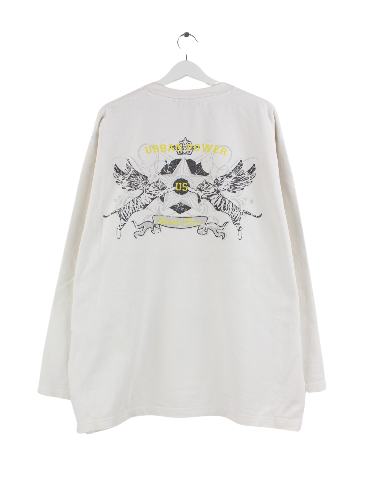 White vintage sweater from the early 2000s in size XXL. It is made of a cotton blend and is in good condition.