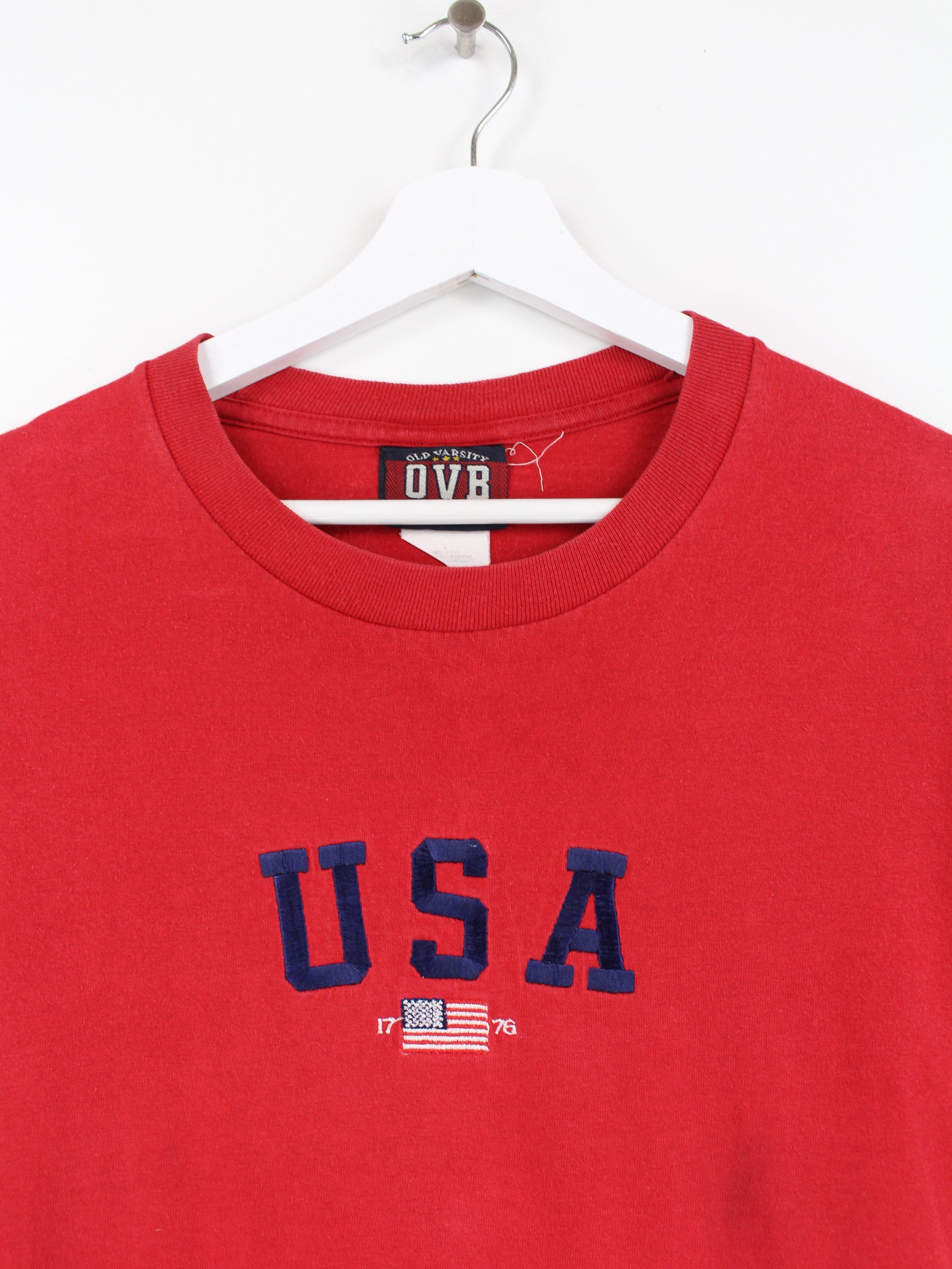 Vintage USA Embroidered T-Shirt Red L