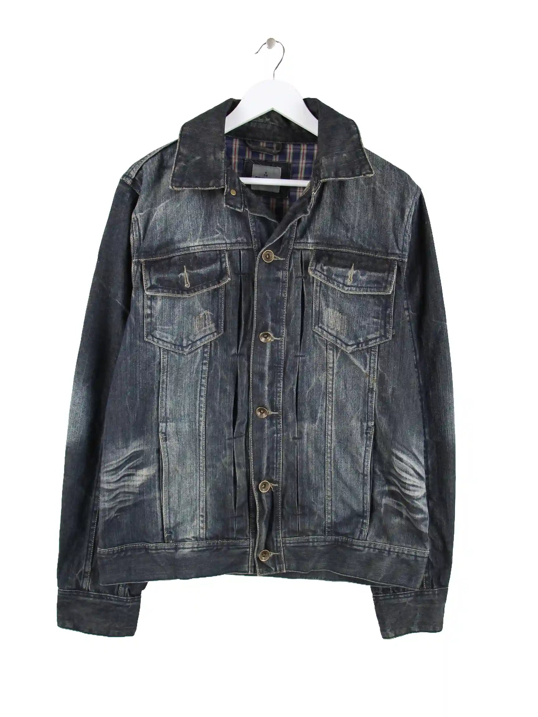 Vintage Used Look Jeans Jacke Blau M