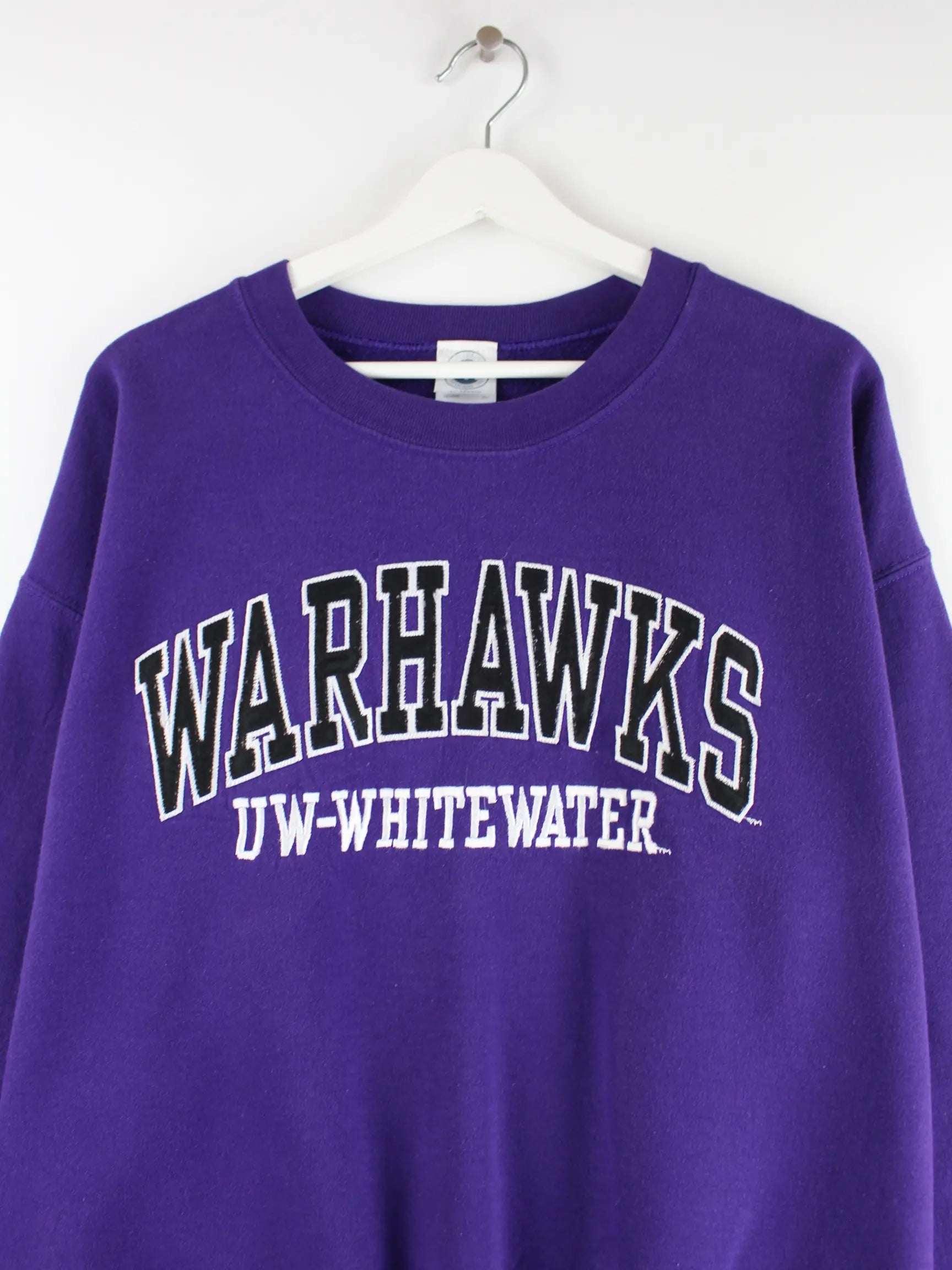 Lilafarbener Vintage Sweater in Größe L. Er ist aus einer Baumwollmischung gemacht und in gutem Zustand bei uns vorrätig.