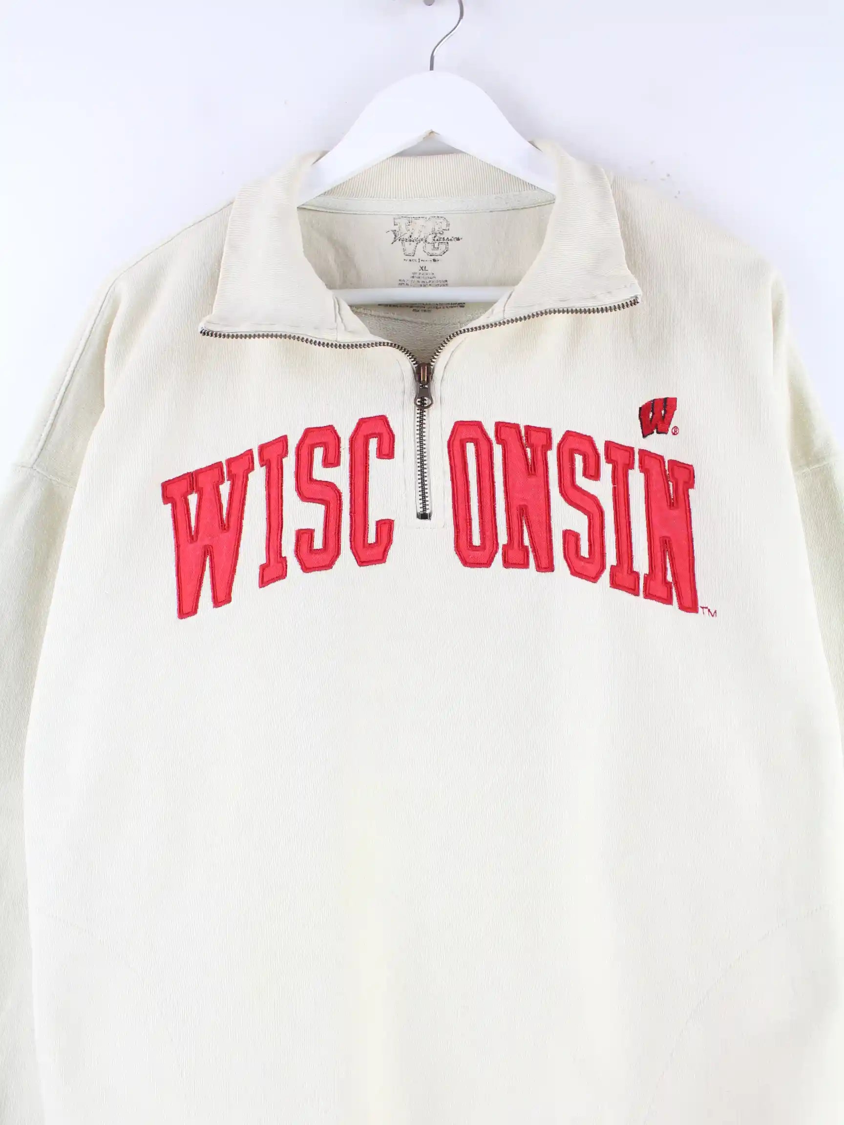 Vintage Wisconsin Embroidered Half Zip Sweater Beige XL