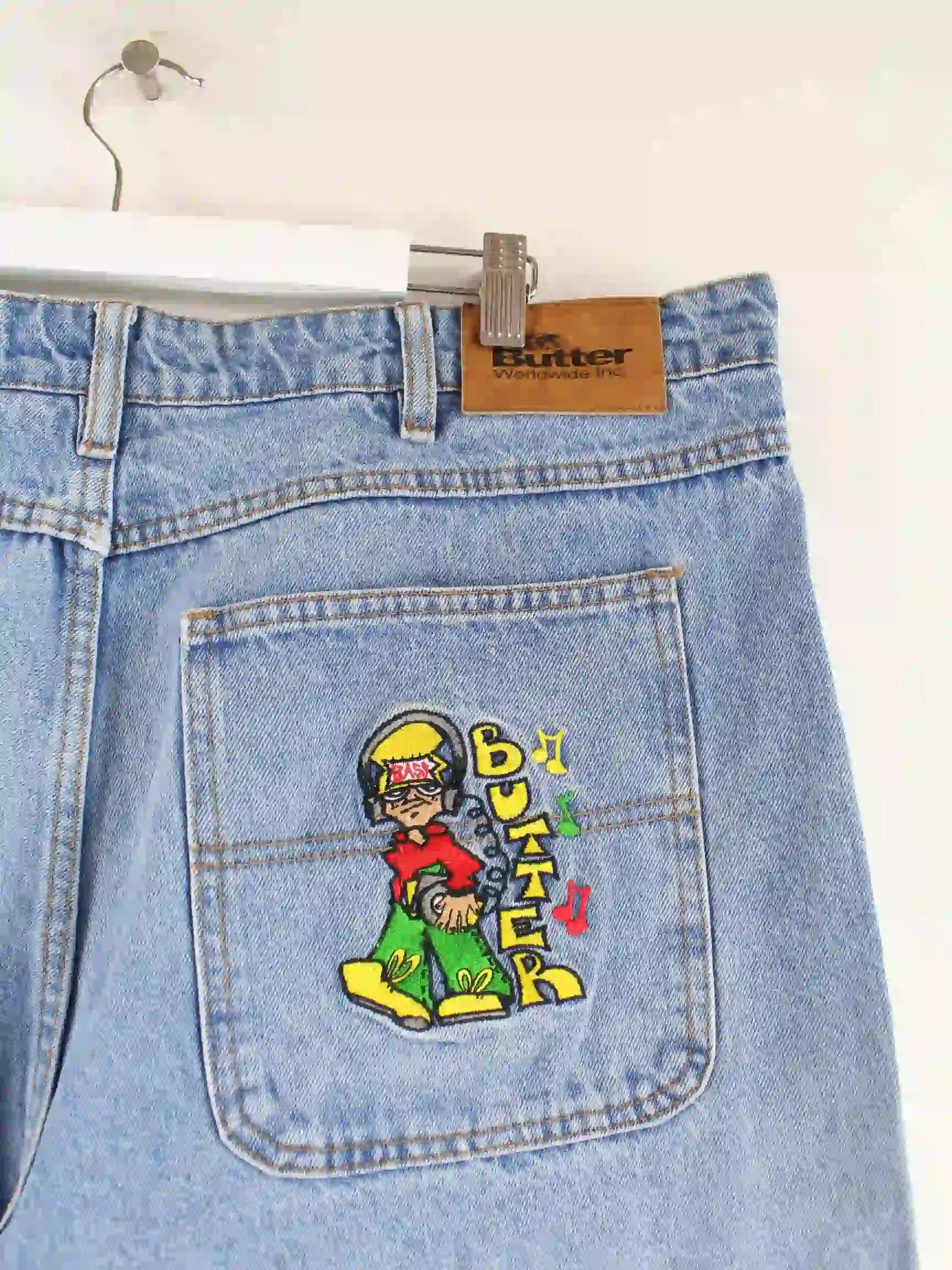 Vintage y2k Butter Embroidered Baggy Jeans Blau W36