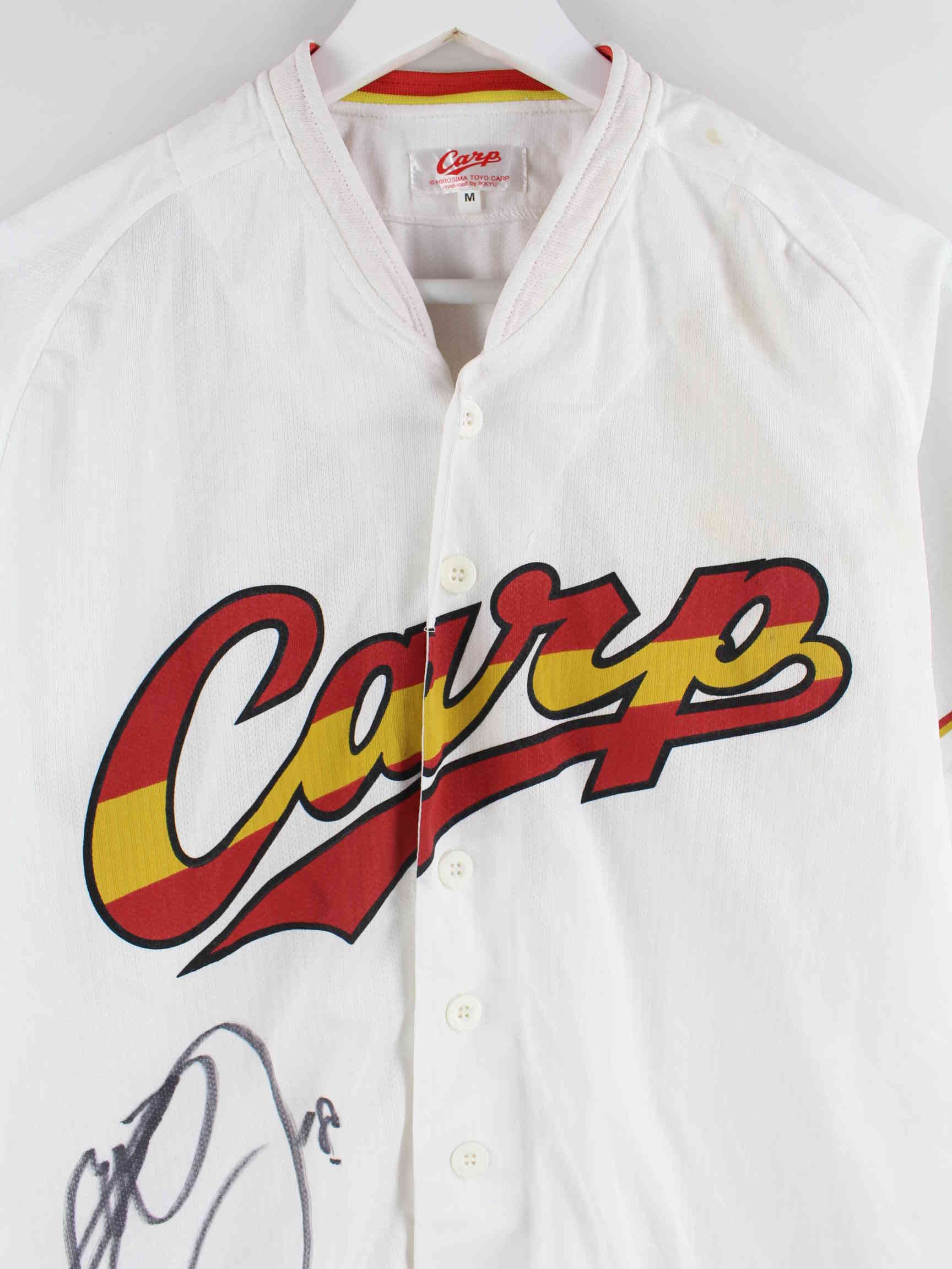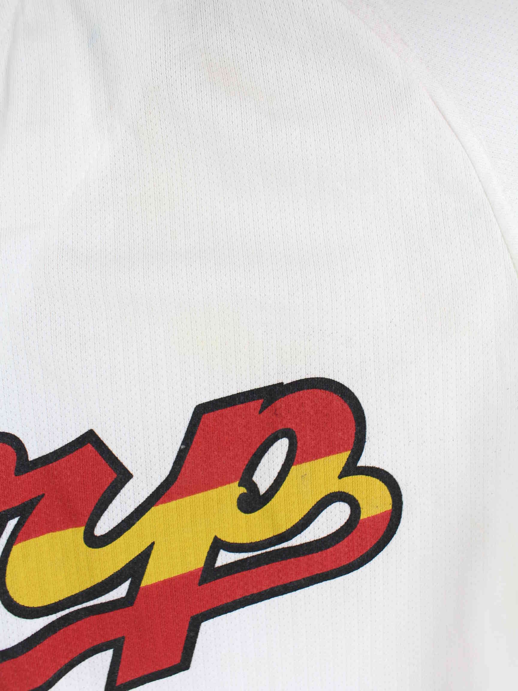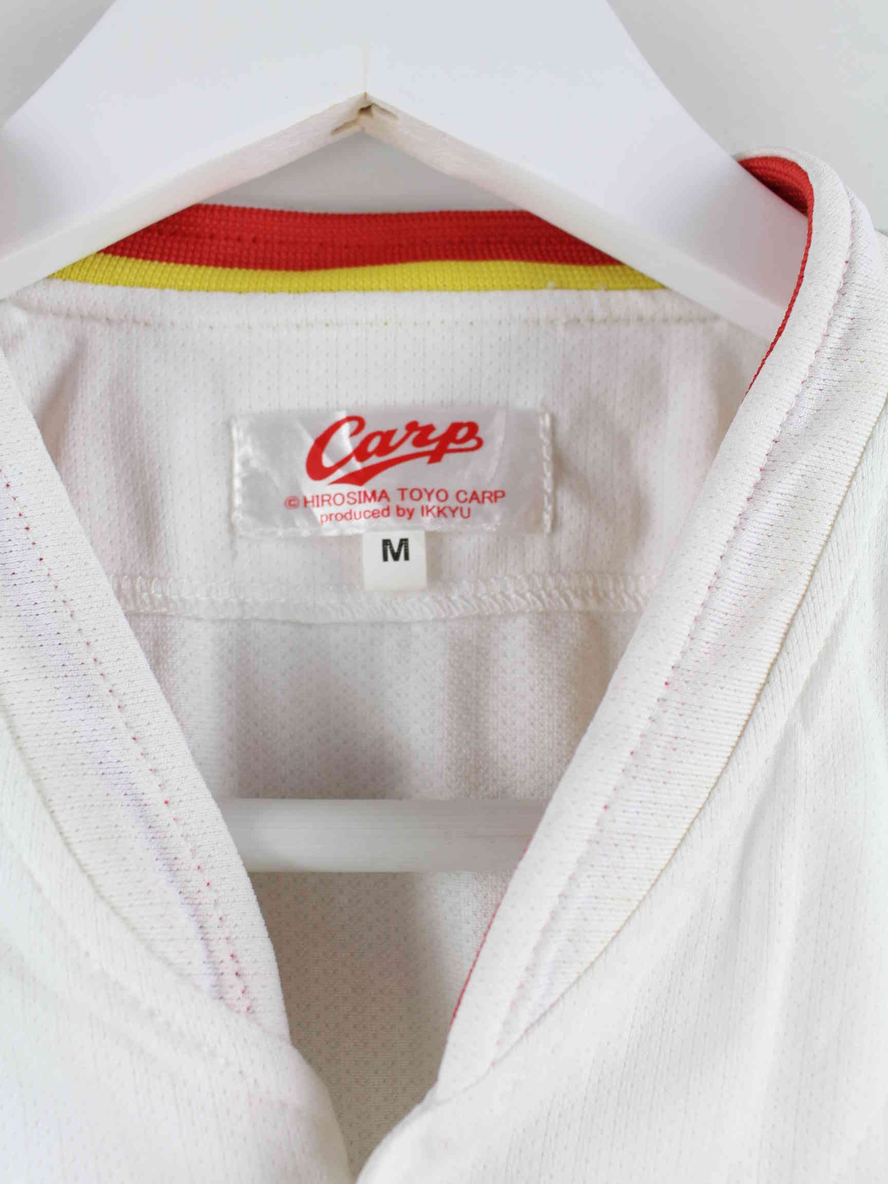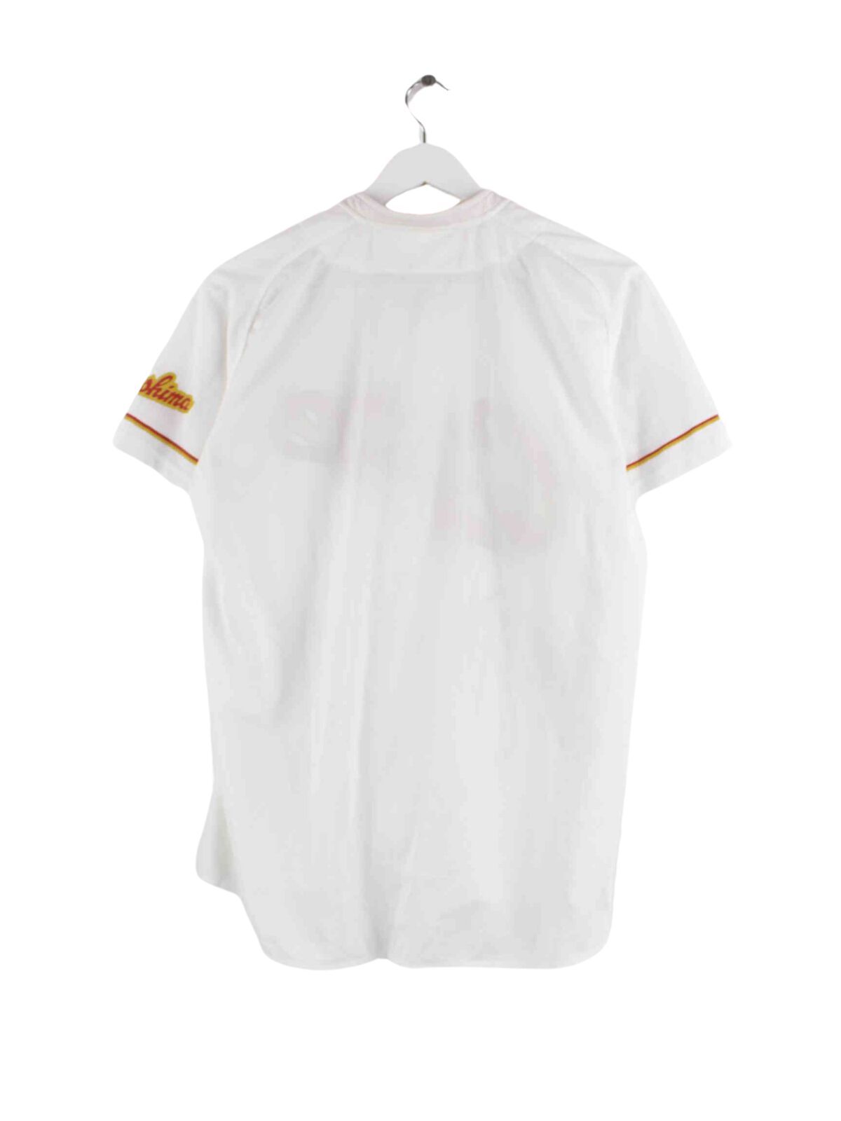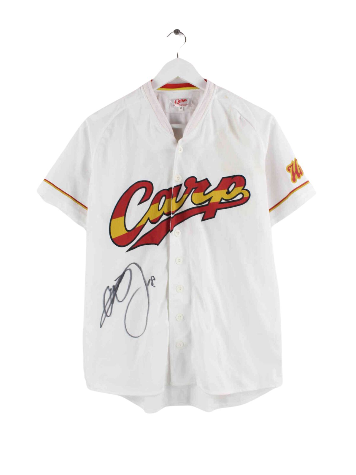 White vintage jersey from the early 2000s in size S. It is made of synthetic. We would describe the condition as 'fine' (see pictures). With beautiful carp print.