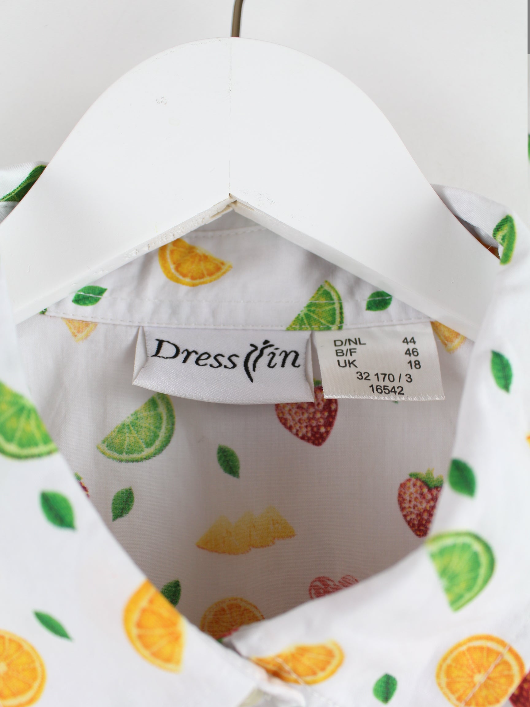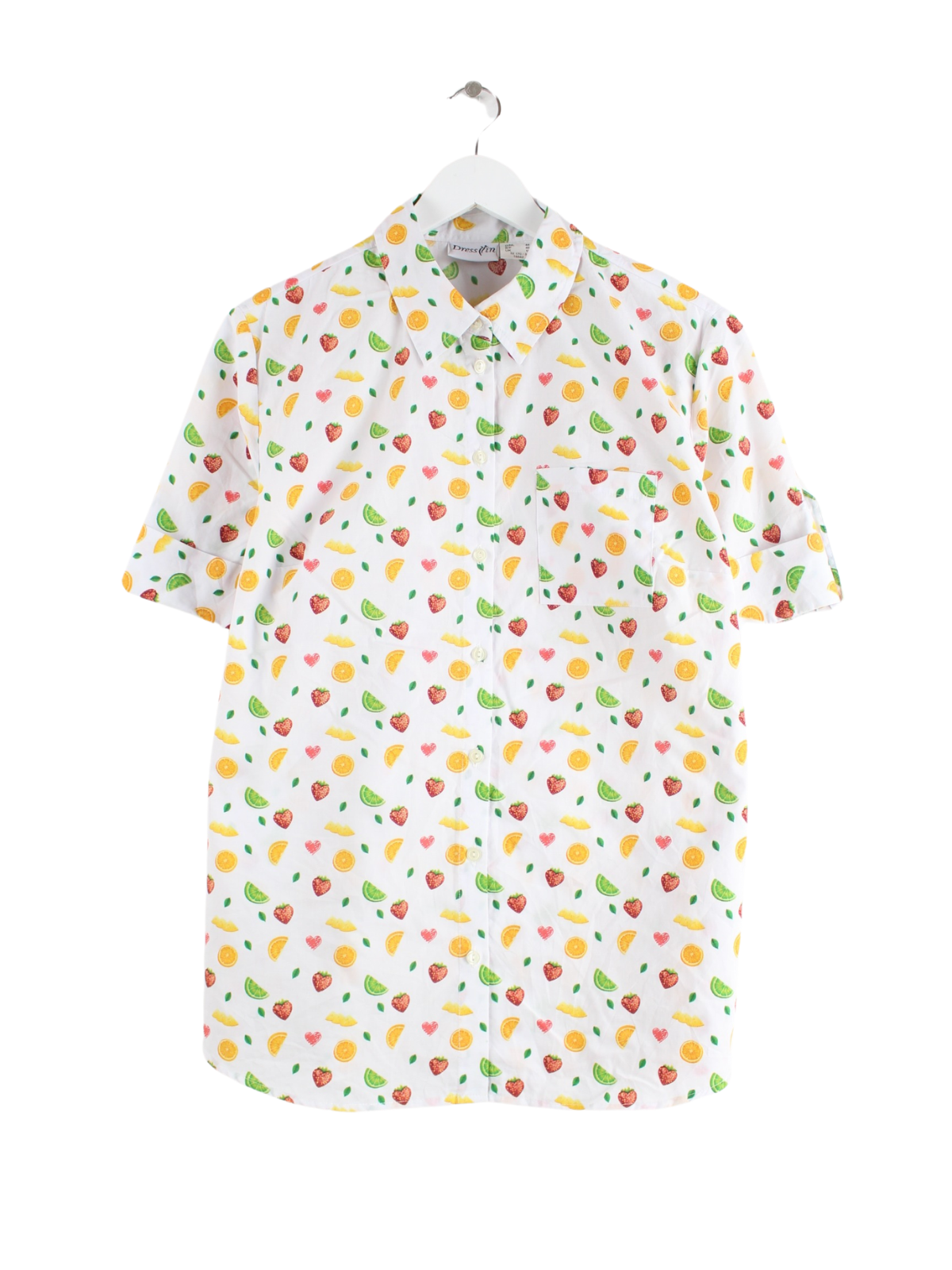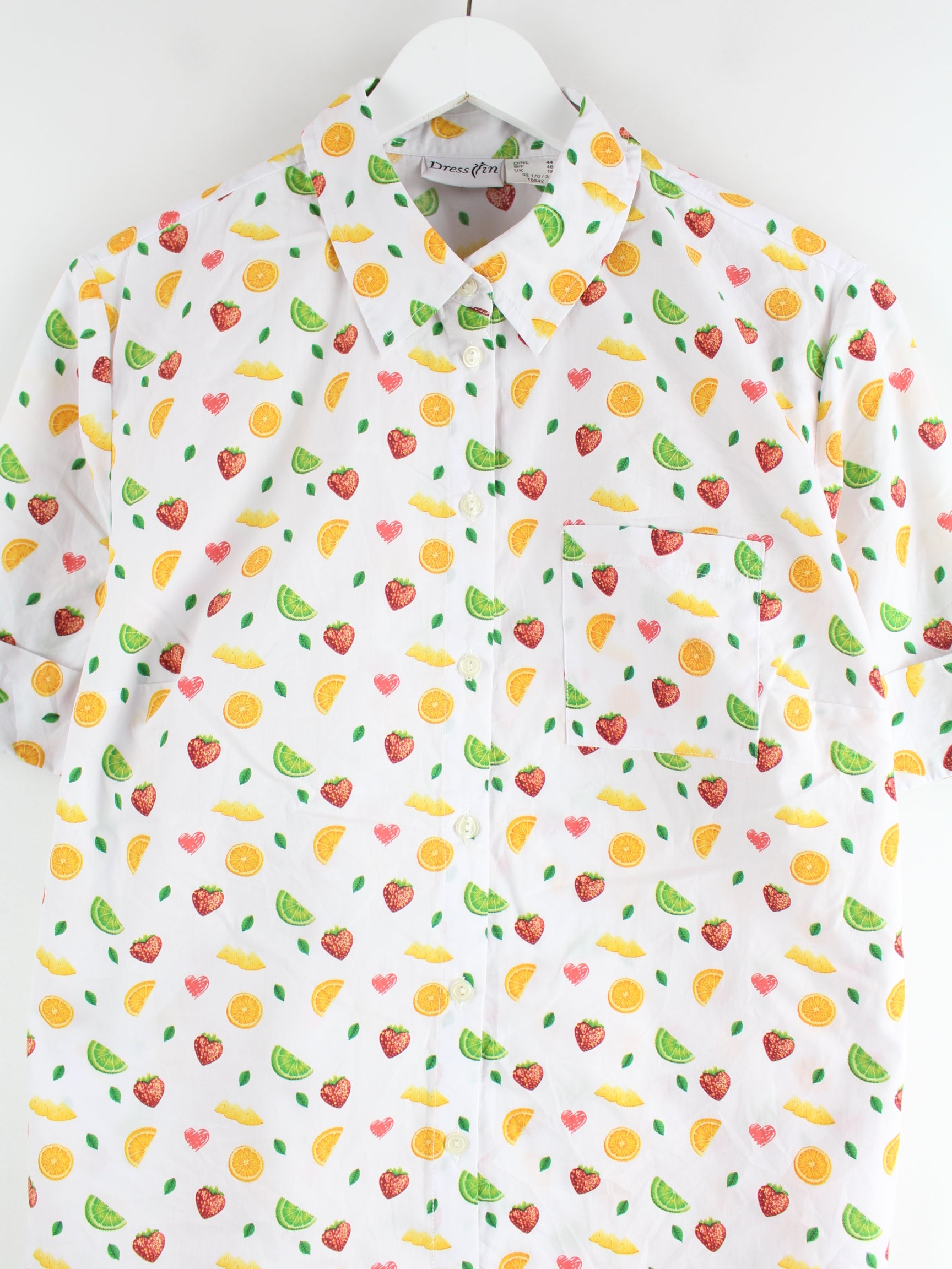 Vintage y2k Fruit Pattern Short Sleeve Shirt White M