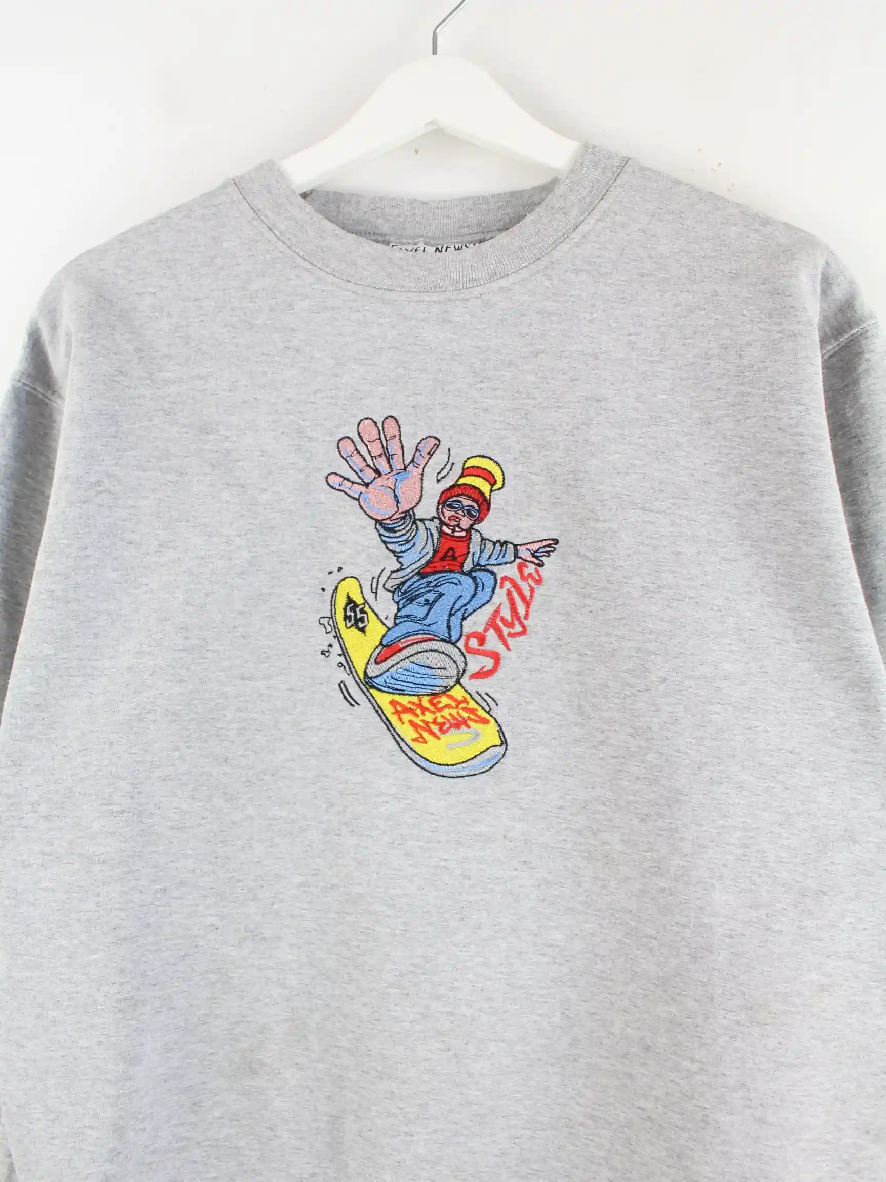 Vintage y2k Hip Hop Embroidered Sweater Grau M