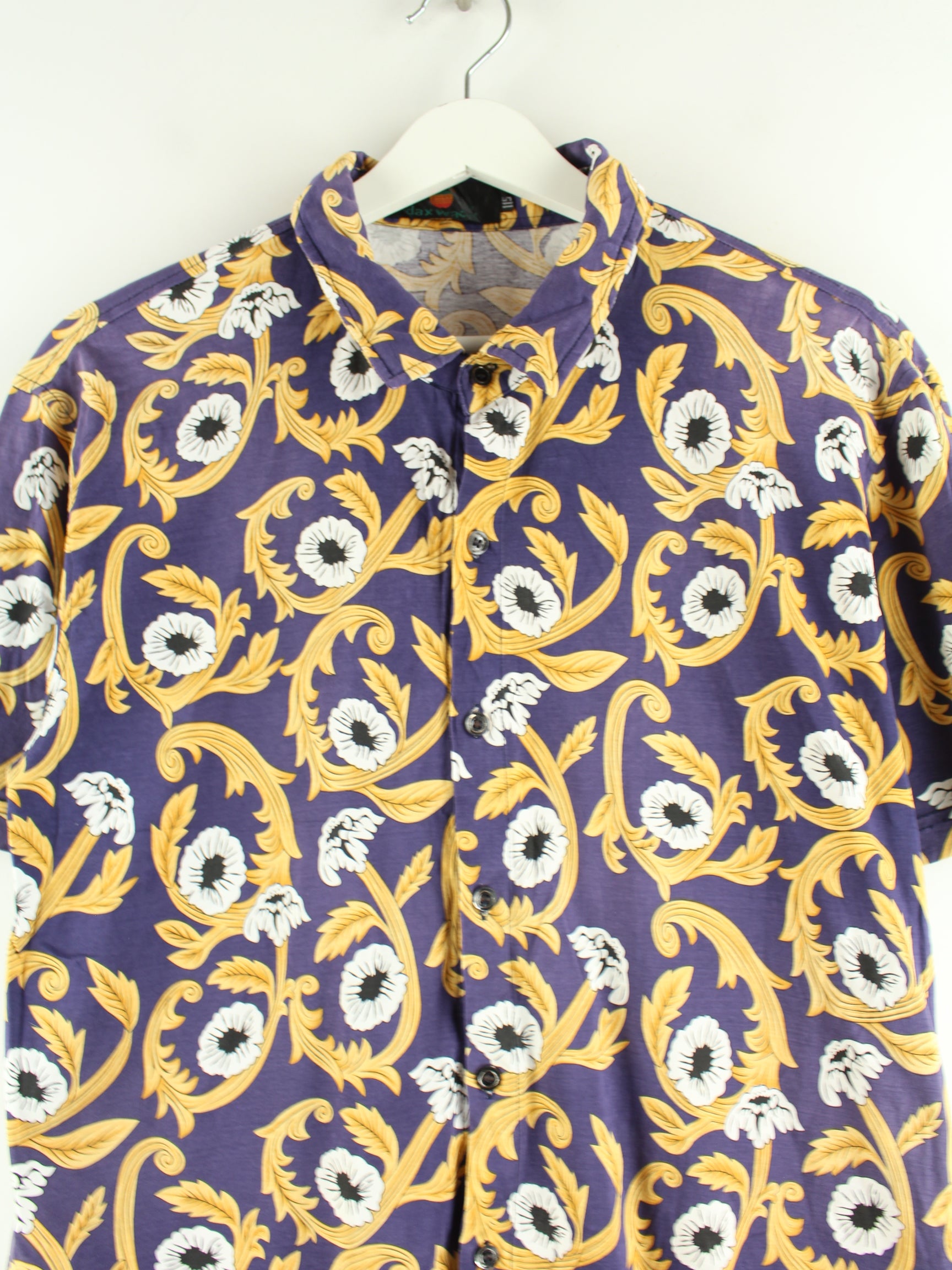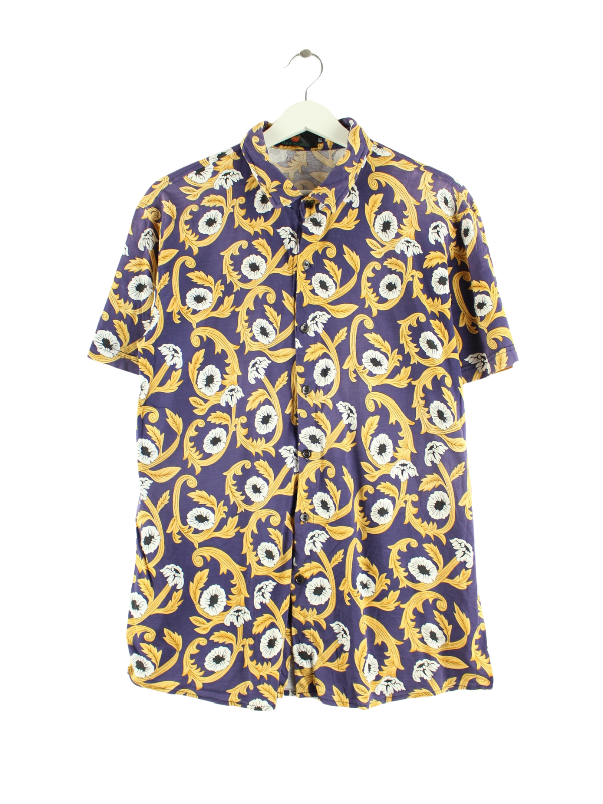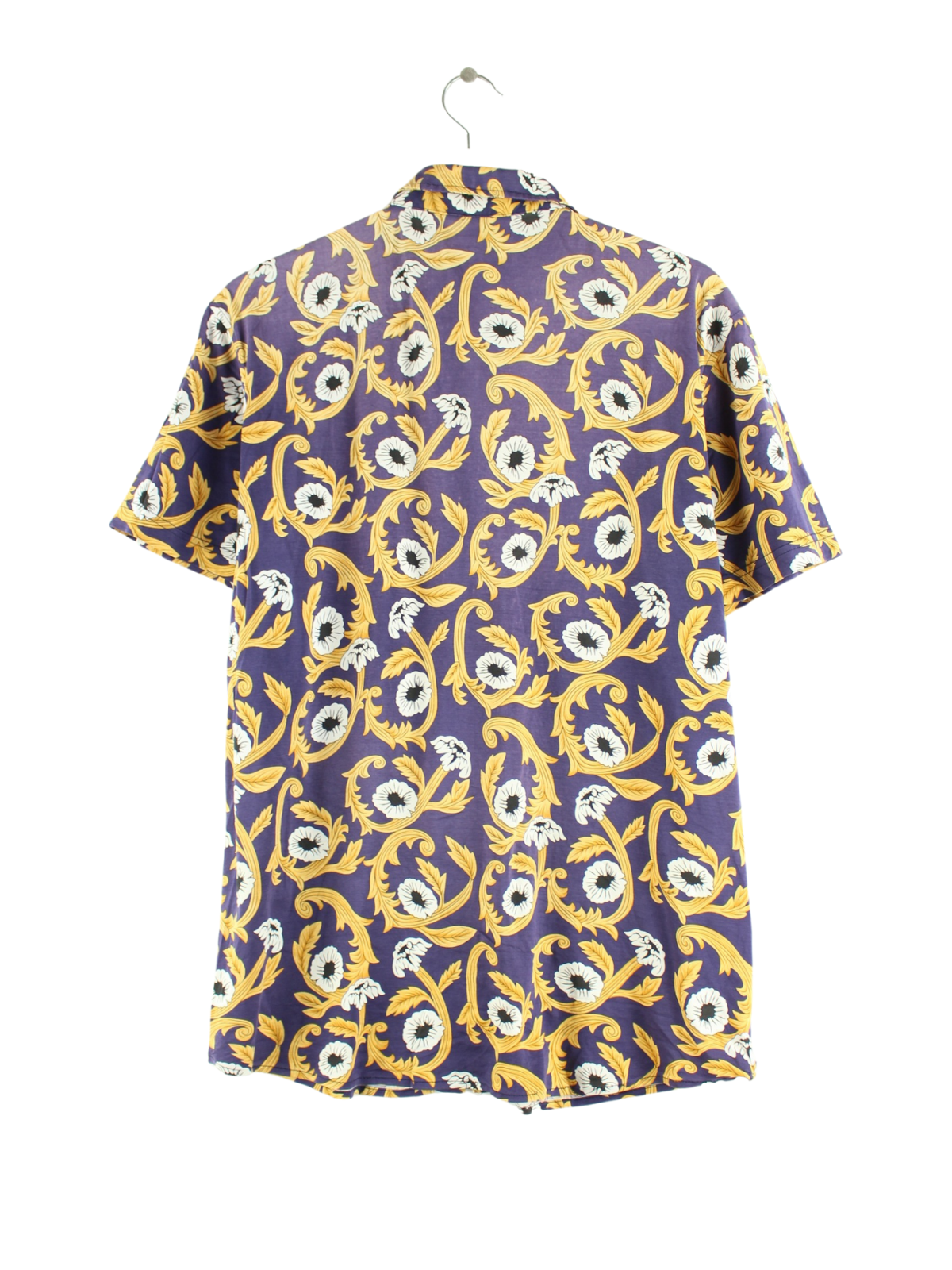 Vintage y2k Pattern Short Sleeve Shirt Blue M