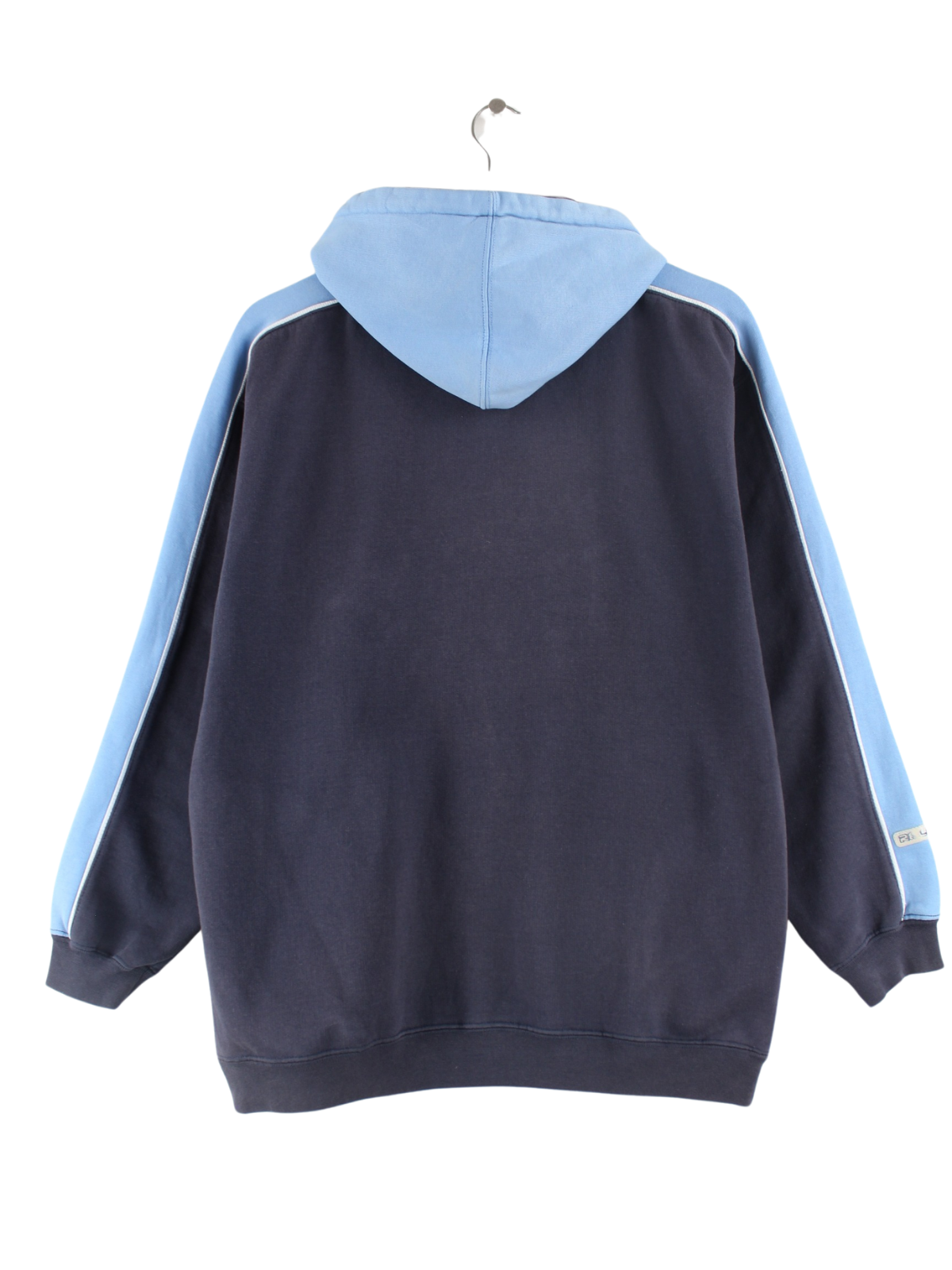 Blue vintage hoodie with embroidery from the early 2000s in size S. It is made from a cotton blend and is in very good condition.