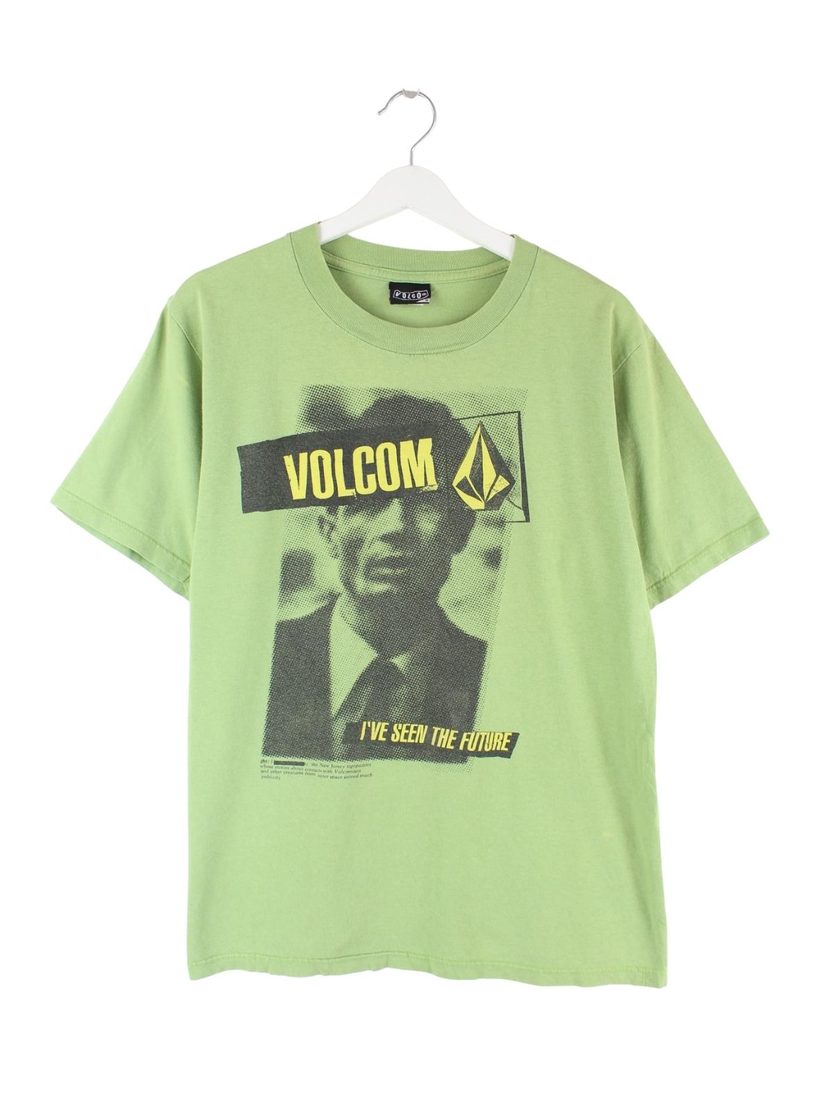 Grünes T-Shirt vom Brand Volcom in Größe M. Es ist aus Baumwolle gefertigt und in gutem Zustand vorrätig. Mit tollem Print.